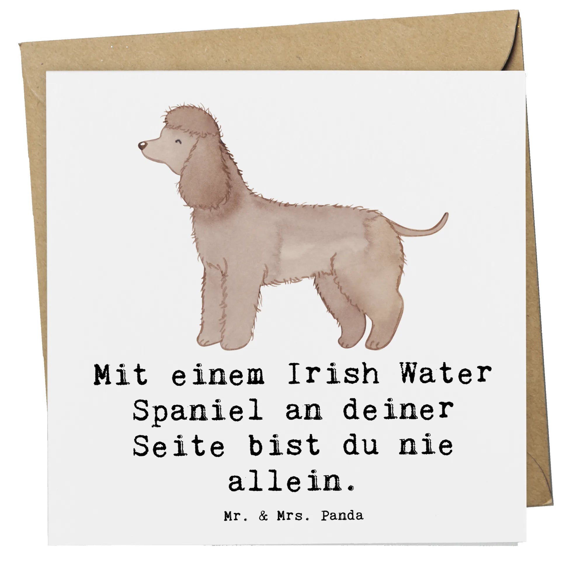 Egal, ob für einen Geburtstag, eine Hochzeit, eine Verabschiedung oder ein Jubiläum – diese Karte ist immer ein Hit! Das niedliche Motiv eines Irish Water Spaniels, kombiniert mit dem Spruch: "Mit einem Irish Water Spaniel an deiner Seite bist du nie allein", macht sie zu einem liebevollen Geschenk für jeden Anlass.