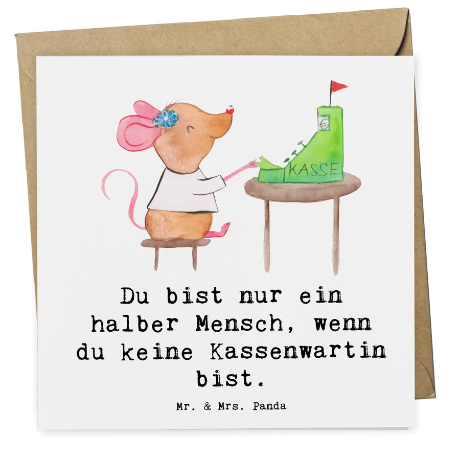 Hergestellt aus hochwertigem 300 Gramm Karton macht die Karte nicht nur optisch viel her, sondern ist auch fühlbar robust und edel. Das niedliche Motiv einer Kassenwartin mit einem Geldsack in der Hand sowie der liebevoll gestaltete Hintergrund machen die Karte zu einem einzigartigen Blickfang. Der Spruch "Du bist nur ein halber Mensch, wenn du keine Kassenwartin bist" unterstreicht den Wert dieser Berufung auf humorvolle Weise und sorgt für das gewisse Etwas.