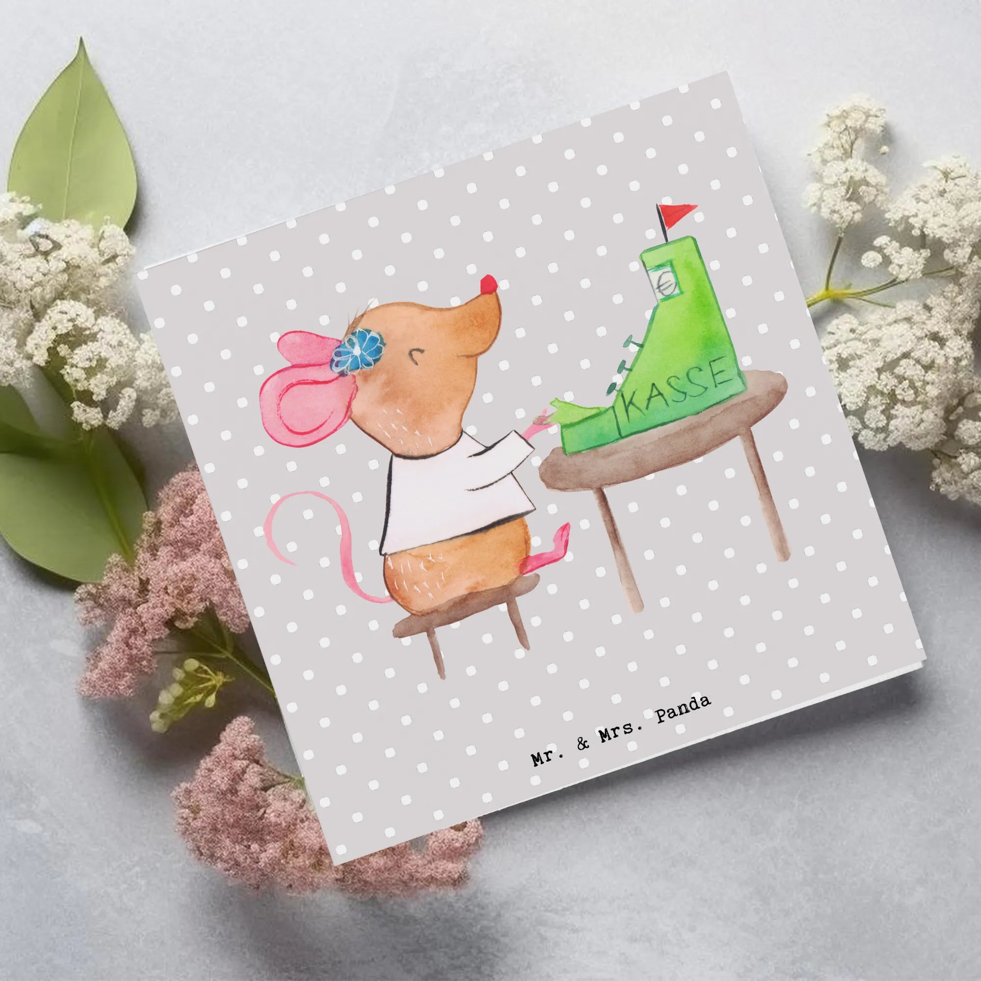 Sie eignet sich hervorragend für Anlässe wie Berufsabschiede, Jubiläen oder einfach um 'Danke' zu sagen. Die Vorderseite zeigt unser süßes Kassenwartin-Motiv, das jeder Kassenwartin ein Lächeln ins Gesicht zaubern wird. Die Karte hat eine edel glänzende Oberfläche, während die Innenseite matt ist, was dir die Möglichkeit gibt, deine persönlichen Grüße oder Glückwünsche frei zu gestalten.