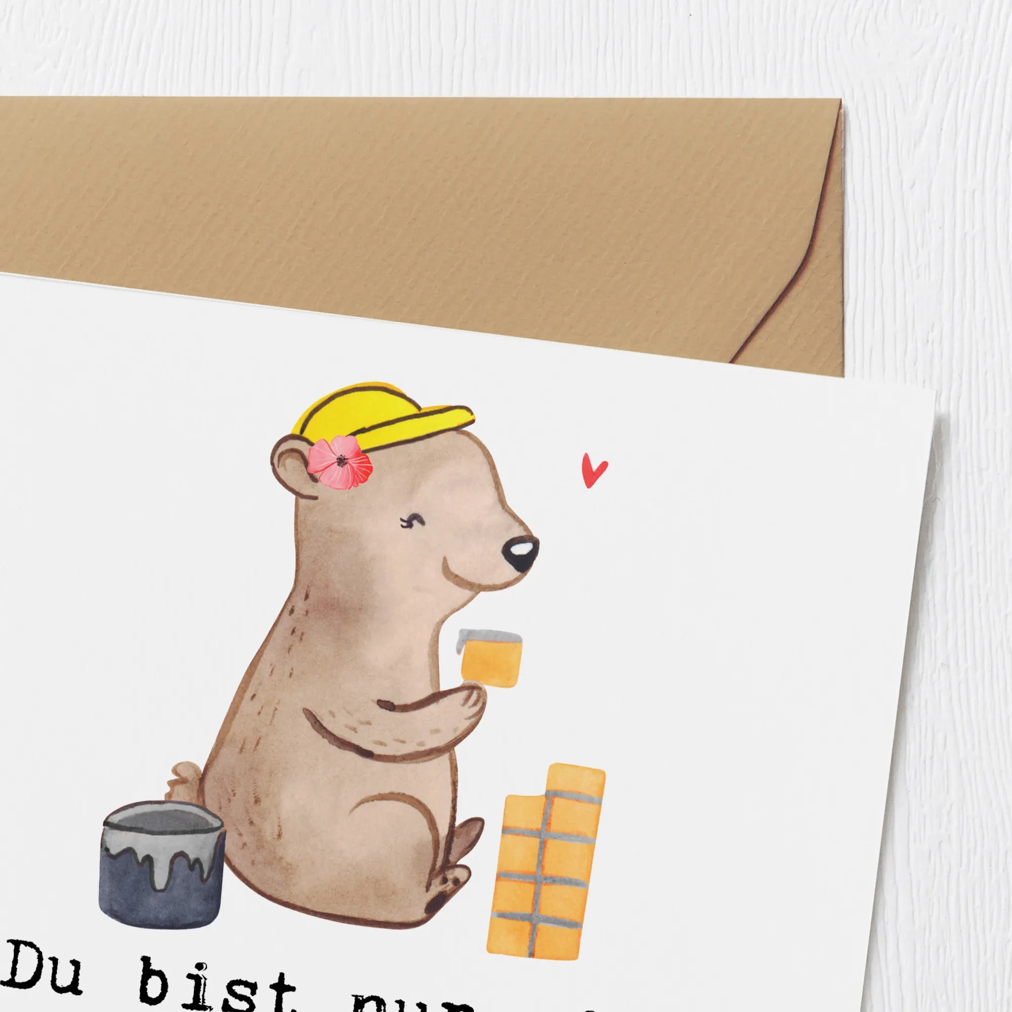 Die Deluxe Karte "Maurerin mit Herz" von Mr. & Mrs. Panda ist das perfekte Geschenk für alle Maurerinnen und Maurermeisterinnen! Sie zeigt nicht nur eine liebevoll gestaltete Illustration einer süßen Bärin, die voller Leidenschaft ihre Arbeit auf der Baustelle verrichtet, sondern vermittelt auch einen fröhlichen Slogan: "Du bist nur ein halber Mensch, wenn du keine Maurerin bist." Diese ganz besondere Karte eignet sich ideal, um individuelle Glückwünsche oder Dankesgrüße auszusprechen. Egal, ob zu Geburtstagen, Hochzeiten, Jubiläen oder zum Abschied – sie macht jeden Anlass besonders.