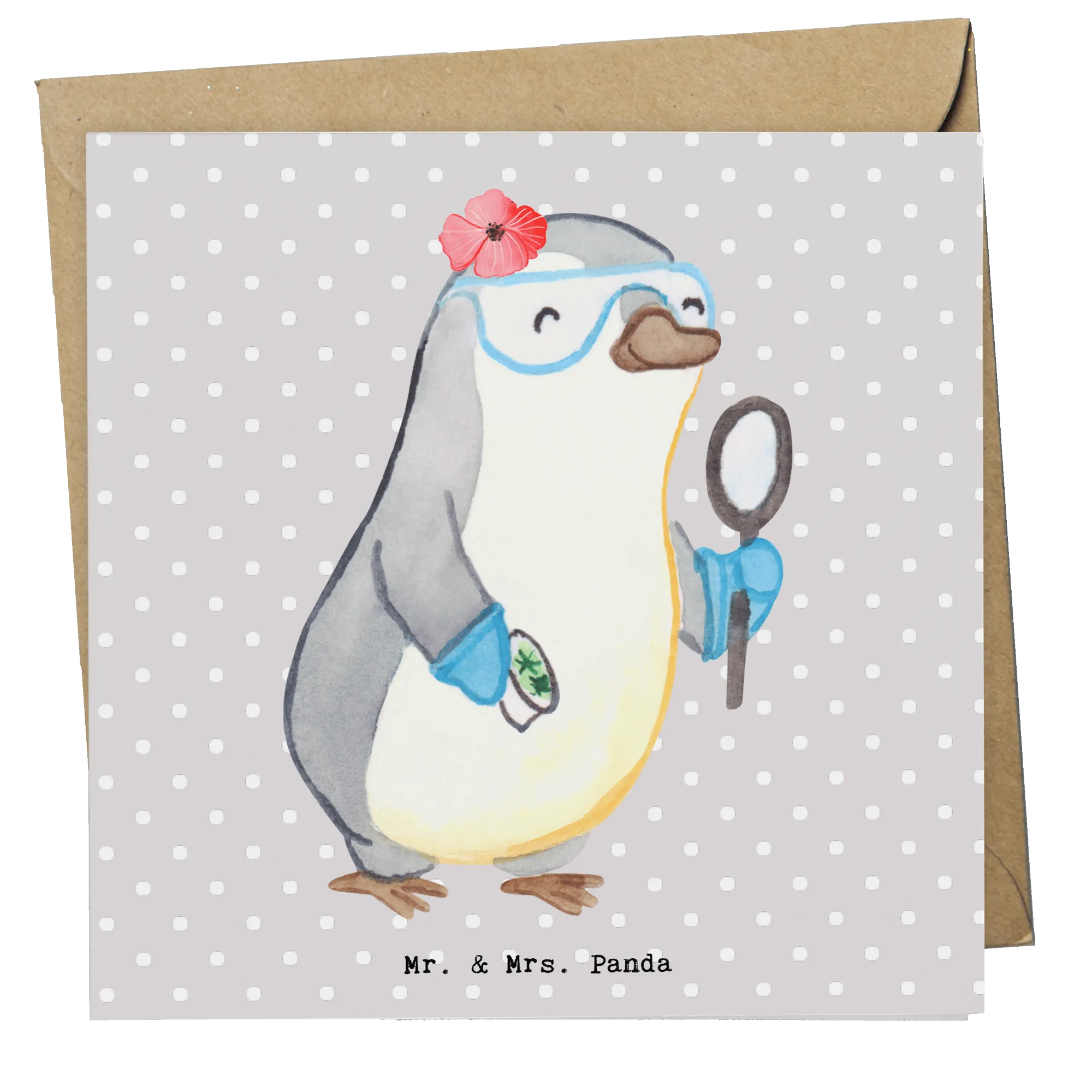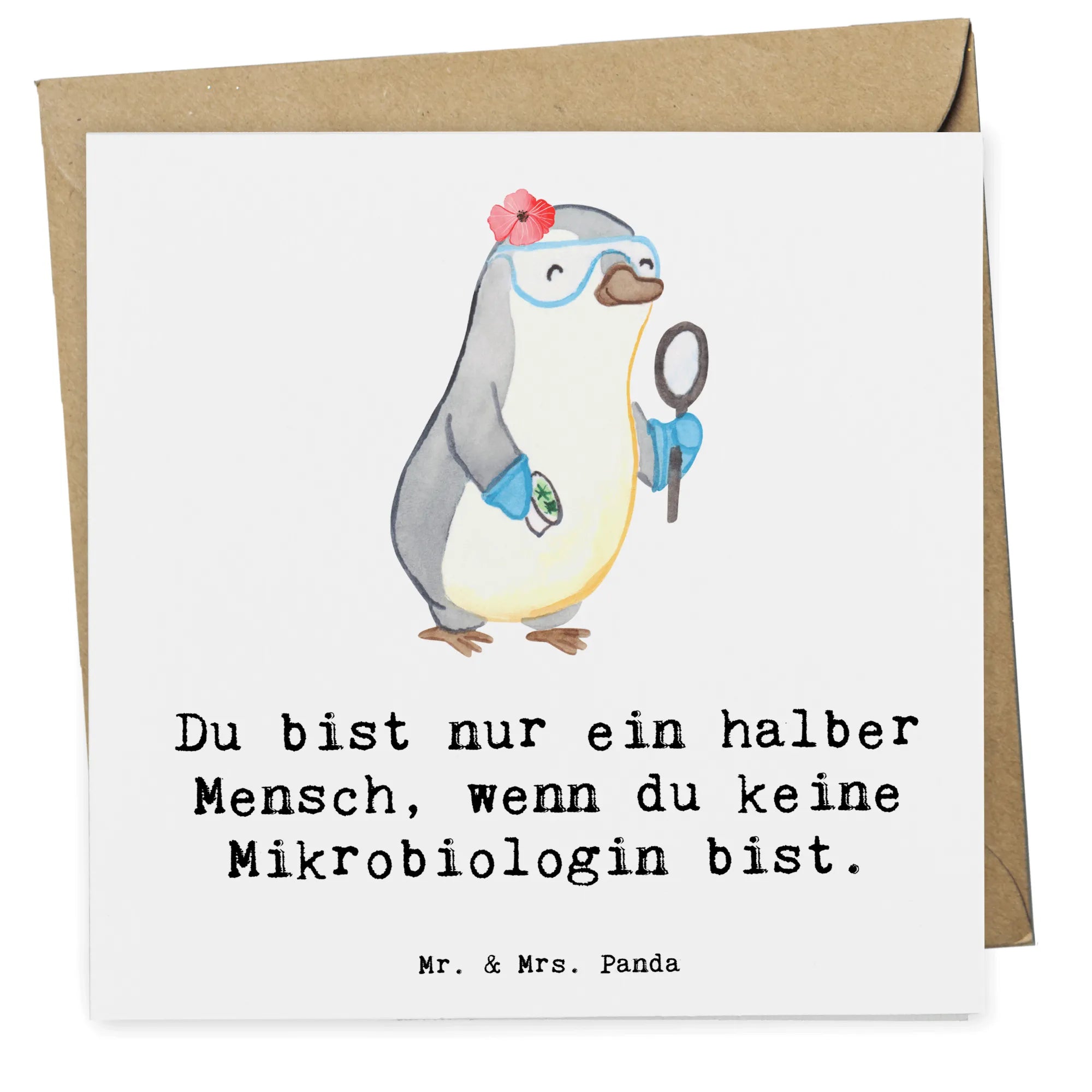 Die Deluxe Karte "Mikrobiologin mit Herz" aus der liebevoll gestalteten Berufe-Kollektion von Mr. & Mrs. Panda ist das perfekte Geschenk für alle, die in der faszinierenden Welt der Mikrobiologie arbeiten oder studieren.