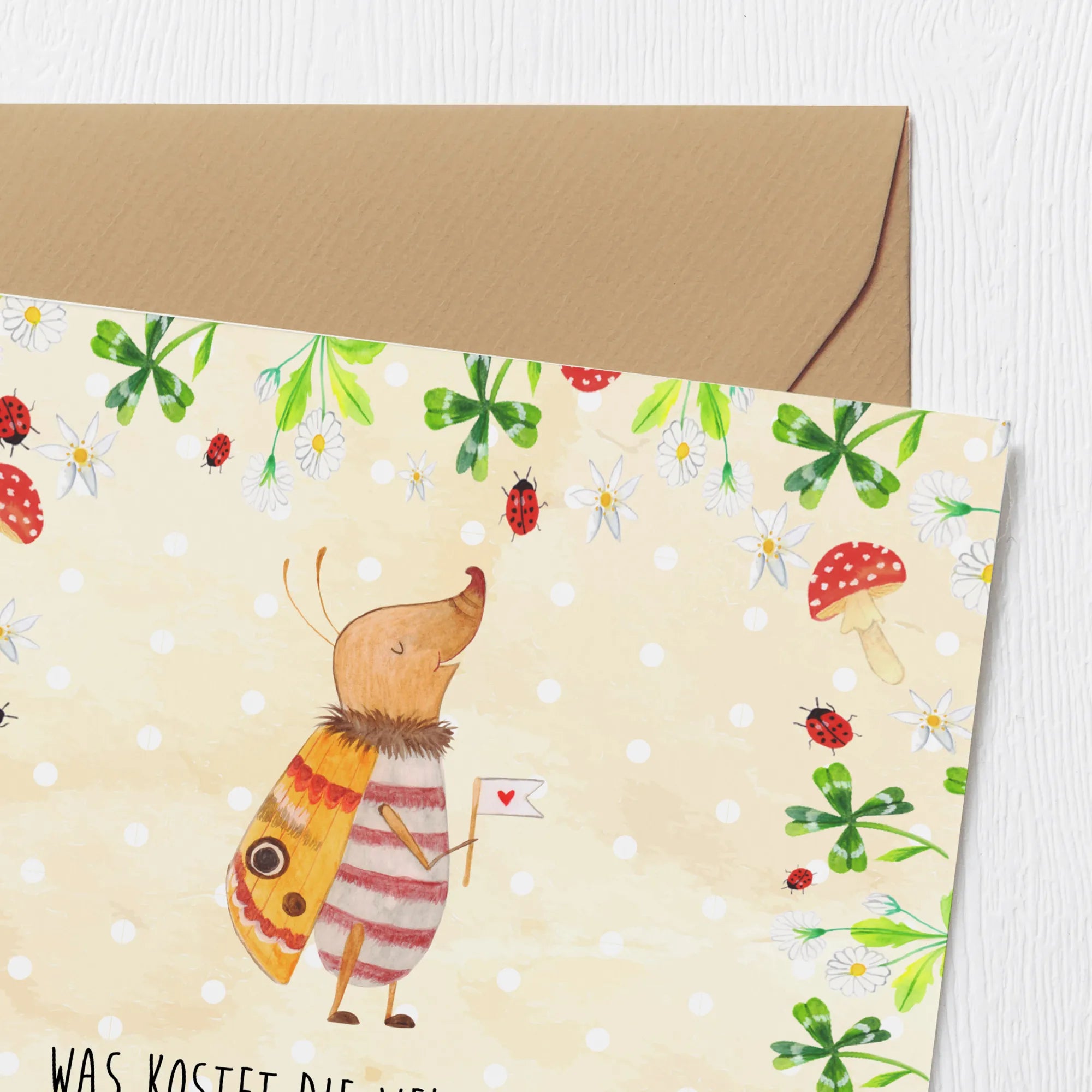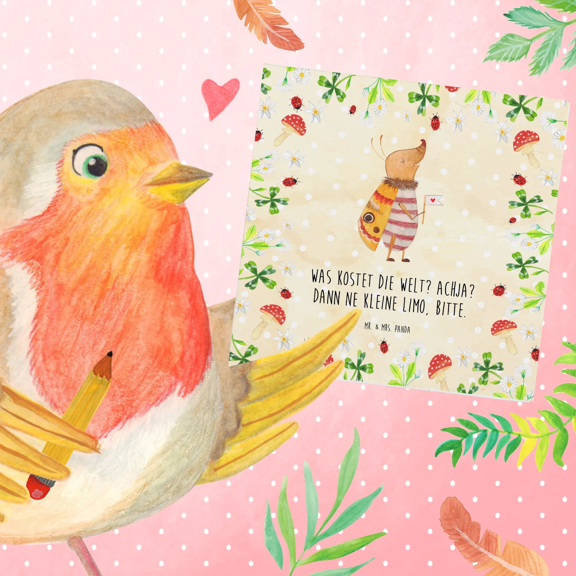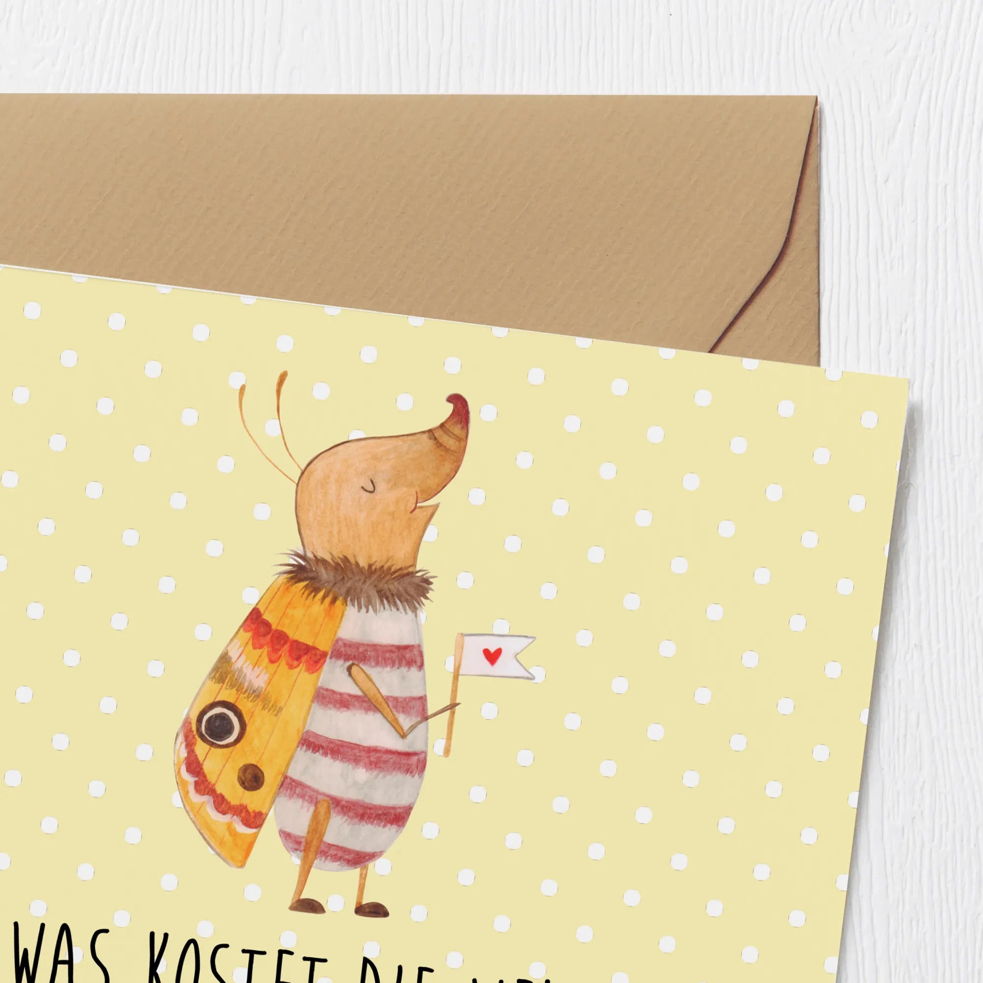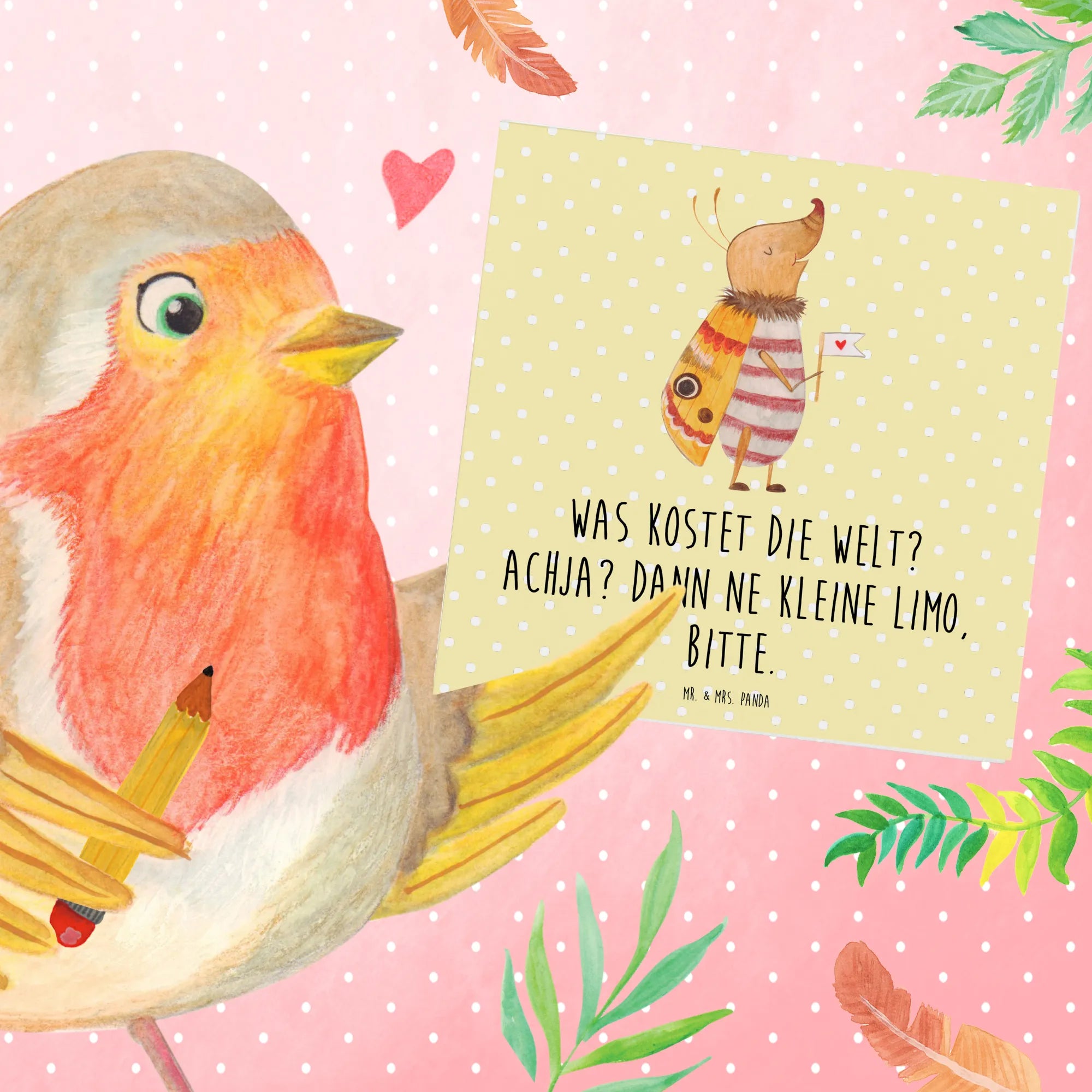 Die einzigartige Mischung aus Tiermotiven wie dem Nachtfalter und dem lustigen Spruch "Was kostet die Welt? Achja? Dann ne kleine Limo, bitte." sorgt dafür, dass jeder Empfänger beim Lesen ein Lächeln auf den Lippen hat.