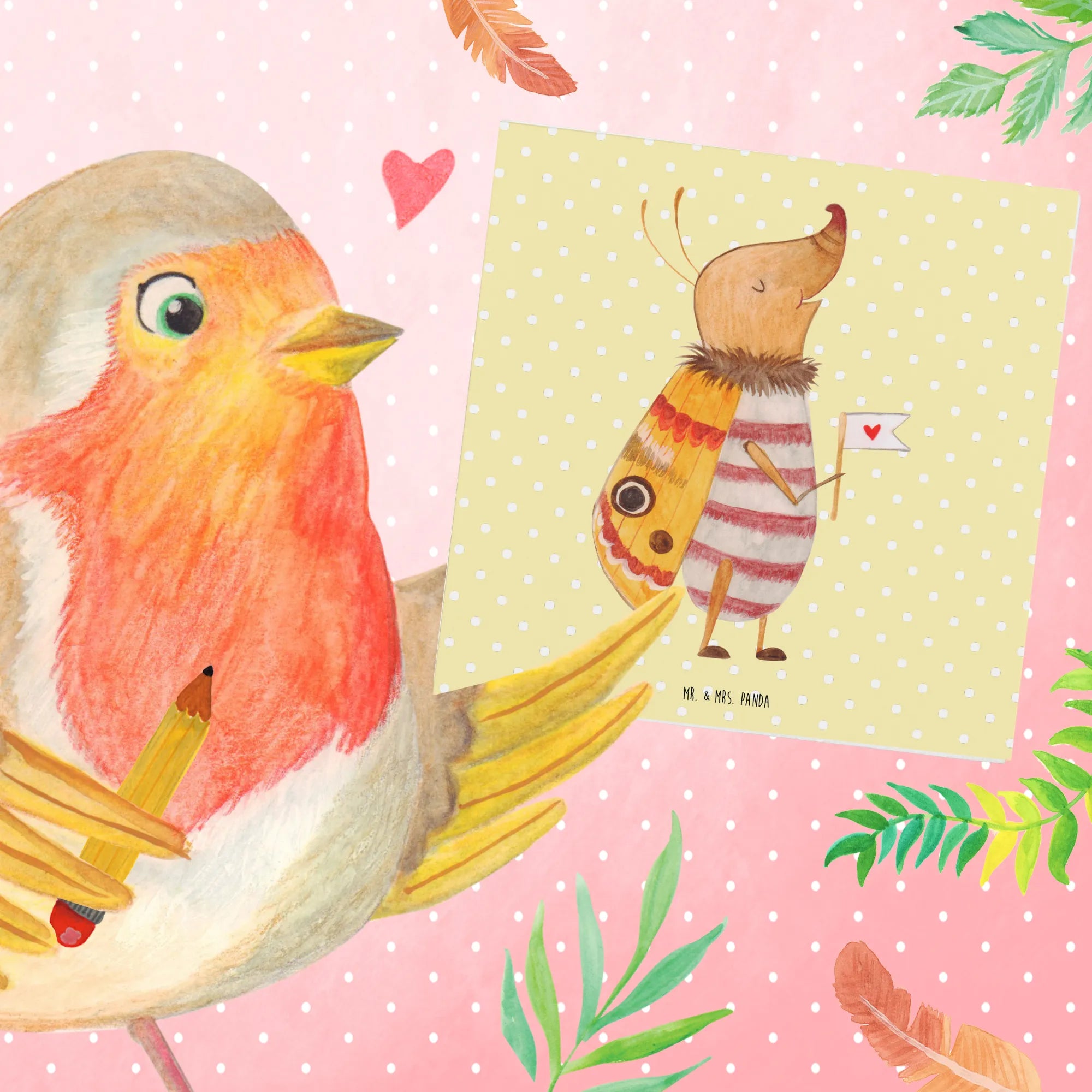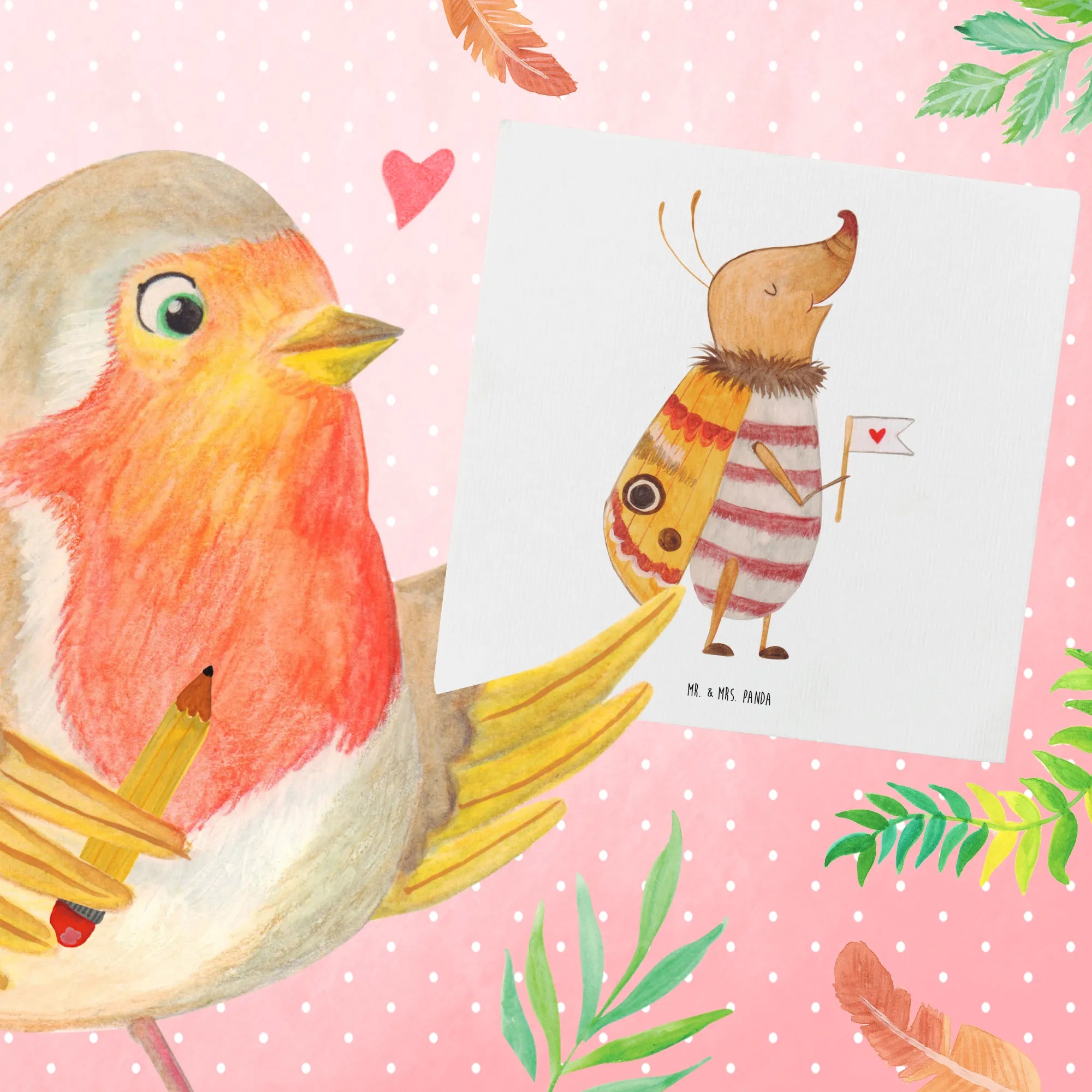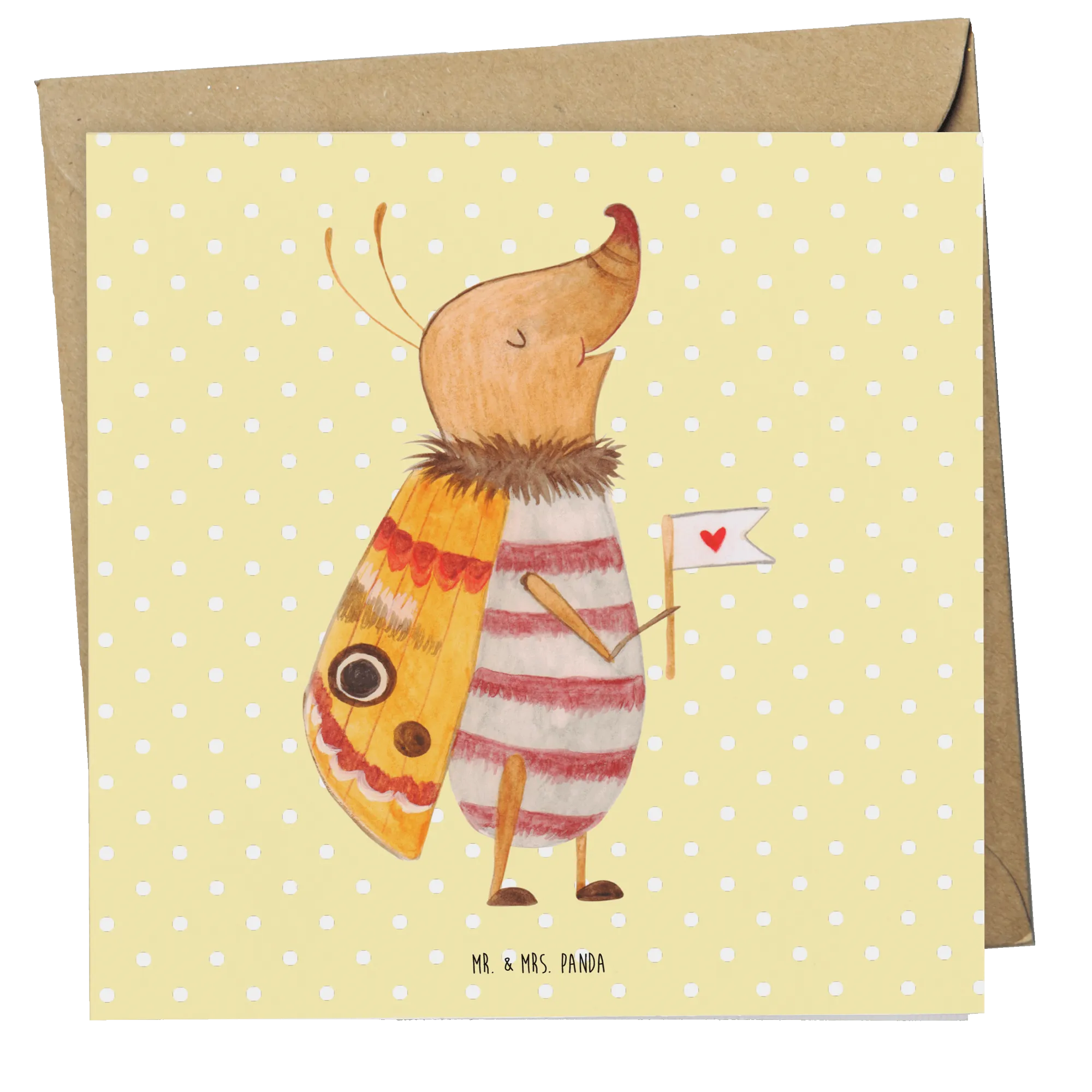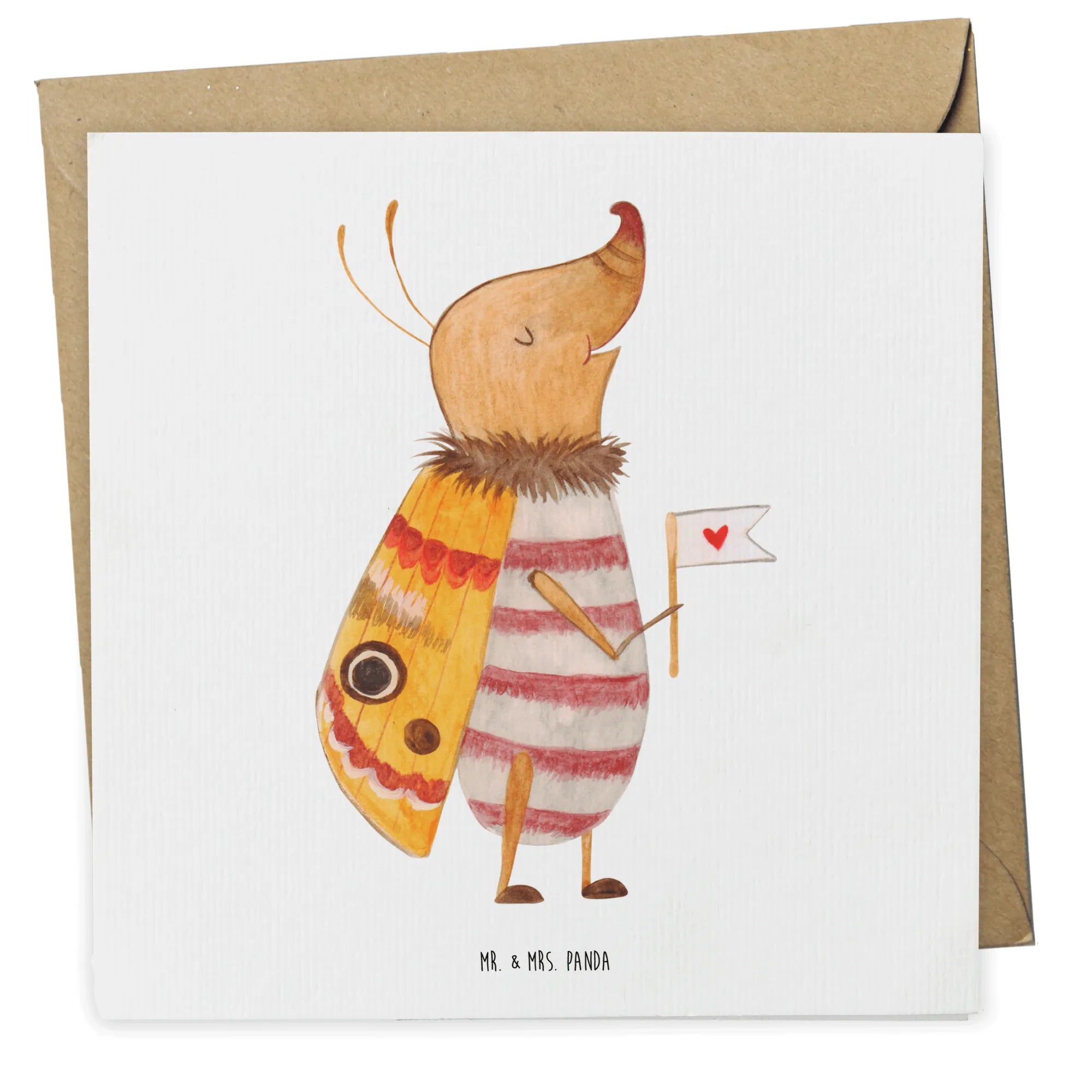 Diese hochwertige Grußkarte von Mr. & Mrs. Panda misst 140 mm x 140 mm und wird aus edlem 300 Gramm Karton hergestellt. Mit einem Motiv, das einen kleinen, glücklichen Nachtfalter zeigt, der eine herzförmige Fahne trägt, bereit für neue Abenteuer, bringt sie Freude und positive Energie in jede Botschaft!