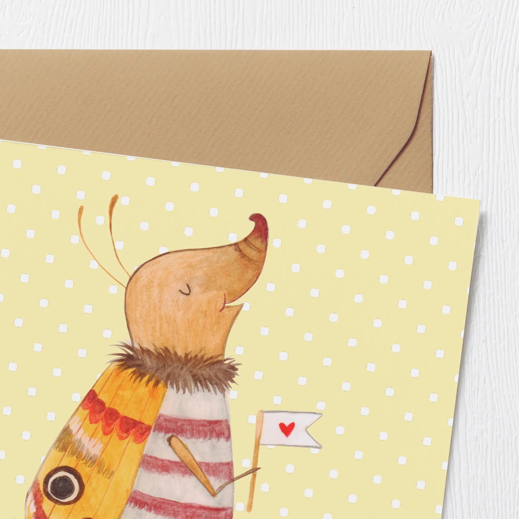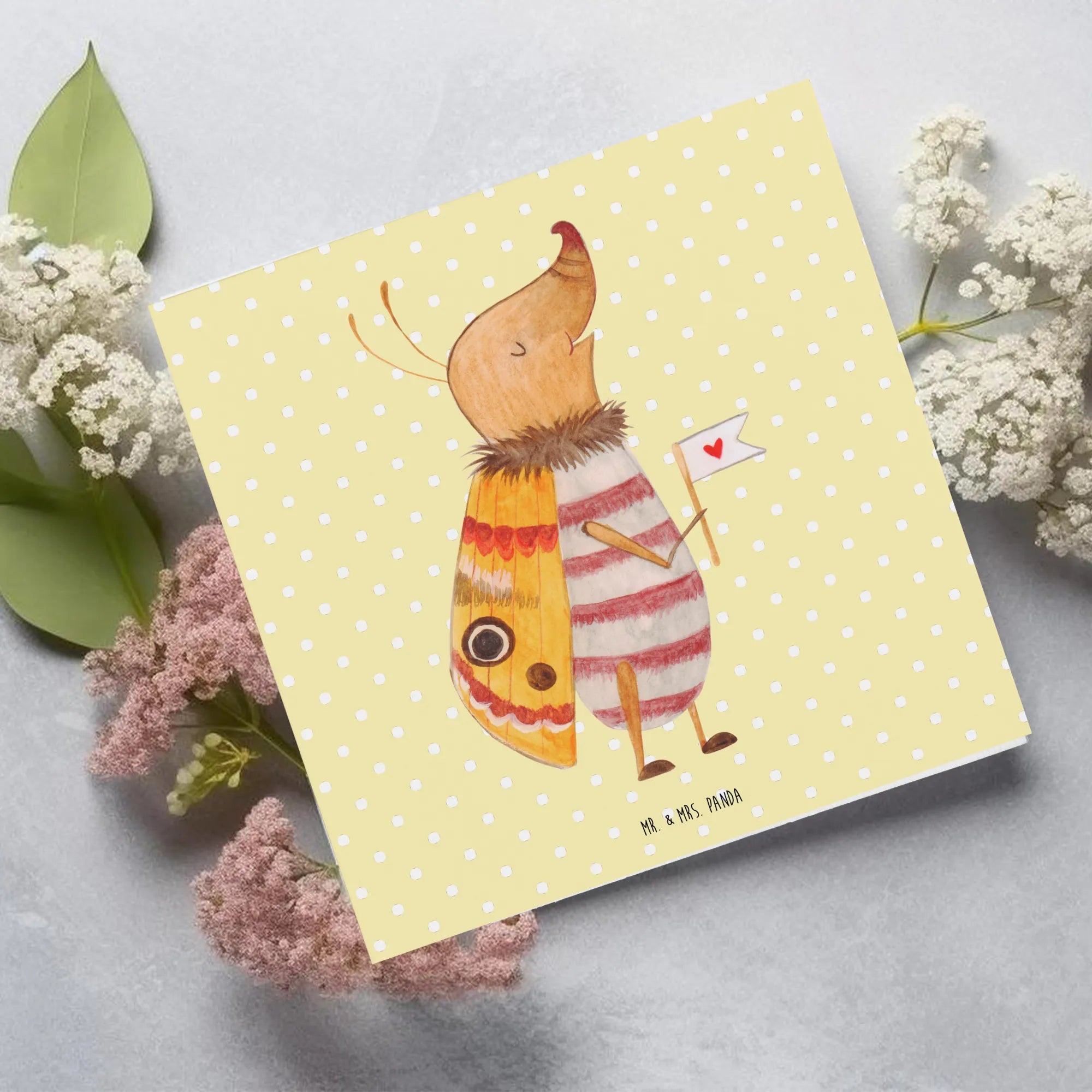 Entdecke die zauberhafte Deluxe Karte mit dem süßen Motiv eines Nachtfalters mit Fähnchen aus der "Small World" Kollektion von Mr. & Mrs. Panda. Diese hochwertige und quadratische Karte misst 140 mm x 140 mm und ist aus edlem, 300 Gramm schweren Karton gefertigt, der nicht nur stabil, sondern auch umweltfreundlich ist.