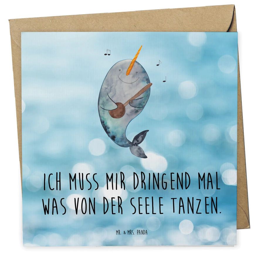 Der fröhliche Narwal, umgeben von musikalischen Noten, strahlt Lebensfreude aus und lädt dazu ein, mal so richtig von der Seele zu tanzen. Die Karte ist aus hochwertigem 300 Gramm Karton gefertigt und überzeugt mit einer hochglänzend veredelten Vorderseite, die in sanften Blau- und Grautönen in Aquarelloptik gehalten ist.