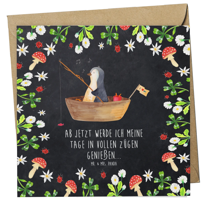 Die Deluxe Karte mit dem süßen Pinguin-Motiv auf dem Angelboot von Mr. & Mrs. Panda ist das perfekte Geschenk für viele Anlässe!