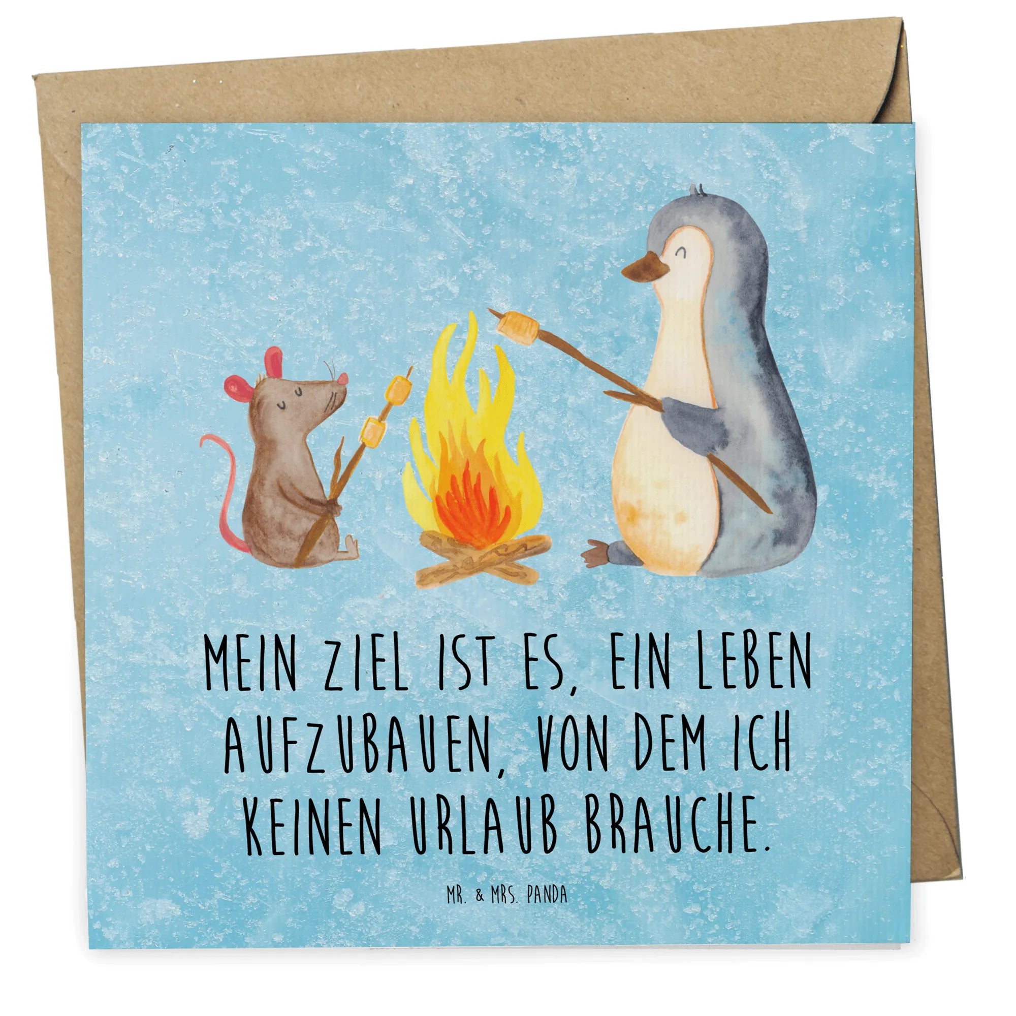Deluxe Karte Pinguin Lagerfeuer - mit Spruch - Eisblau