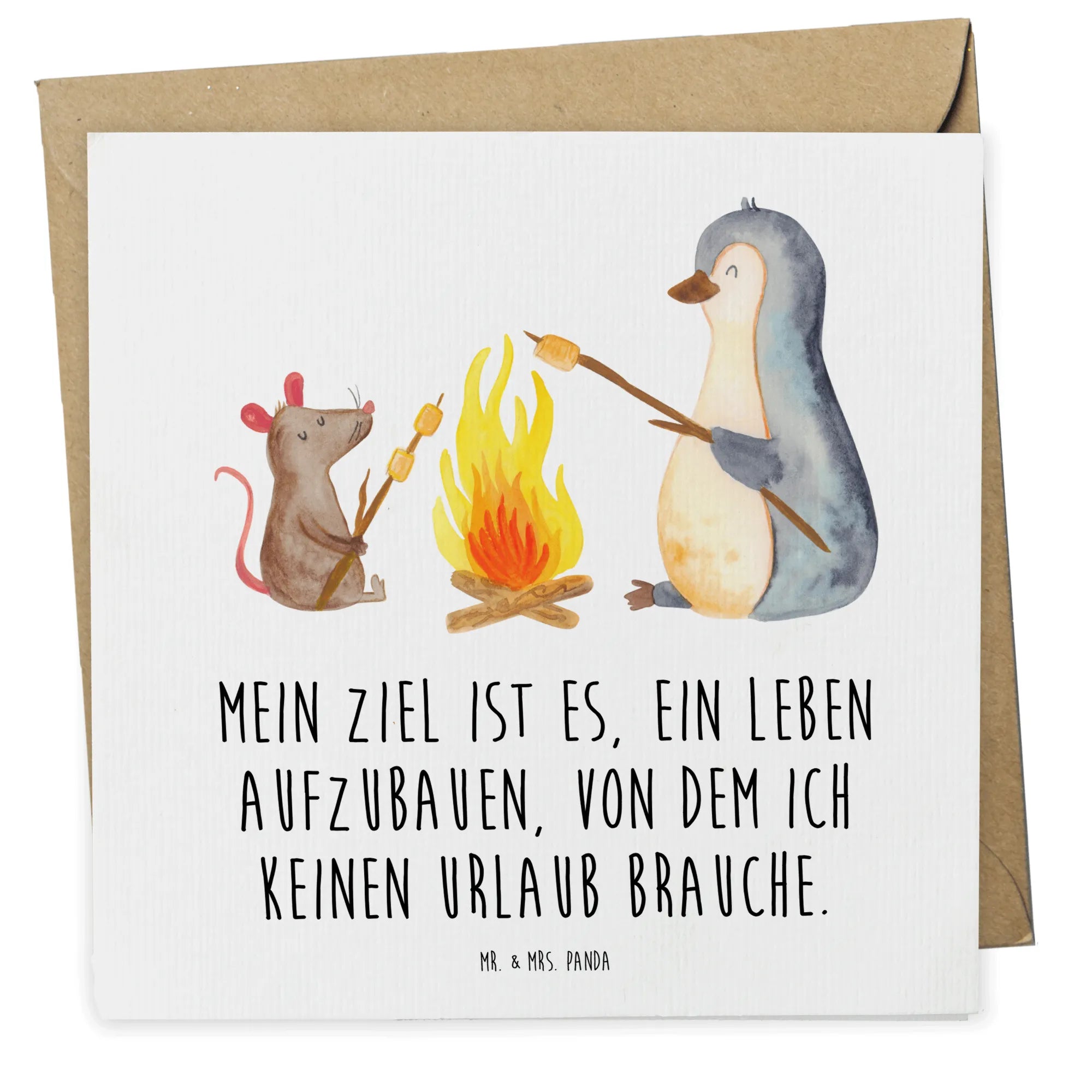Du bist auf der Suche nach dem perfekten Geschenk, das sowohl Liebe als auch Motivation ausstrahlt? Dann ist die Deluxe Karte mit dem bezaubernden Pinguin Lagerfeuer Motiv aus der Pinguin-Kollektion von Mr. & Mrs. Panda genau richtig! Diese hochwertige quadratische Karte ist nicht nur ein einfacher Glückwunsch, sondern ein kleines Kunstwerk, das in jedem Zuhause einen Platz verdient hat. Die liebevoll gezeichneten Details, wie der fröhliche Pinguin und die lächelnde Maus, die zusammen am Lagerfeuer sitzen und Marshmallows rösten, möchten dir ein warmes Gefühl der Zweisamkeit und Entspannung vermitteln.