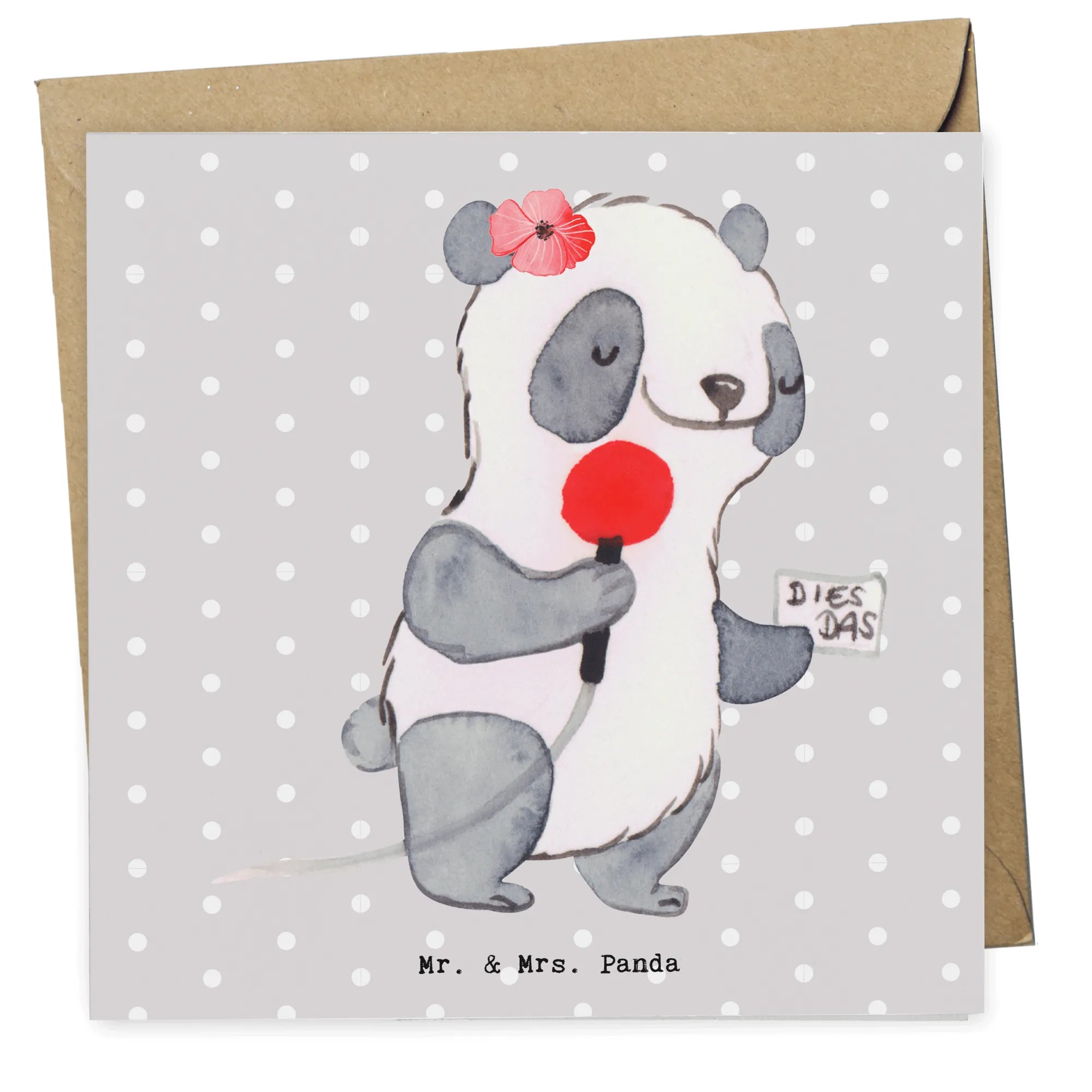 Die Deluxe Karte "Pressereferentin mit Herz" von Mr. & Mrs. Panda ist nicht nur eine Grußkarte, sondern ein kleines Kunstwerk! Diese besondere Karte aus hochwertigem 300 Gramm Karton ist perfekt für all jene, die als Pressereferenten tätig sind oder diese wundervolle Berufsrichtung schätzen.