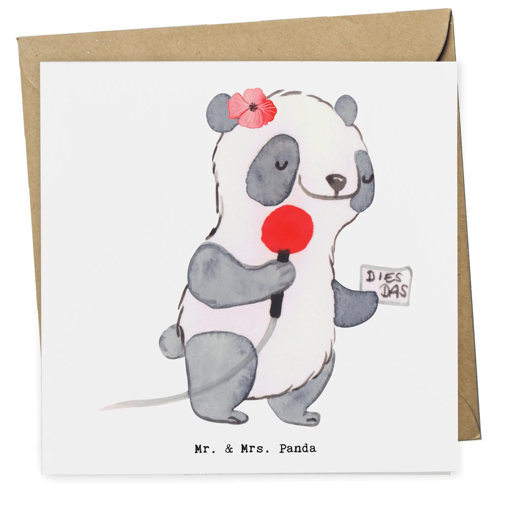 Diese Deluxe Karte mit dem süßen Motiv "Pressereferentin mit Herz" aus der kreativen Kollektion Berufe von Mr. & Mrs. Panda ist das perfekte Geschenk für jeden Berufstätigen, der in der Presse- und Öffentlichkeitsarbeit tätig ist. Egal, ob zum Jubiläum, zur Verabschiedung oder einfach nur als liebevolle Geste - diese Karte spielt in jedem Fall ihre Stärken aus!