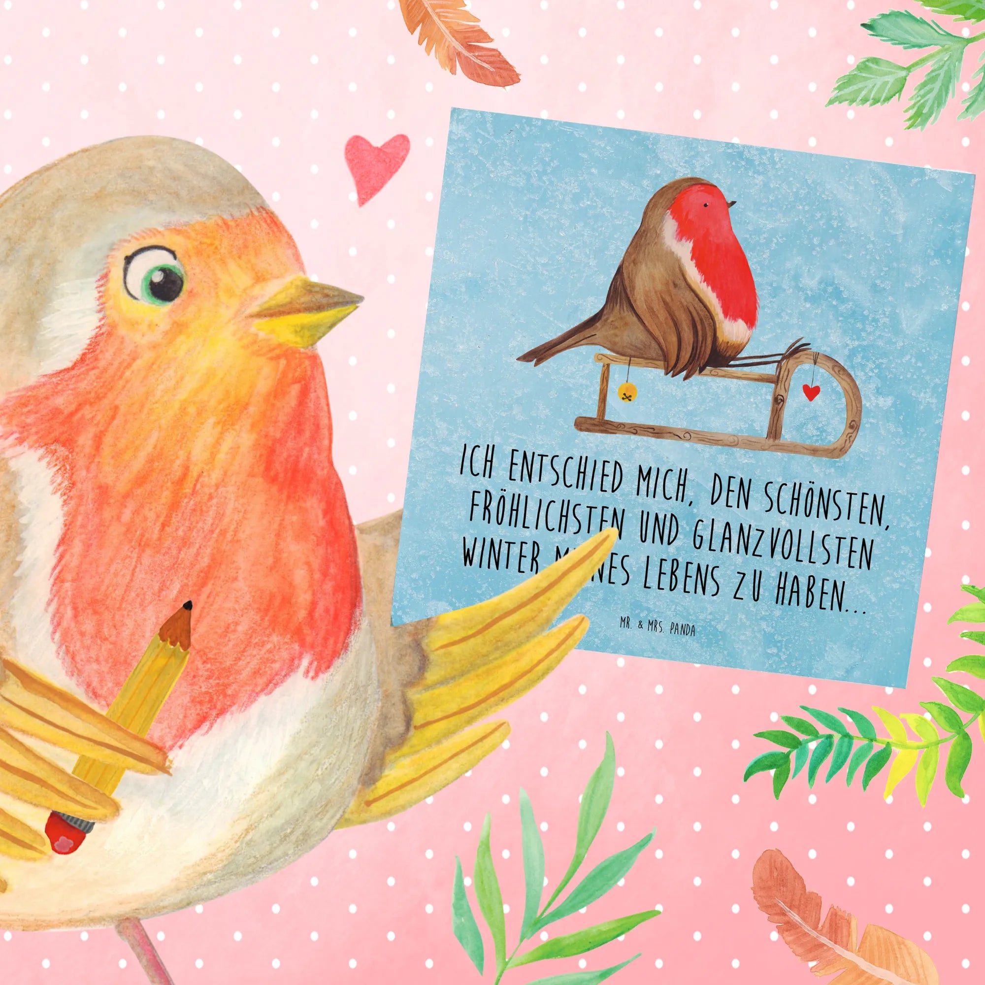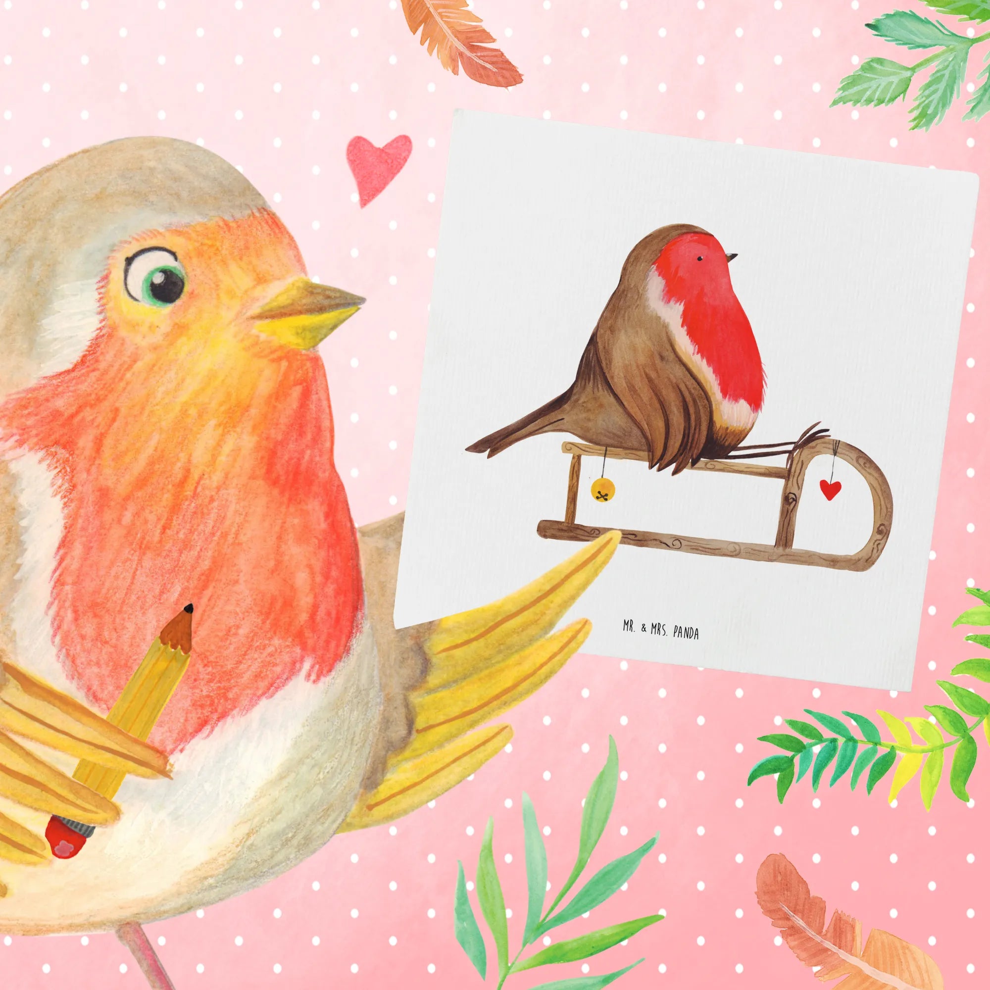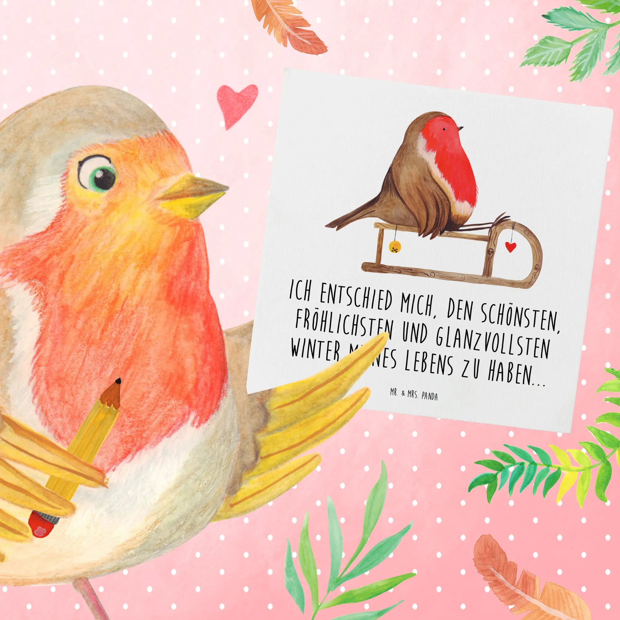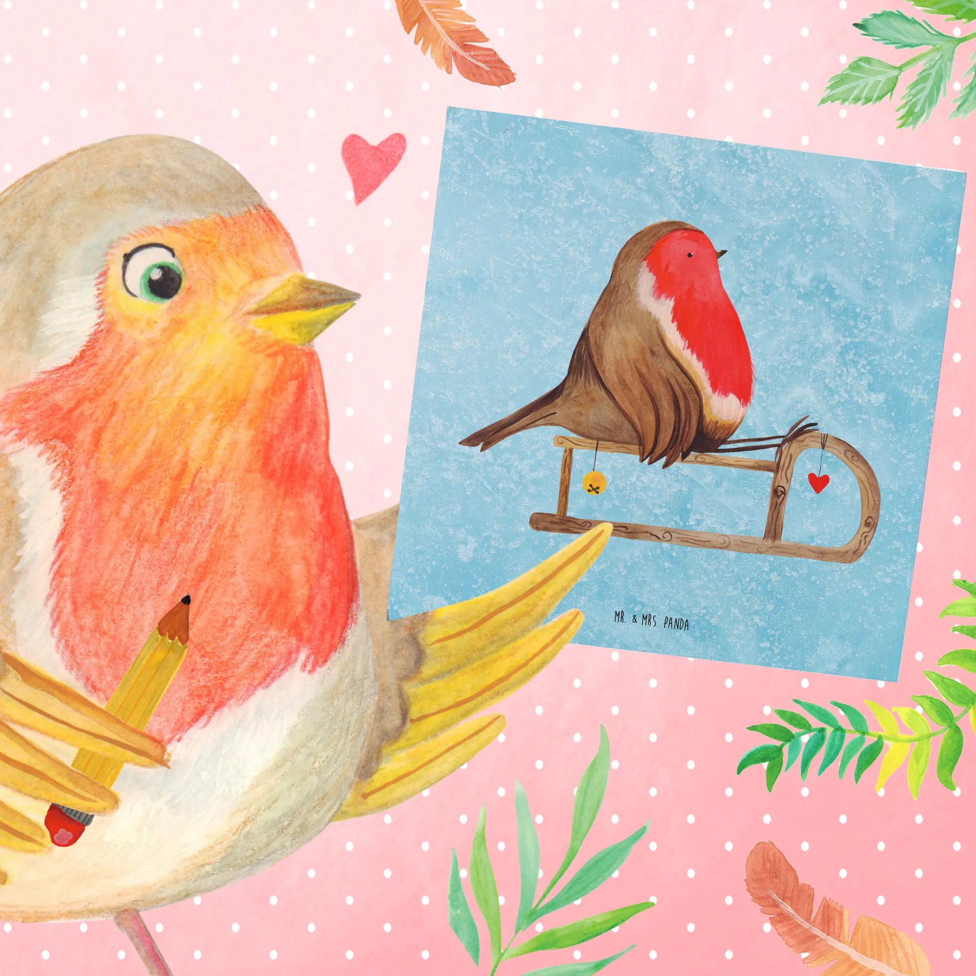 Entdecke die zauberhafte Deluxe Karte mit dem süßen Motiv des Rotkehlchens auf einem Schlitten, aus der Winter Kollektion von Mr. & Mrs. Panda. Diese wunderschöne und hochwertige quadratische Karte ist ideal, um persönliche Grüße oder Glückwünsche zu feierlichen Anlässen wie Weihnachten, Geburtstagen, Hochzeiten oder Jubiläen zu übermitteln.