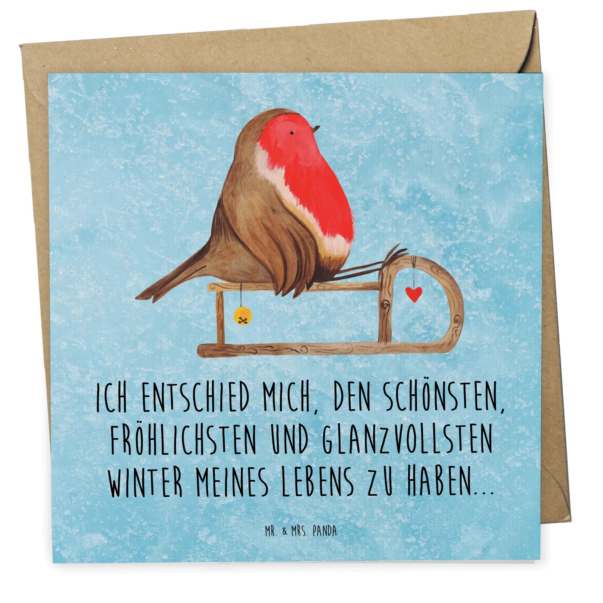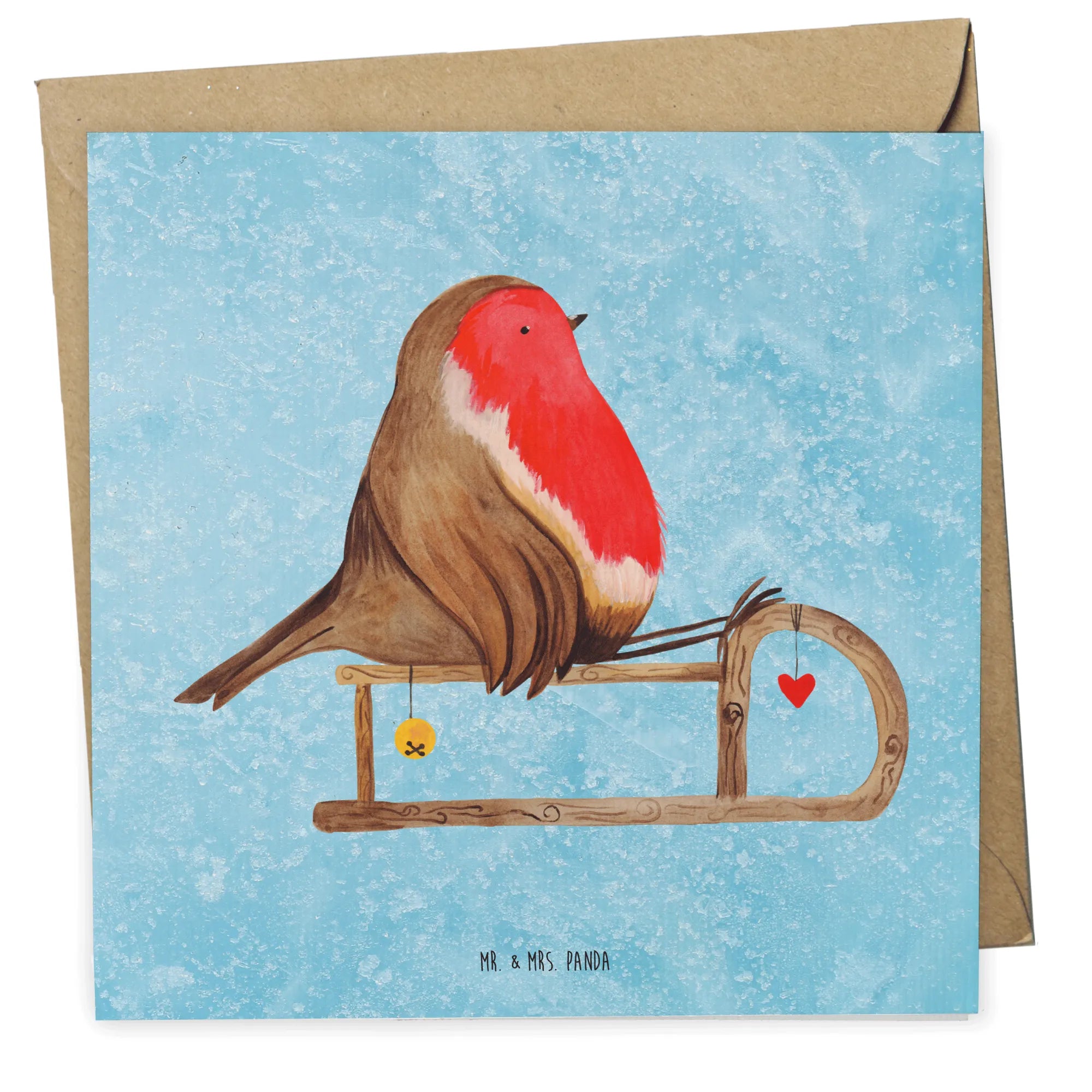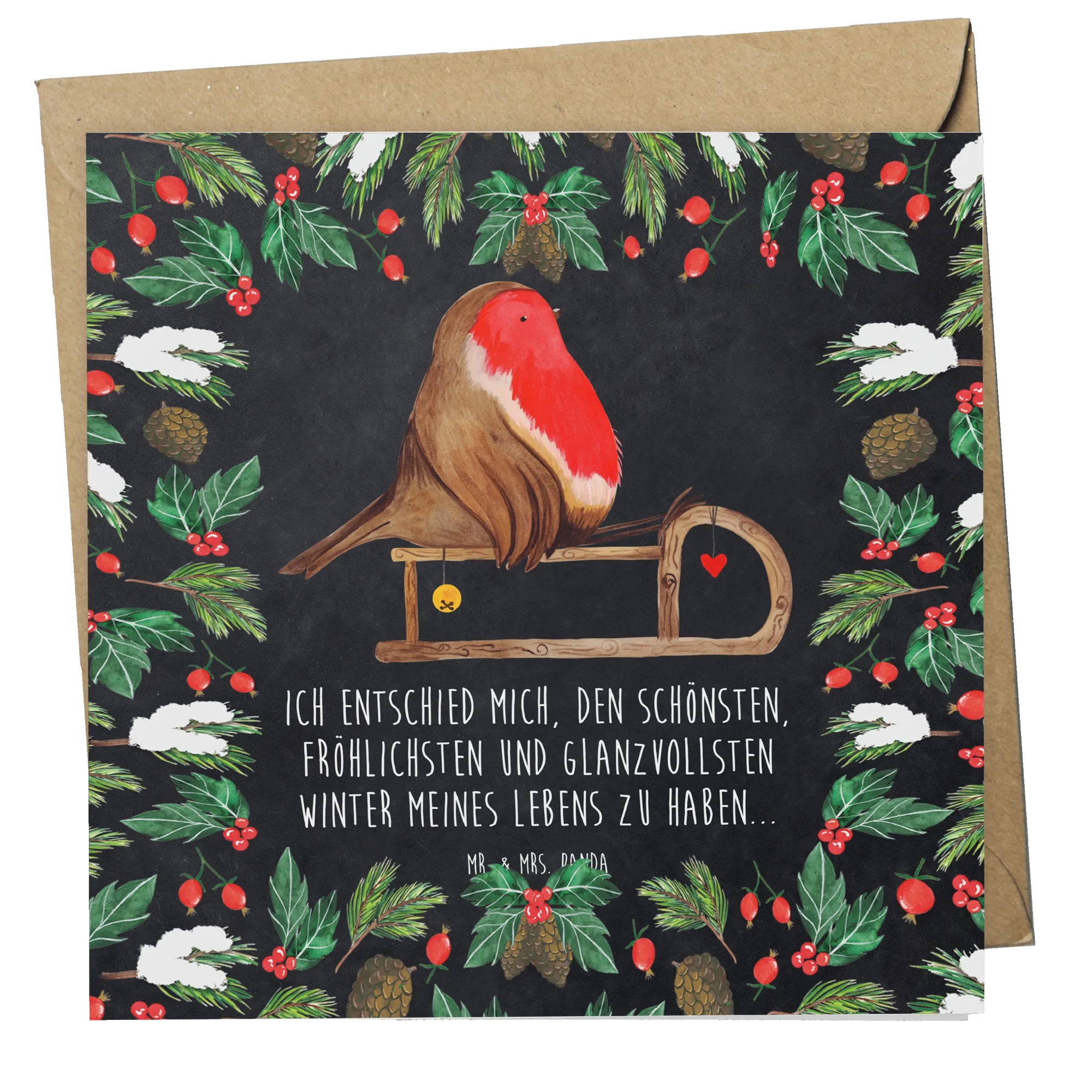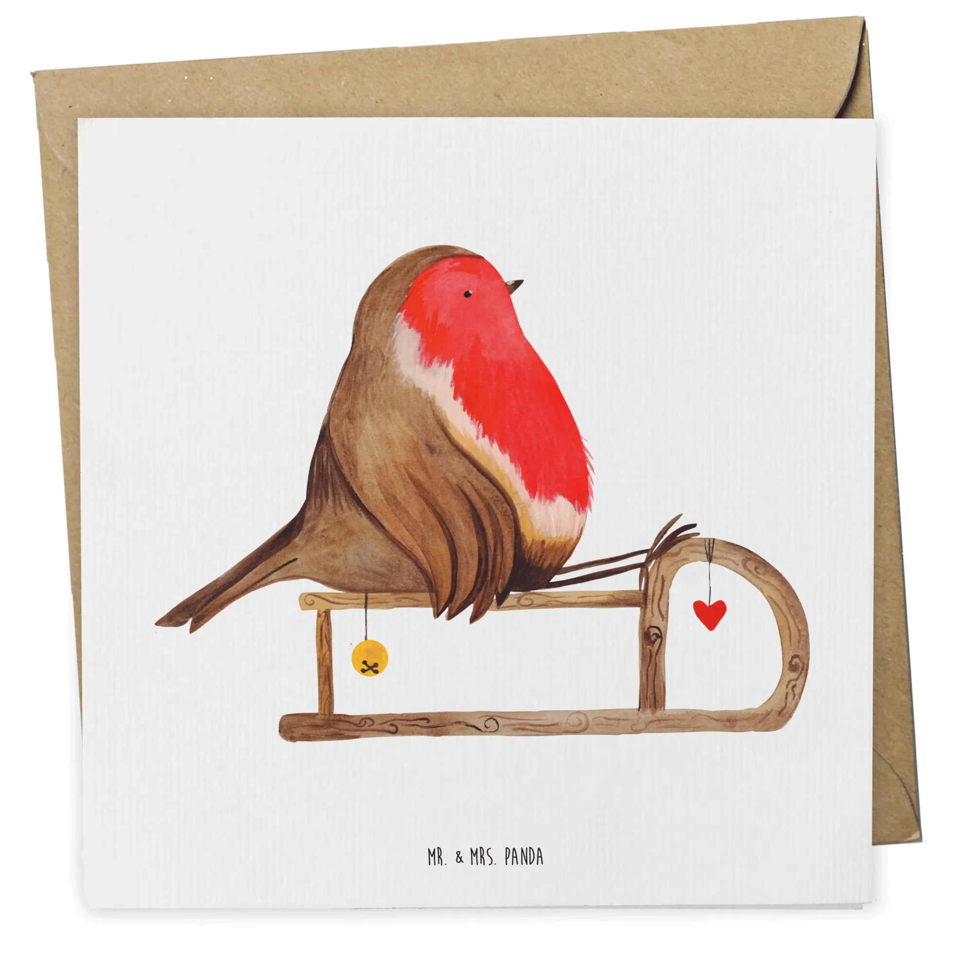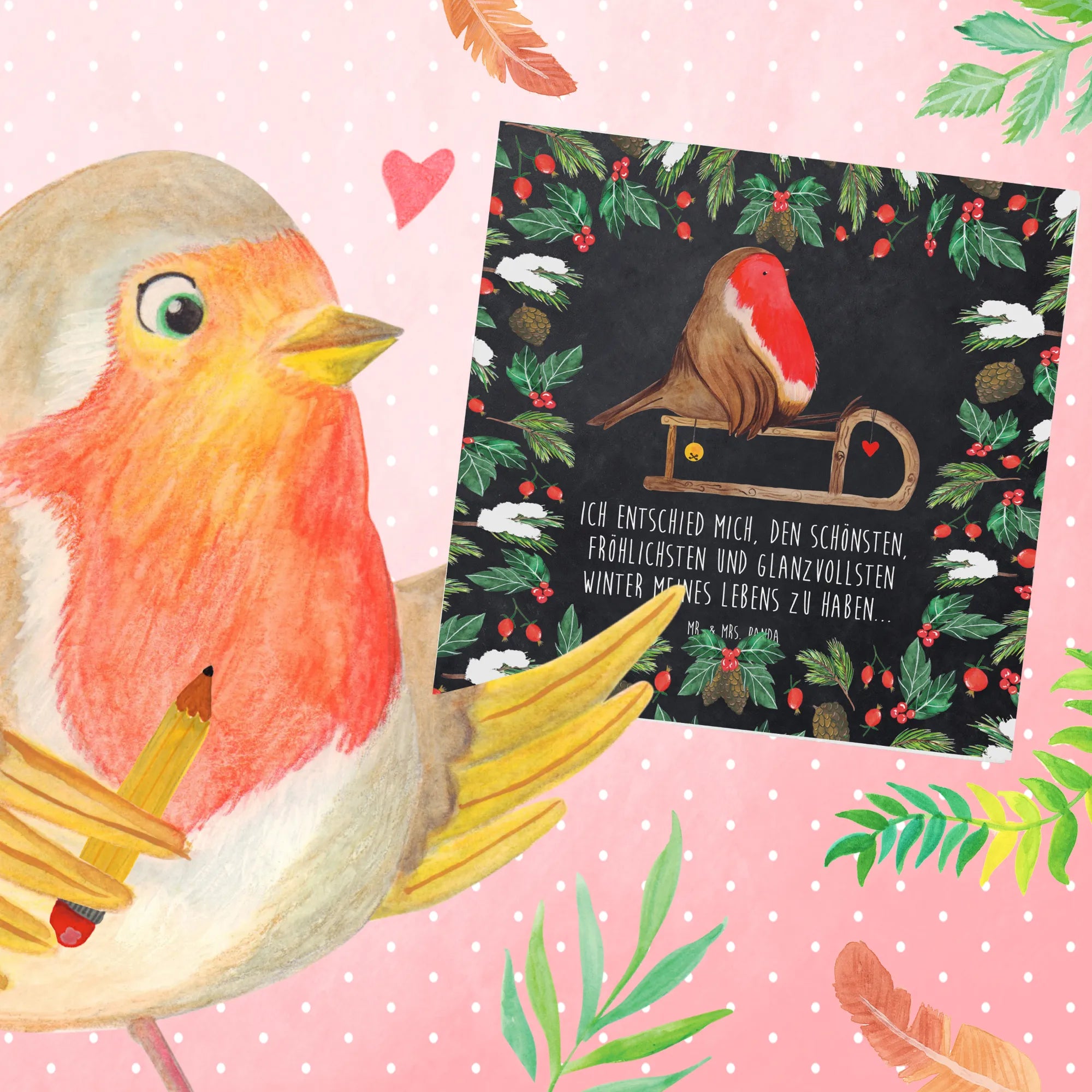 Entdecke die zauberhafte Deluxe Karte mit dem süßen Motiv des Rotkehlchens auf einem Schlitten, aus der Winter Kollektion von Mr. & Mrs. Panda. Diese wunderschöne und hochwertige quadratische Karte ist ideal, um persönliche Grüße oder Glückwünsche zu feierlichen Anlässen wie Weihnachten, Geburtstagen, Hochzeiten oder Jubiläen zu übermitteln.