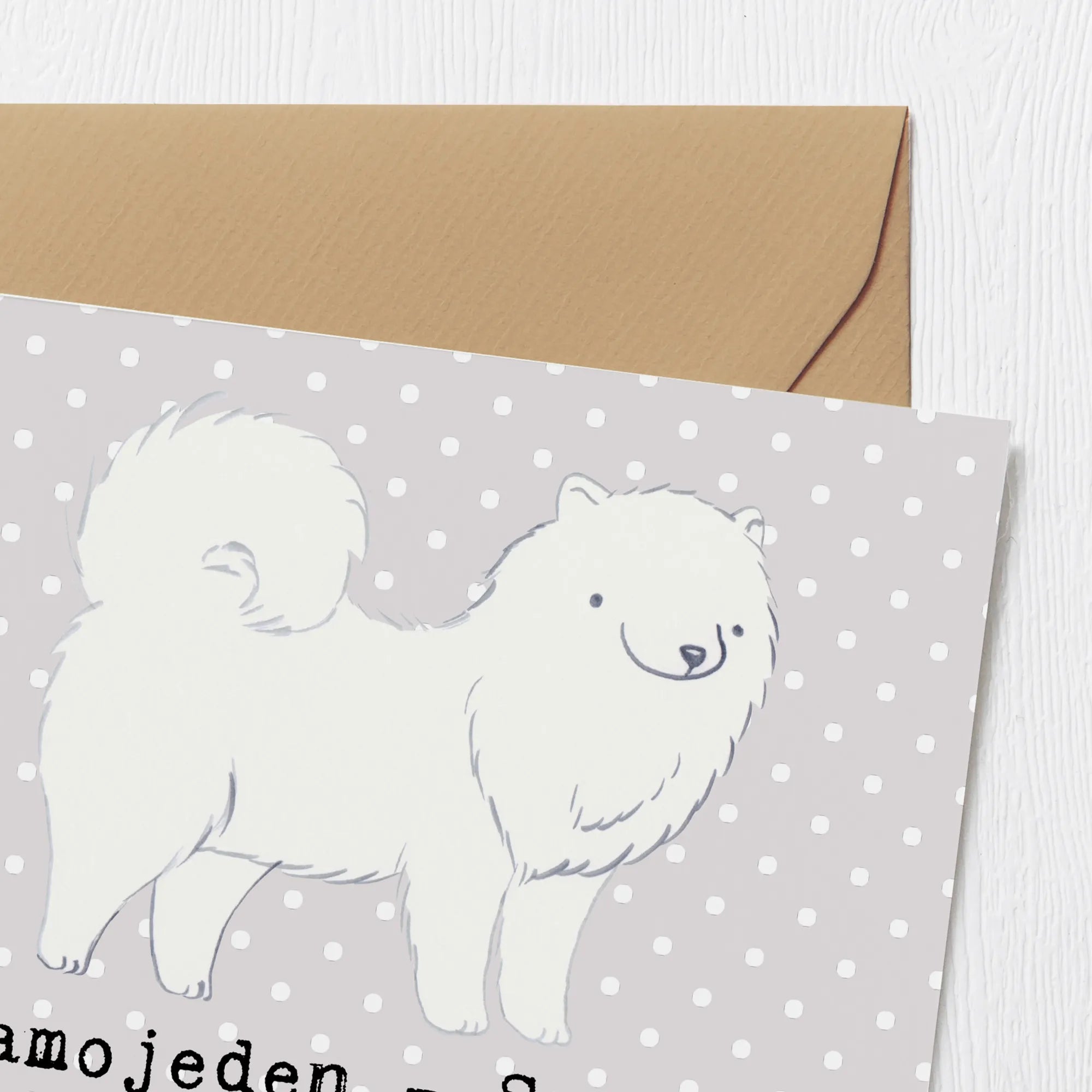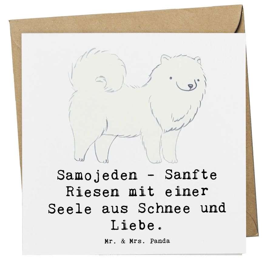 Die Deluxe Karte mit dem bezaubernden Samojede-Motiv aus der Hunderassen-Kollektion von Mr. & Mrs. Panda ist das perfekte Geschenk für Hundefreunde und Liebhaber der sanften Riesen mit einer Seele aus Schnee und Liebe. Mit ihrem einzigartigen Design, das sowohl stilvoll als auch verspielt ist, eignet sich diese hochwertige Klappkarte für zahlreiche feierliche Anlässe. Ob zur Hochzeit, zum Geburtstag oder zur Jubiläumsfeier – diese Karte bringt garantiert ein Lächeln auf die Gesichter der Beschenkten.
