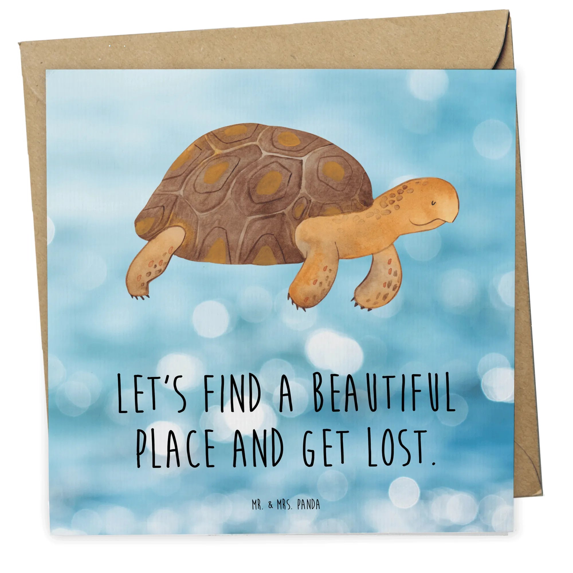 Unsere quadratische Grußkarte mit dem liebevollen Slogan „Let's find a beautiful place and get lost.“ bringt Meer, Urlaub und Reiselust direkt in die Hände deiner Lieblingsmenschen. Die freundliche Schildkröte vermittelt Ruhe, Gelassenheit und ein Augenzwinkern für alle, die Abenteuer im Herzen tragen. Ideal als Hochzeitskarte, Geburtstagskarte, Einladungskarte oder einfach als Glückwunschkarte.