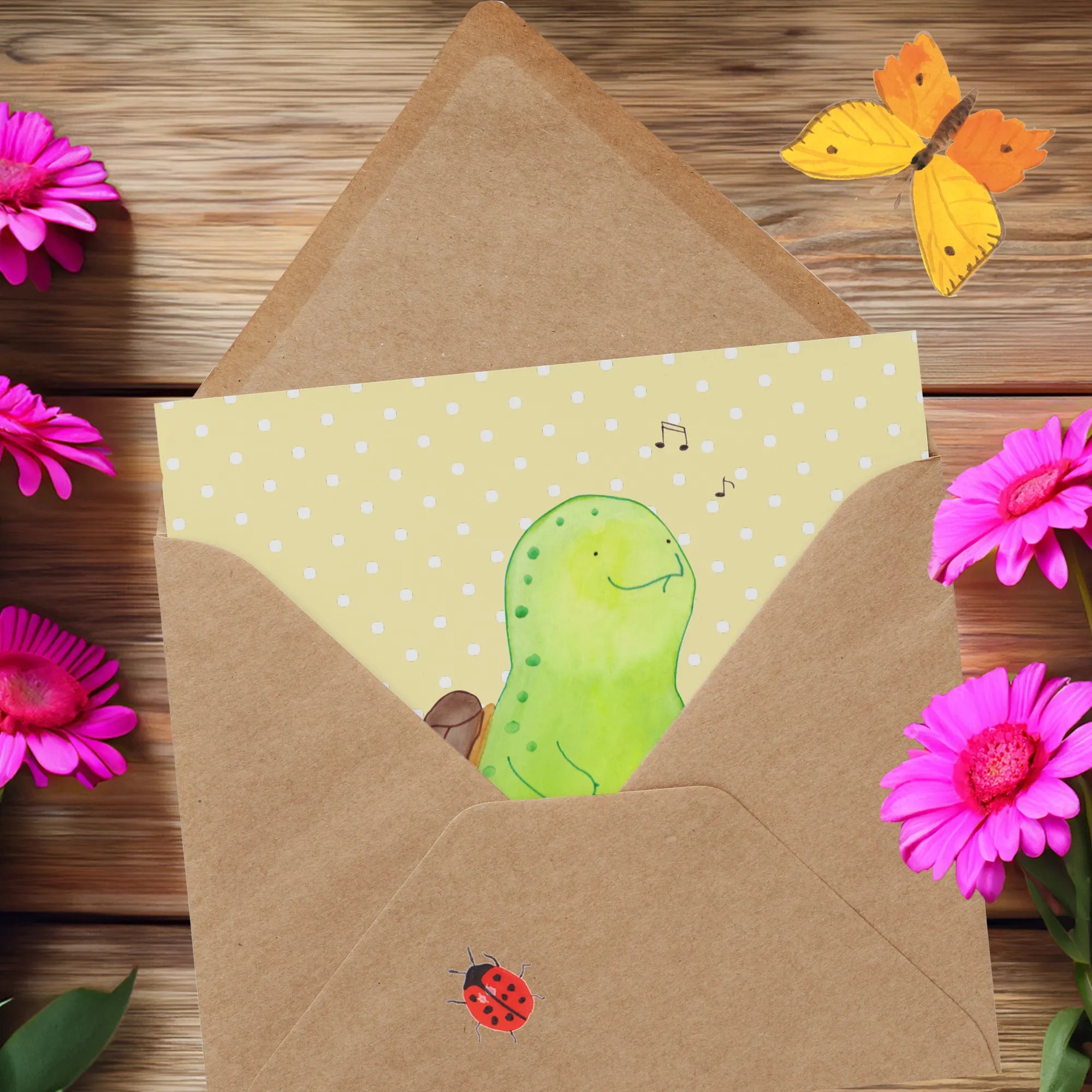 Bei Mr. & Mrs. Panda findest du mit Sicherheit das perfekte Schildkröten Geschenk für jeden Schildkröten-Fan, der das Leben genießt. Diese Karte gehört in jede Sammlung von Grußkarten und darf bei keinem feierlichen Anlass fehlen.