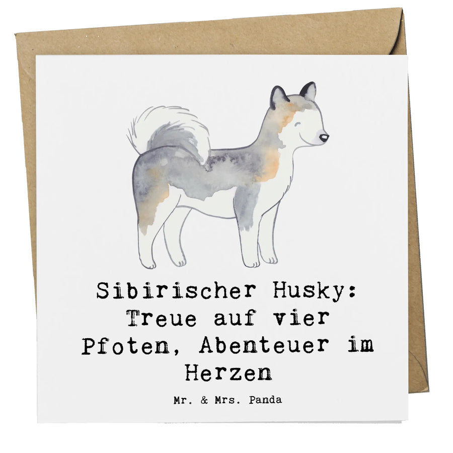 Verschenke mit dieser Deluxe Grußkarte ein Stück Lebensfreude, Treue und Abenteuerlust – genau das, wofür der Sibirische Husky steht. Eine wunderschöne Klappkarte aus der Hunderassen-Kollektion von Mr. & Mrs. Panda, die garantiert Herzen höherschlagen lässt. 💌
