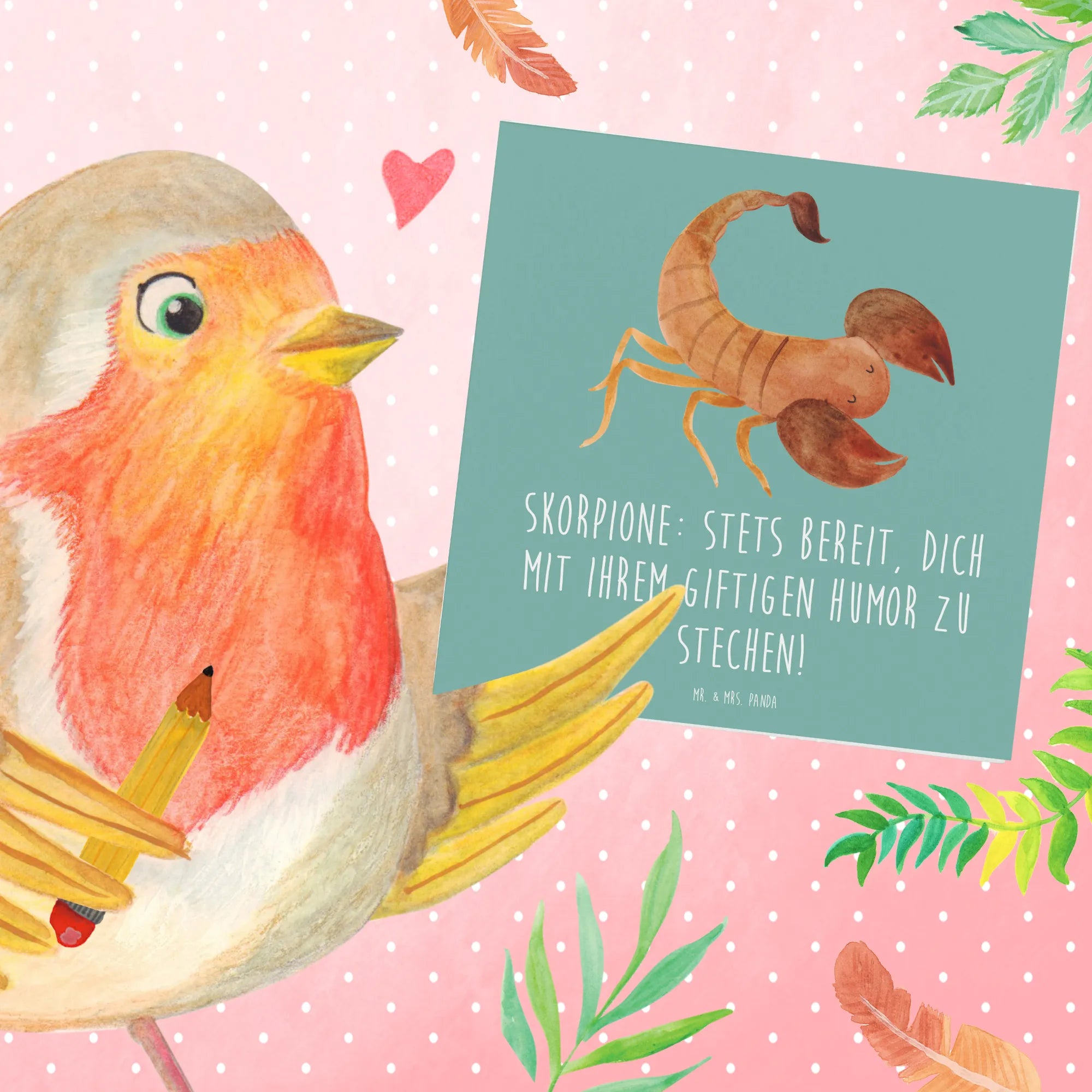 Die Deluxe Karte mit dem zauberhaften Skorpion-Motiv von Mr. & Mrs. Panda ist das perfekte Geschenk für alle, die die Magie der Sternzeichen schätzen! Diese wunderschöne und hochwertige quadratische Karte ist nicht nur ein Blickfang, sondern auch eine liebevolle Botschaft für deine Freunde und Familie.