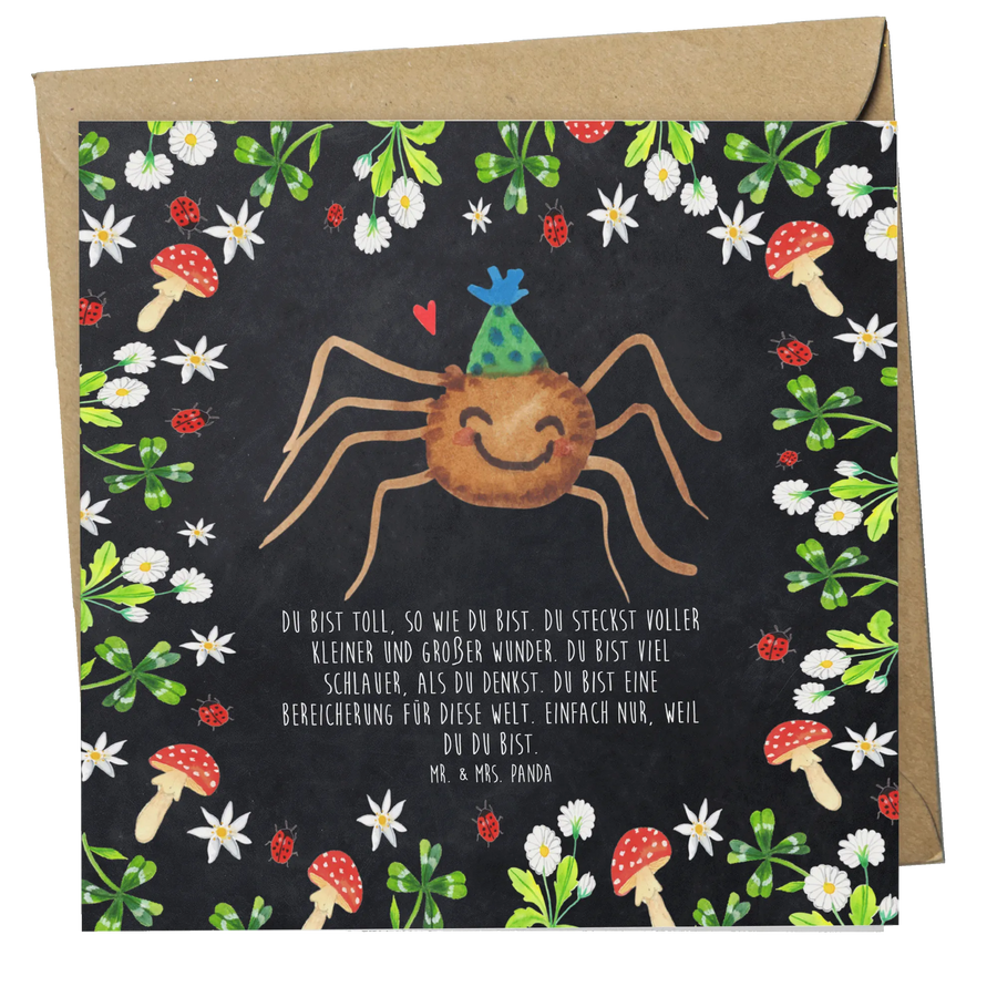 Die Deluxe Karte 'Spinne Agathe Party' von Mr. & Mrs. Panda ist das perfekte Geschenk für all jene, die ein wenig Freude und Selbstliebe verbreiten möchten. Ob zu Geburtstagen, Hochzeiten oder anderen festlichen Anlässen, diese hochwertige quadratische Karte ist ein echter Hingucker.