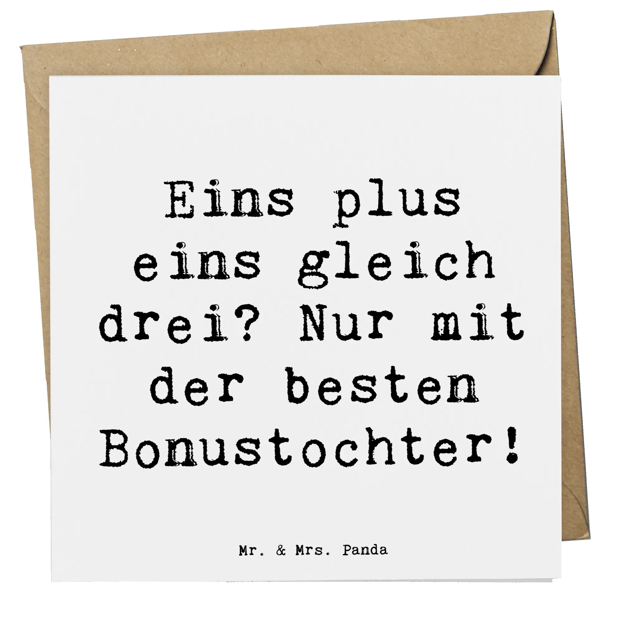 Mit dem charmanten Spruch "Eins plus eins gleich drei? Nur mit der besten Bonustochter!" spricht diese Karte die besondere Beziehung zu Stieftöchtern an – eine Beziehung, die oft voller Freude und einzigartiger Erlebnisse ist. Ob zum Geburtstag, zur Hochzeit oder einfach als Dankeschön für die liebevolle Unterstützung im Familienleben, diese Karte ist vielseitig einsetzbar. Sie zieht tolle Blicke an und wird zweifellos ein Lächeln auf das Gesicht deiner Bonustochter zaubern.