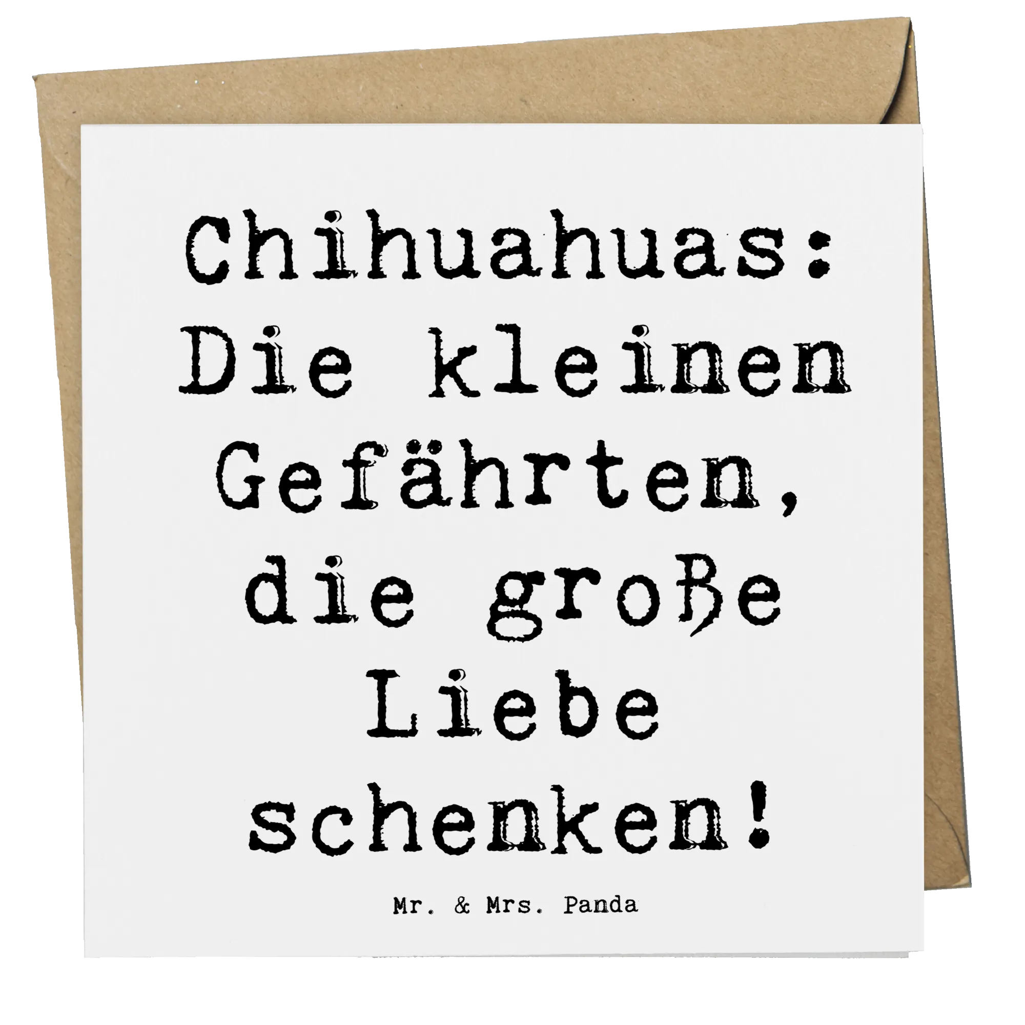 Unsere Deluxe Karte Chihuahua aus der Hunderassen-Kollektion von Mr. & Mrs. Panda verbindet niedliche Illustration und edle Verarbeitung. Auf der Vorderseite steht der herzliche Spruch: „Chihuahuas: Die kleinen Gefährten, die große Liebe schenken!“ – ein Motiv, das speziell Chihuahua-Fans und Hundeliebhaber berührt. 🐾