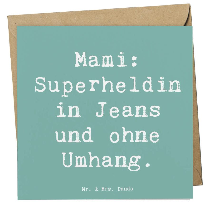 Die hochwertige Verarbeitung und das liebevolle Design machen diese Karte zu einem ganz besonderen Hingucker. Auf der Vorderseite prangt der liebevolle Spruch "Mami: Superheldin in Jeans und ohne Umhang." In Kombination mit einer zauberhaften Illustration trägt der Spruch dazu bei, die besondere Rolle von Müttern zu würdigen. Mütter sind für uns nicht nur die besten Köche, sondern auch die besten Ratgeberinnen und meist die ersten Helden in unserem Leben.