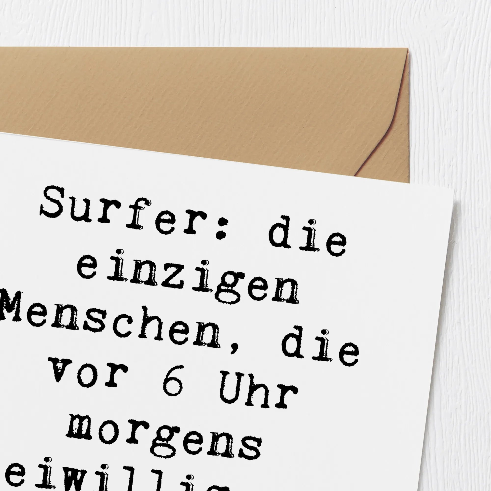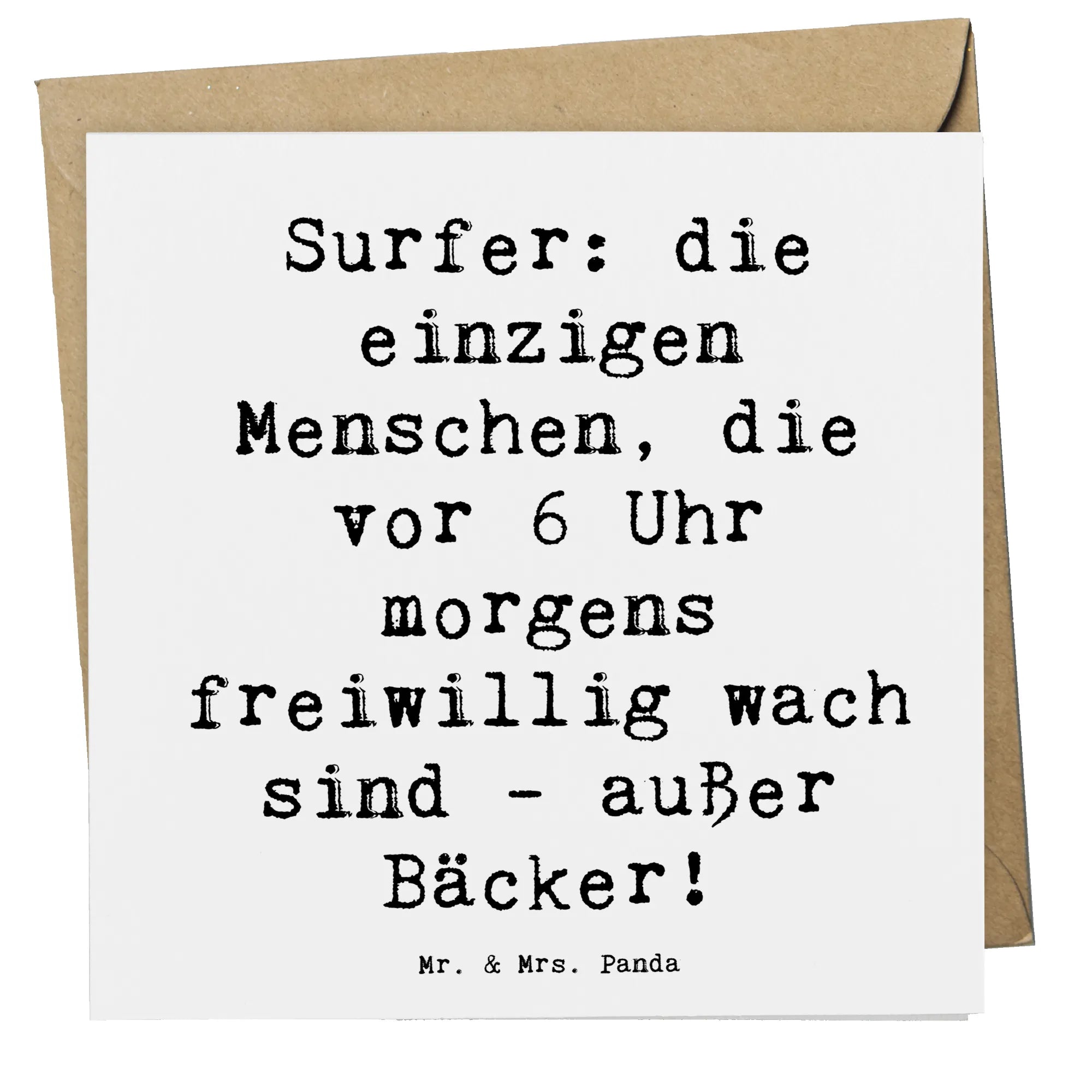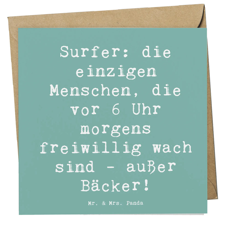 Surfen begeistert zahlreiche Menschen, die die Freude und Freiheit des Wassersports schätzen. Mit dem liebevollen Spruch ‘Surfer: die einzigen Menschen, die vor 6 Uhr morgens freiwillig wach sind - außer Bäcker!’ sorgt diese Karte für ein Lächeln im Gesicht des Empfängers und bringt die Begeisterung des Surfens auf außergewöhnliche Weise zum Ausdruck.