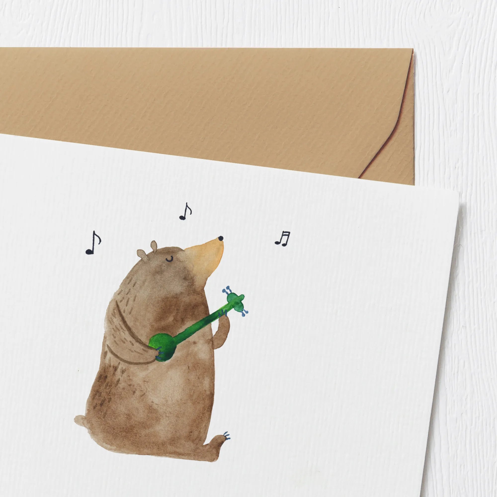 Karta Deluxe niedźwiedź Gitara - z napisem - biały