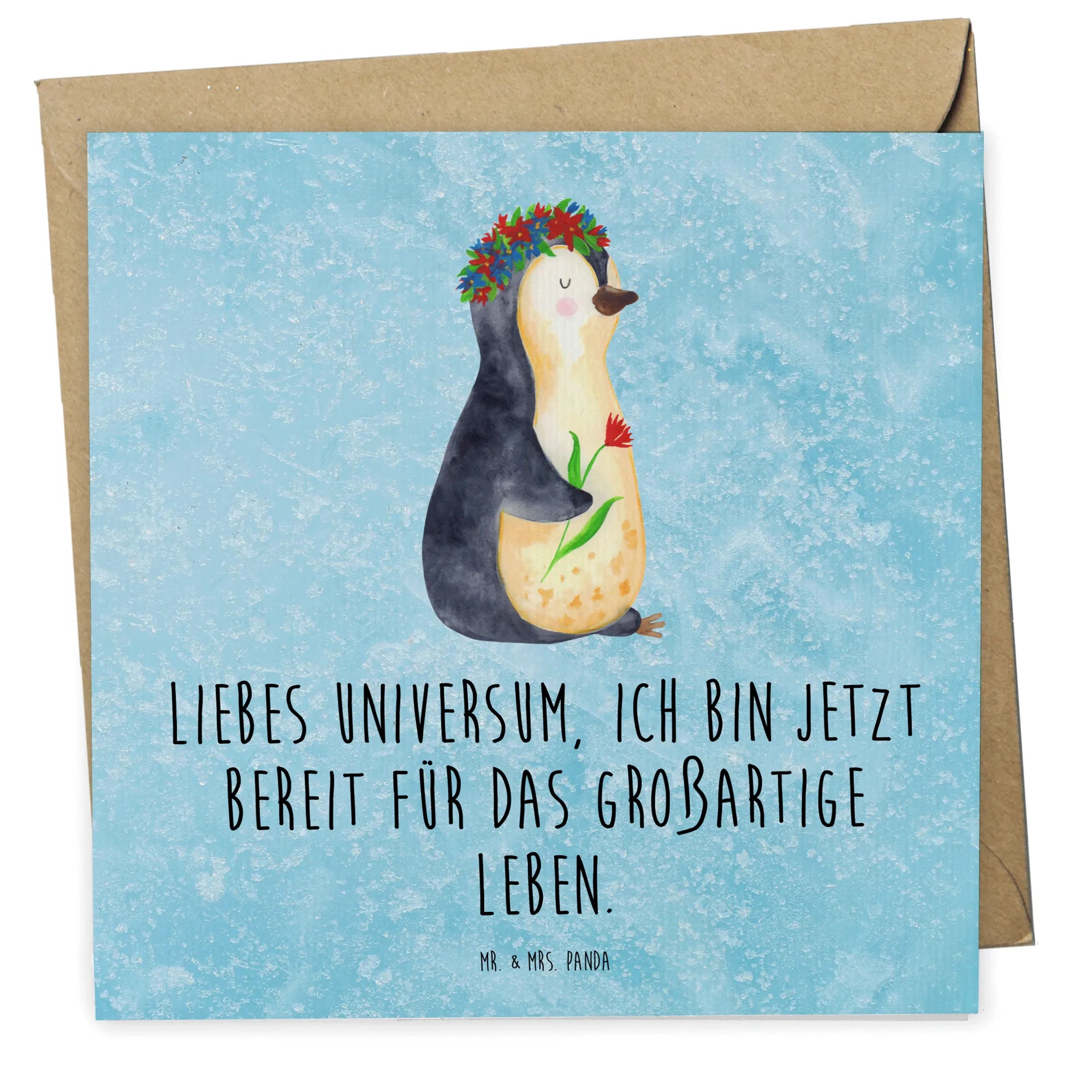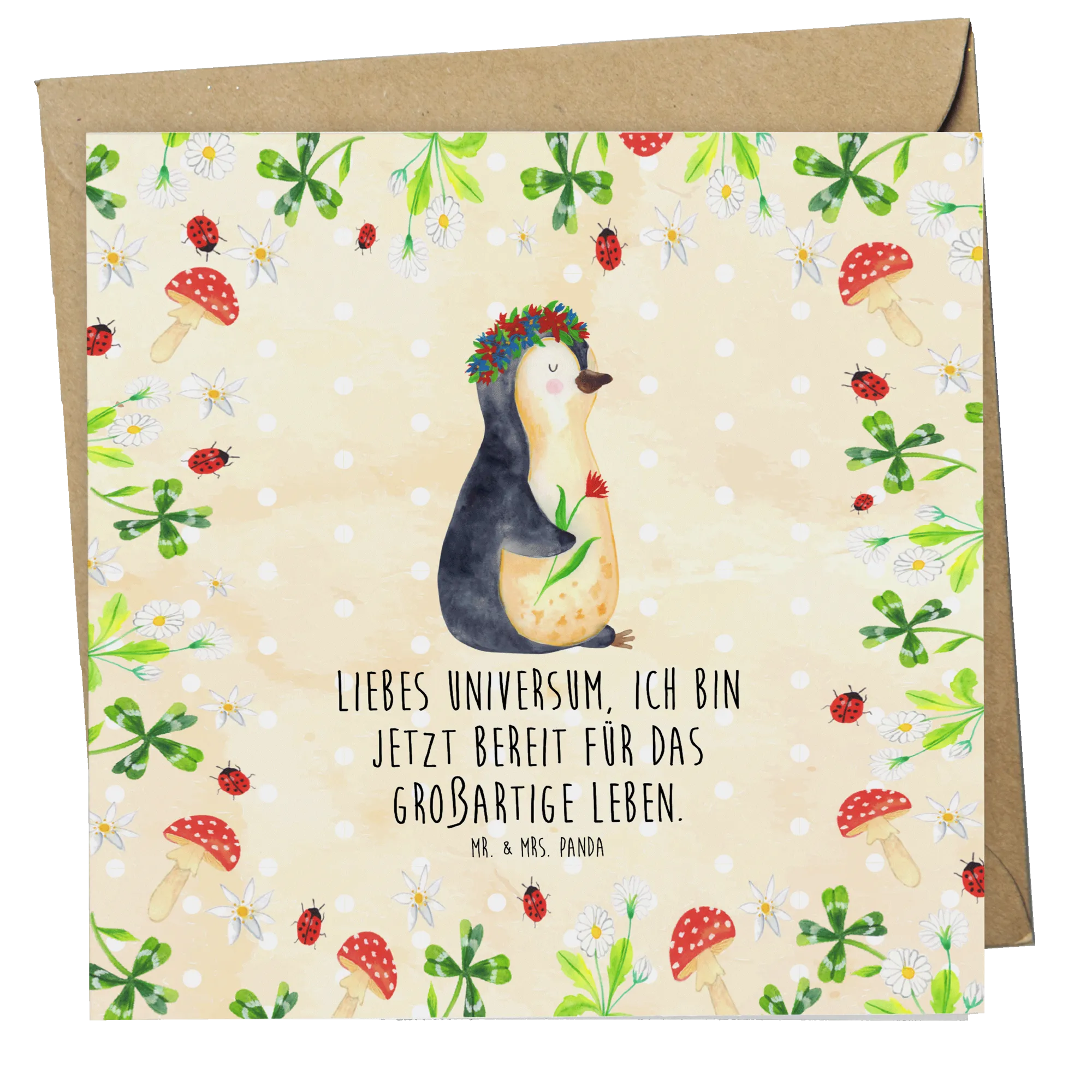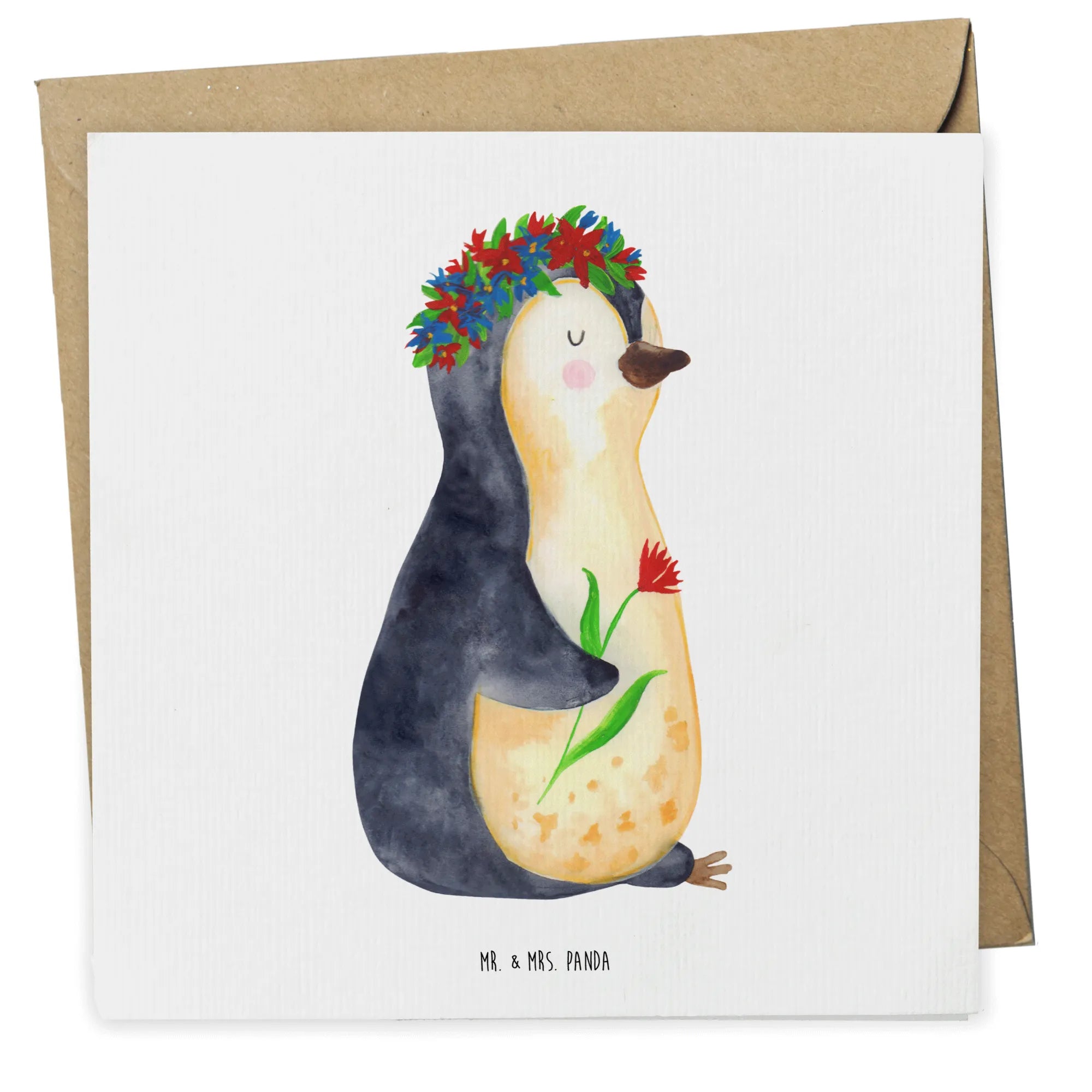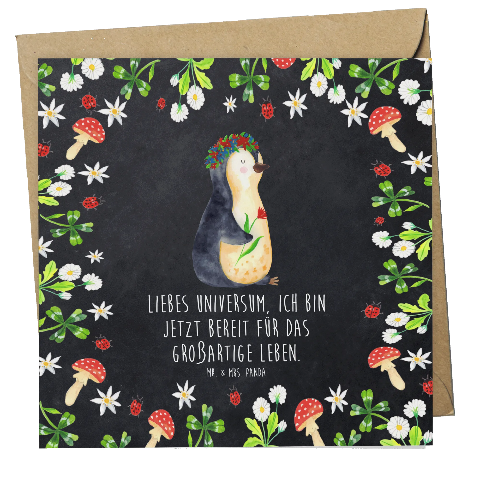 Karta Deluxe pingwin kwiaty - z napisem - Kreda