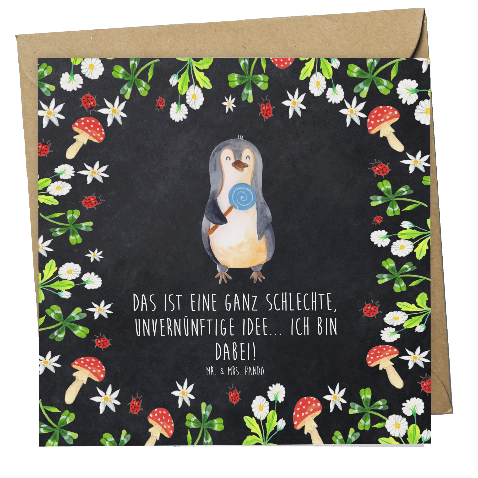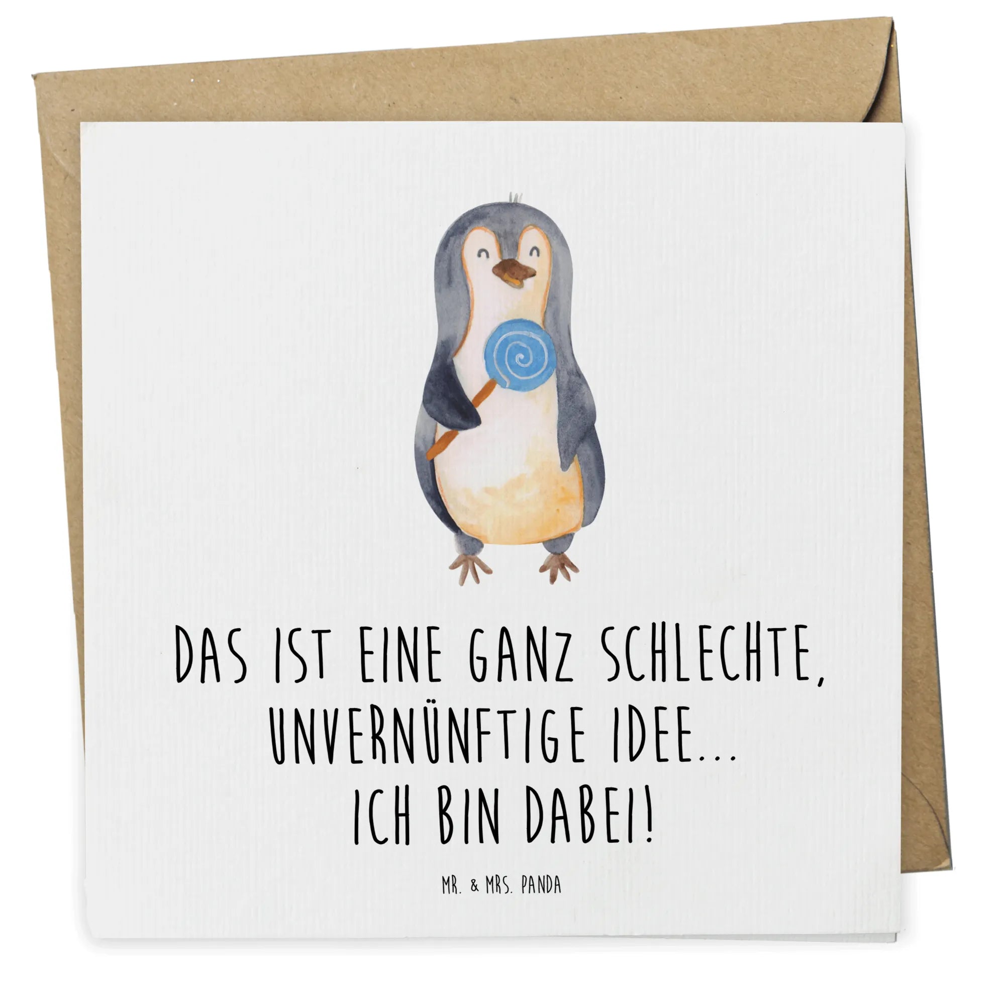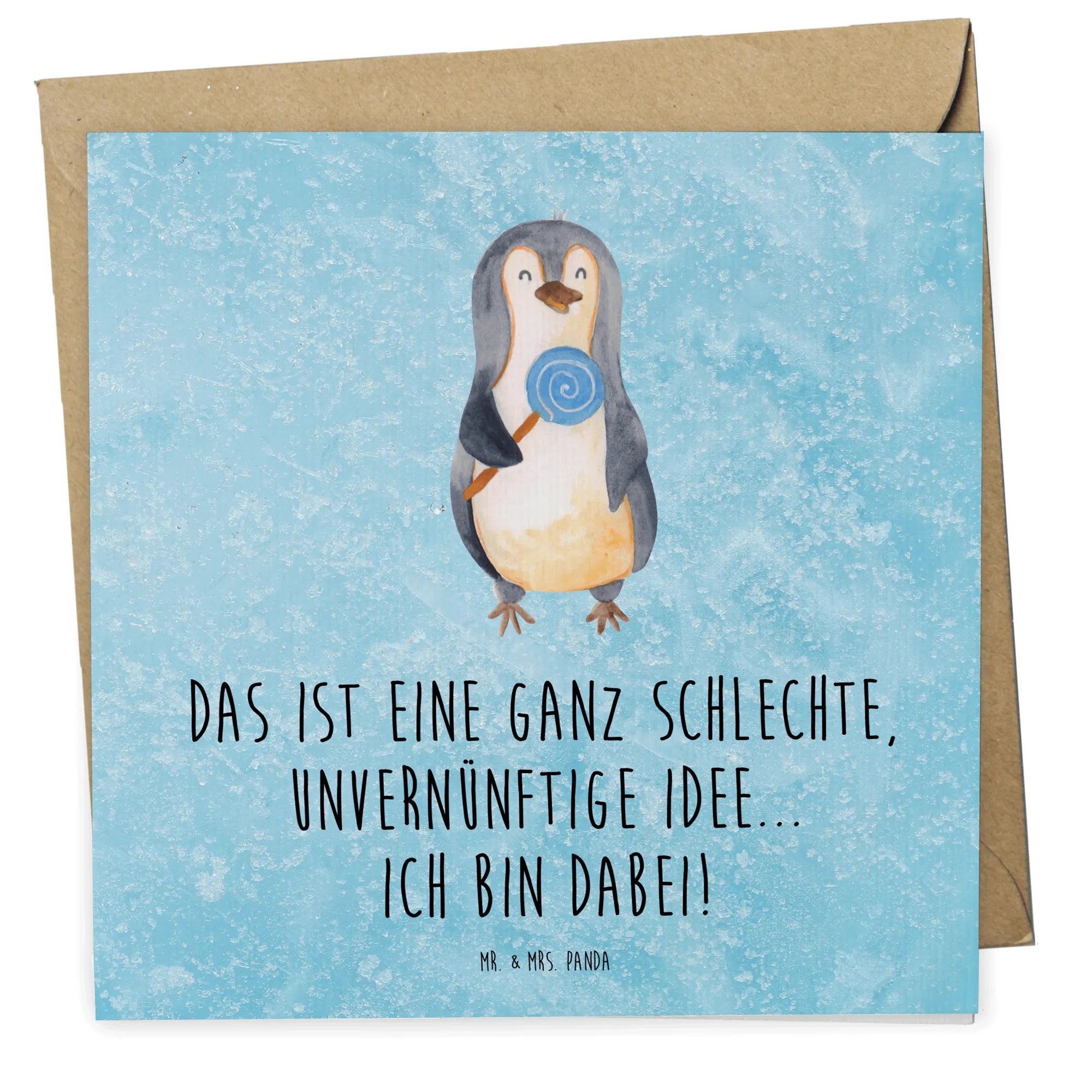 Karta Deluxe pingwin lizak - z napisem - Kreda