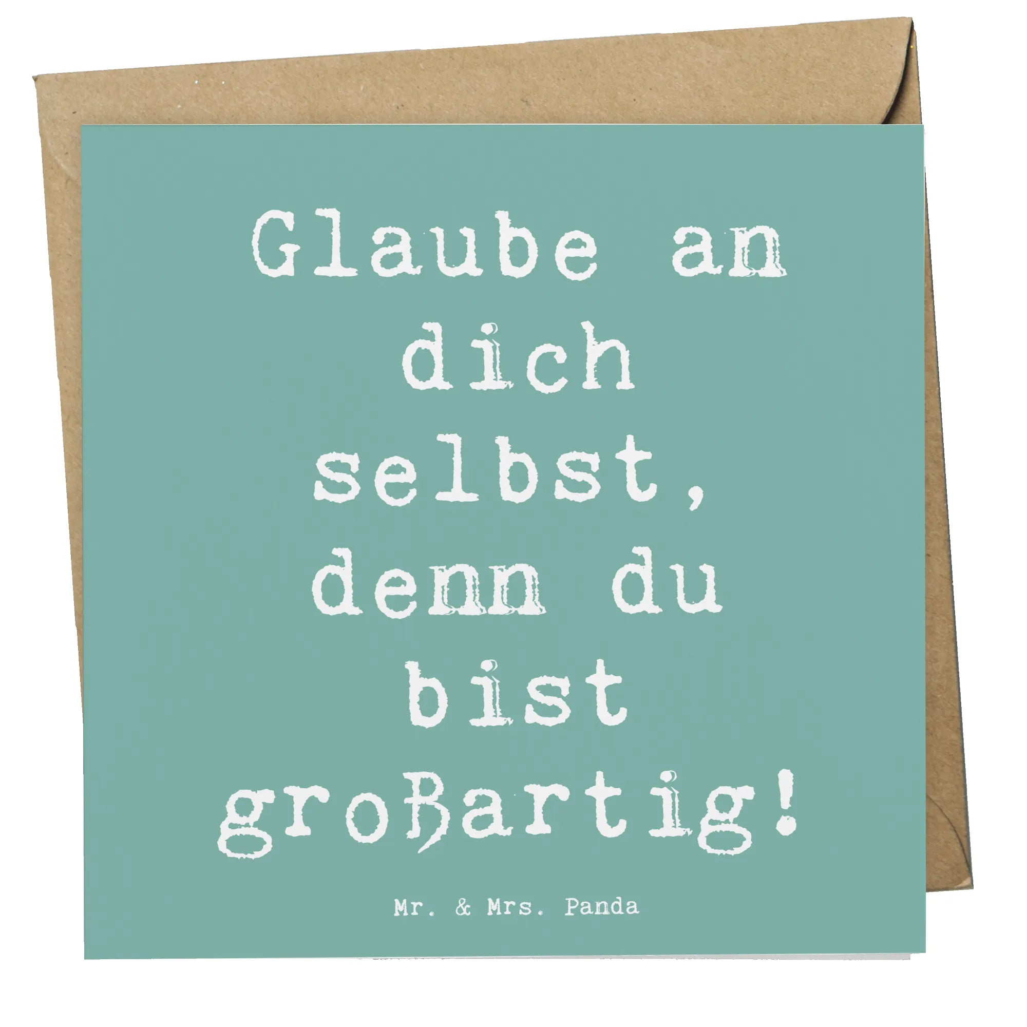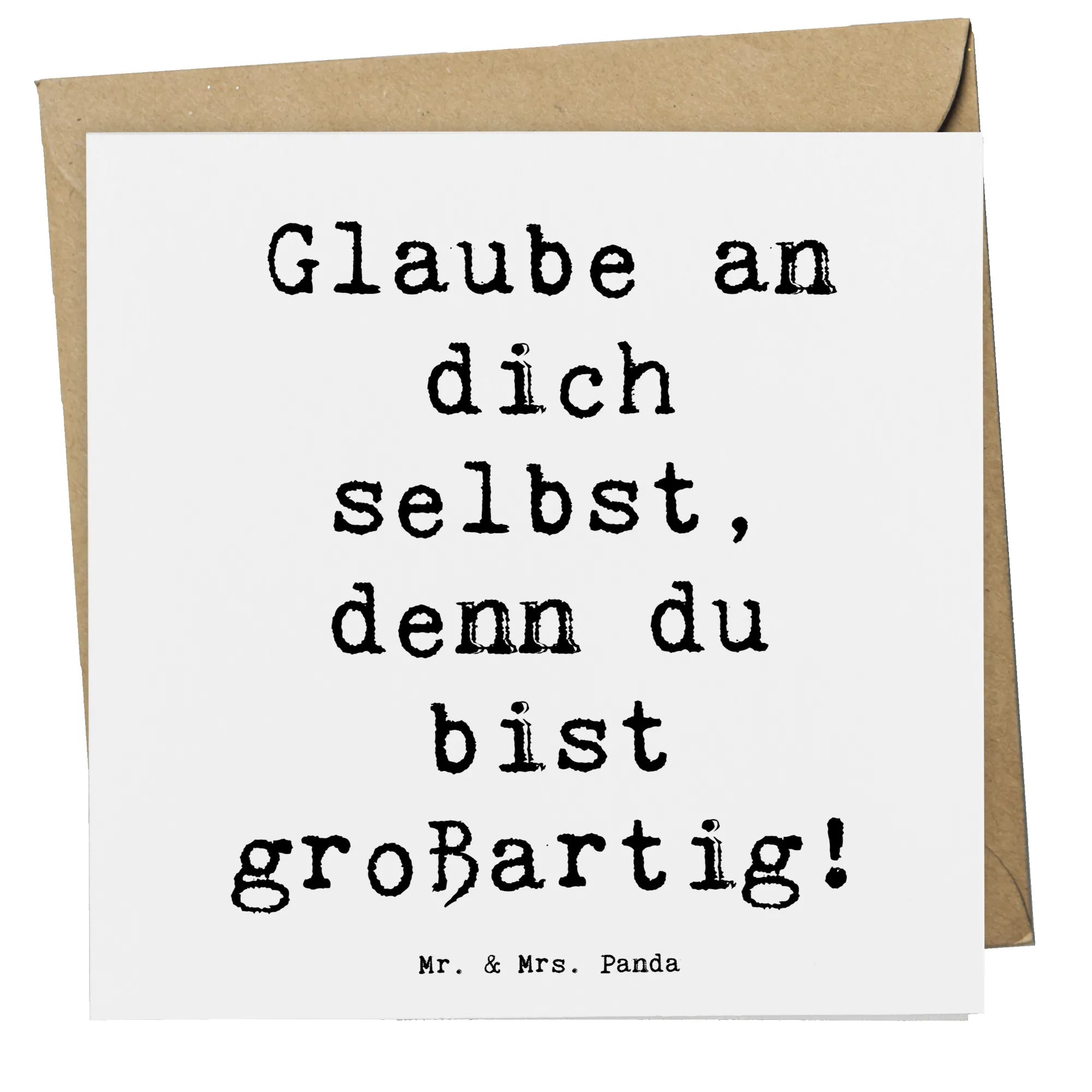 Verschenke Mut mit Stil 💌 – Die Deluxe Karte „Selbstvertrauen stärken“ aus unserer Mutmacher-Kollektion von Mr. & Mrs. Panda ist mehr als eine Grußkarte. Auf der Vorderseite steht der kleine Traumspender: „Glaub an dich selbst und du kannst Berge versetzen, denn in dir steckt mehr Kraft, als du ahnst.“ Ein Satz, der tröstet, motiviert und direkt ins Herz trifft.