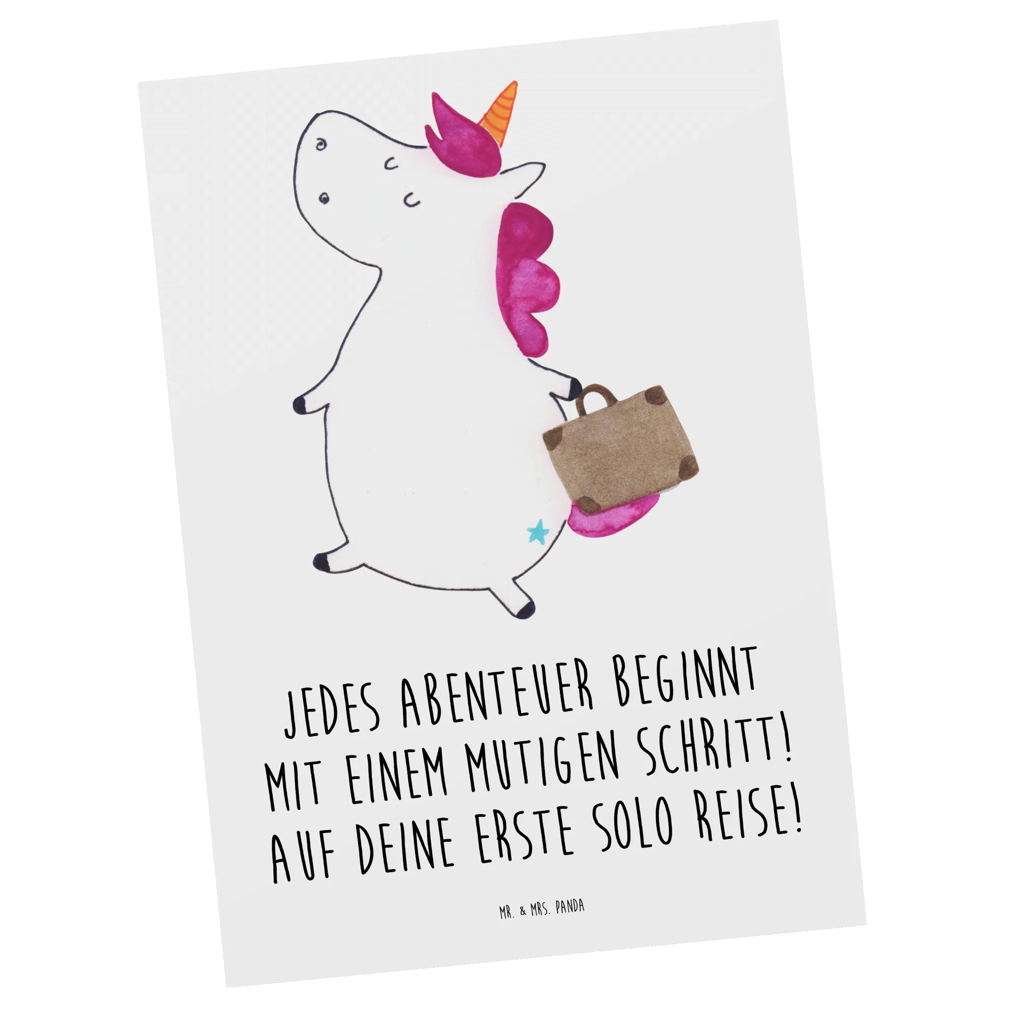 Pocztówka Jedes Abenteuer beginnt mit einem mutigen Schritt! Auf deine erste Solo Reise!