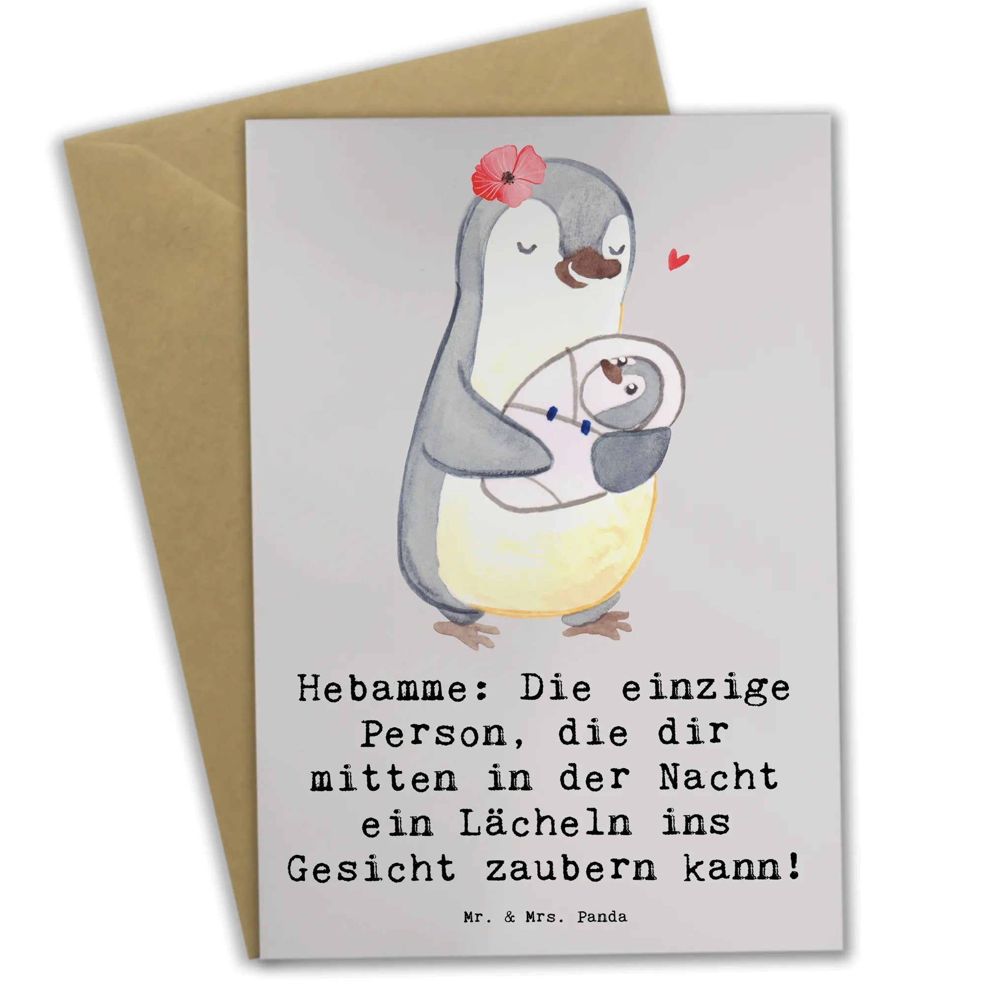 Du suchst nach dem perfekten Geschenk für eine Hebamme oder möchtest einfach nur Danke sagen? Dann ist unsere Grußkarte "Hebamme: Die einzige Person, die dir mitten in der Nacht ein Lächeln ins Gesicht zaubern kann!" von Mr. & Mrs. Panda genau das Richtige für dich! Diese liebevoll gestaltete Klappkarte bringt nicht nur ein Lächeln auf das Gesicht des Beschenkten, sondern ist auch eine wundervolle Möglichkeit, Wertschätzung und Dankbarkeit auszudrücken.