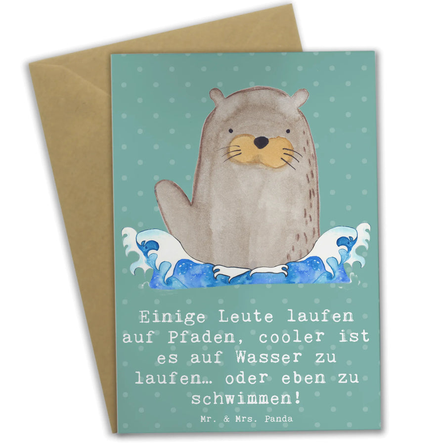 Die matte Innenseite lässt sich leicht beschriften, während der edle Umschlag das Gesamtbild abrundet. Verschenke Freude und zeige Deine Leidenschaft zum Schwimmen mit dieser einzigartigen Grußkarte von Mr. & Mrs. Panda.