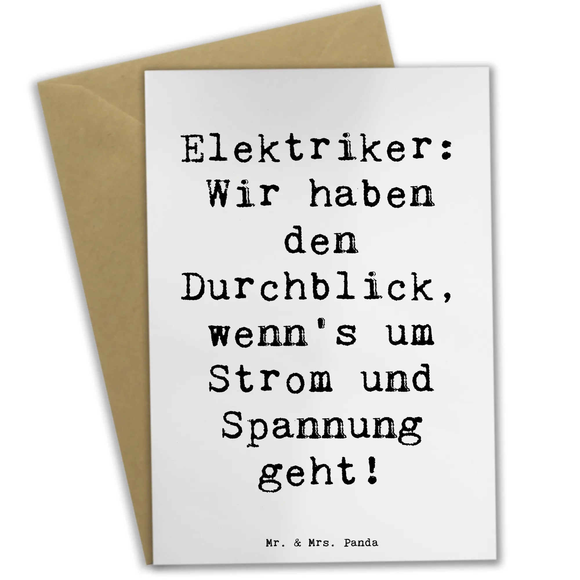Die Grußkarte "Elektriker: Wir haben den Durchblick, wenn's um Strom und Spannung geht!" aus der bezaubernden Berufe-Kollektion von Mr. & Mrs. Panda ist nicht nur ein einfaches Stück Papier, sondern ein liebevolles Geschenk, das perfekt für viele Anlässe ist.