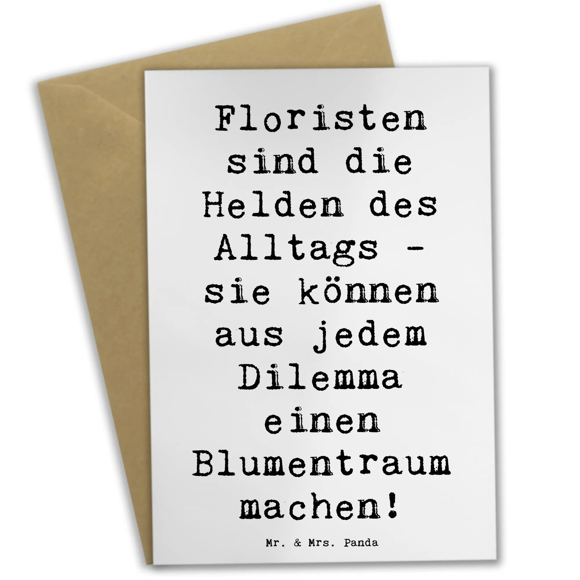Mit dem liebevollen Slogan "Floristen sind die Helden des Alltags - sie können aus jedem Dilemma einen Blumentraum machen!" bringt diese Karte zum Ausdruck, wie sehr man die harte Arbeit von Floristen schätzt.