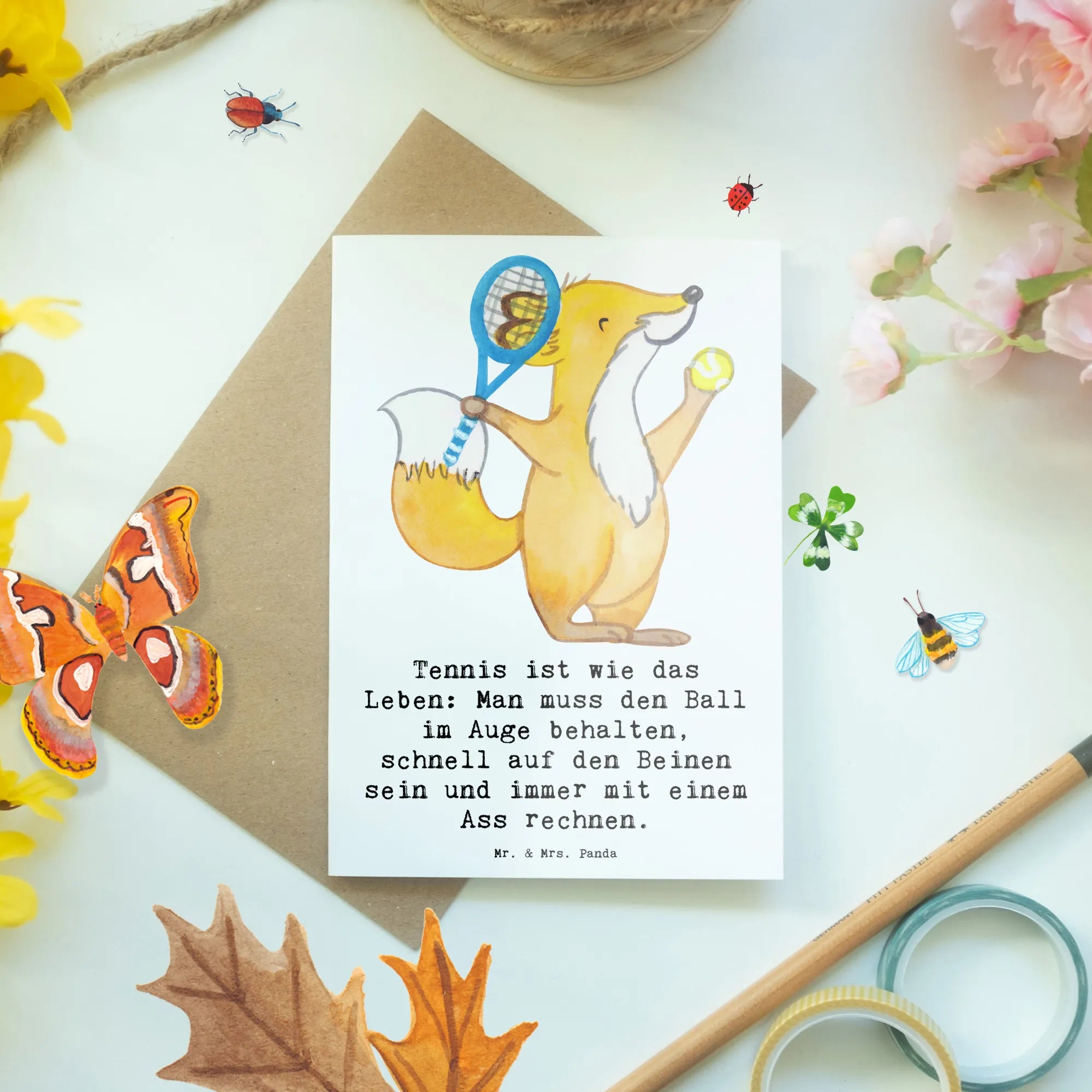 Diese wunderschöne Grußkarte von Mr. & Mrs. Panda ist das perfekte Geschenk für alle Tennisliebhaber! Ob du deinem besten Freund, der gerade ein tolles Turnier gespielt hat, oder deiner Schwester, die ihre Leidenschaft für den Tennissport entdeckt hat, eine Freude machen möchtest – diese Karte passt einfach immer.