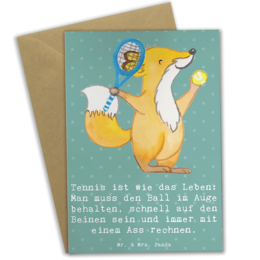 Entdecke die zauberhafte Grußkarte Tennis aus der einzigartigen Sportarten-Kollektion von Mr. & Mrs. Panda. Diese wunderbare Klappkarte ist nicht nur ein herzlicher Gruß, sondern auch eine inspirierende Botschaft für alle Tennisliebhaber und Sportbegeisterte.
