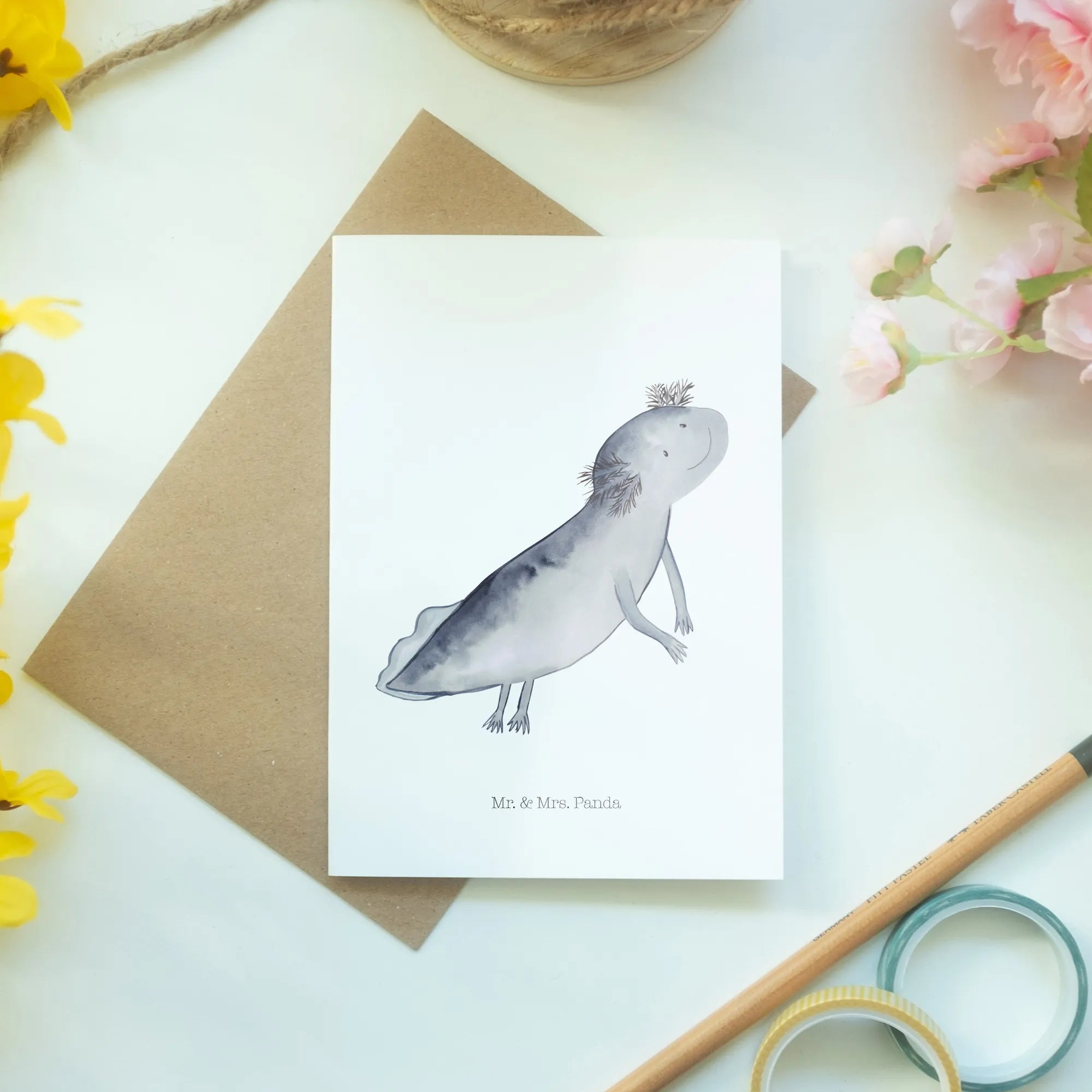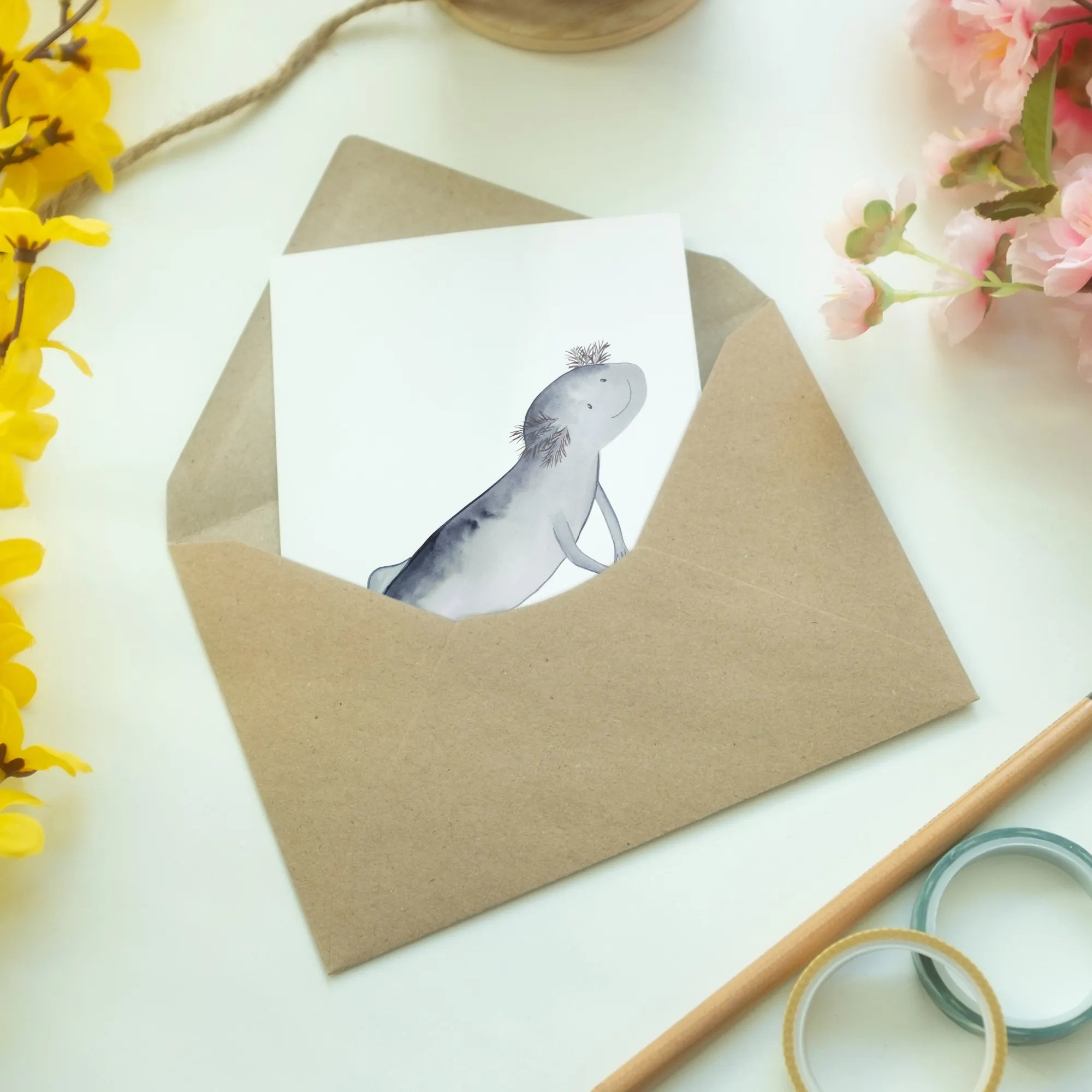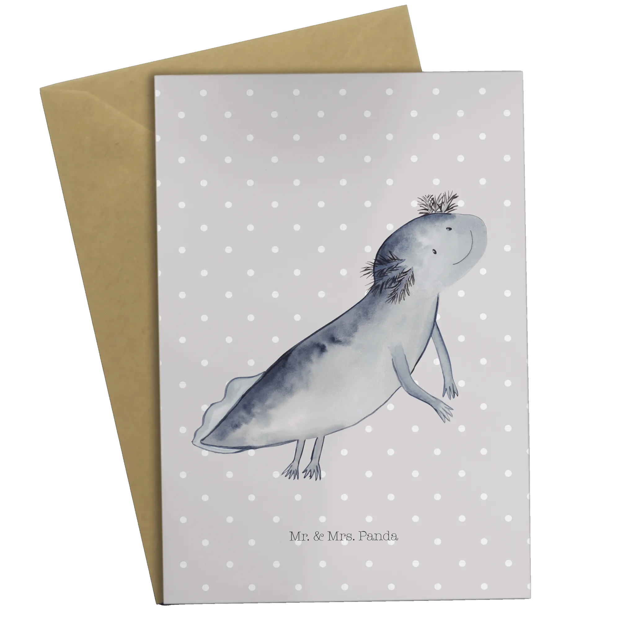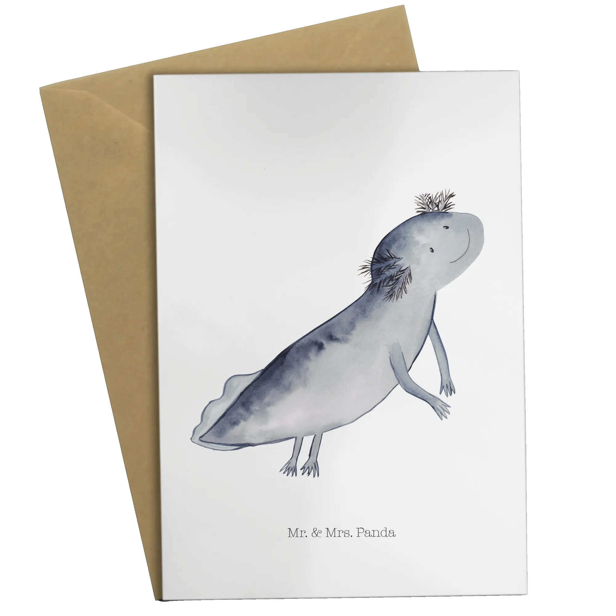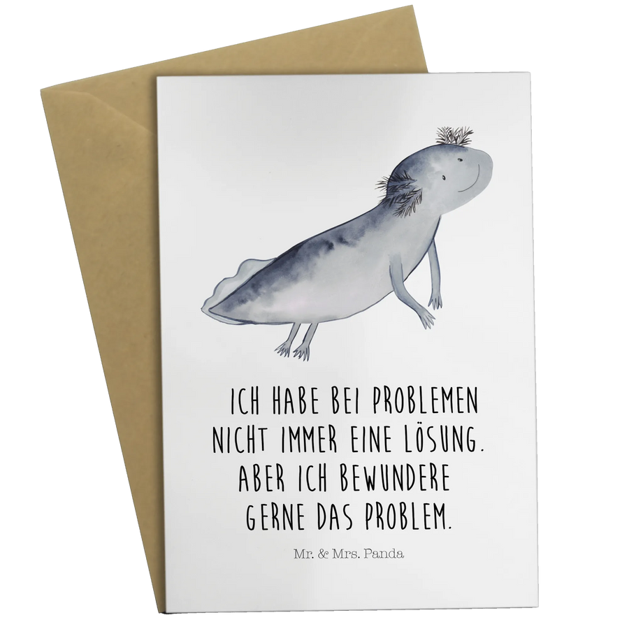 Kartka okolicznościowa ajolotl pływanie - z napisem - biały