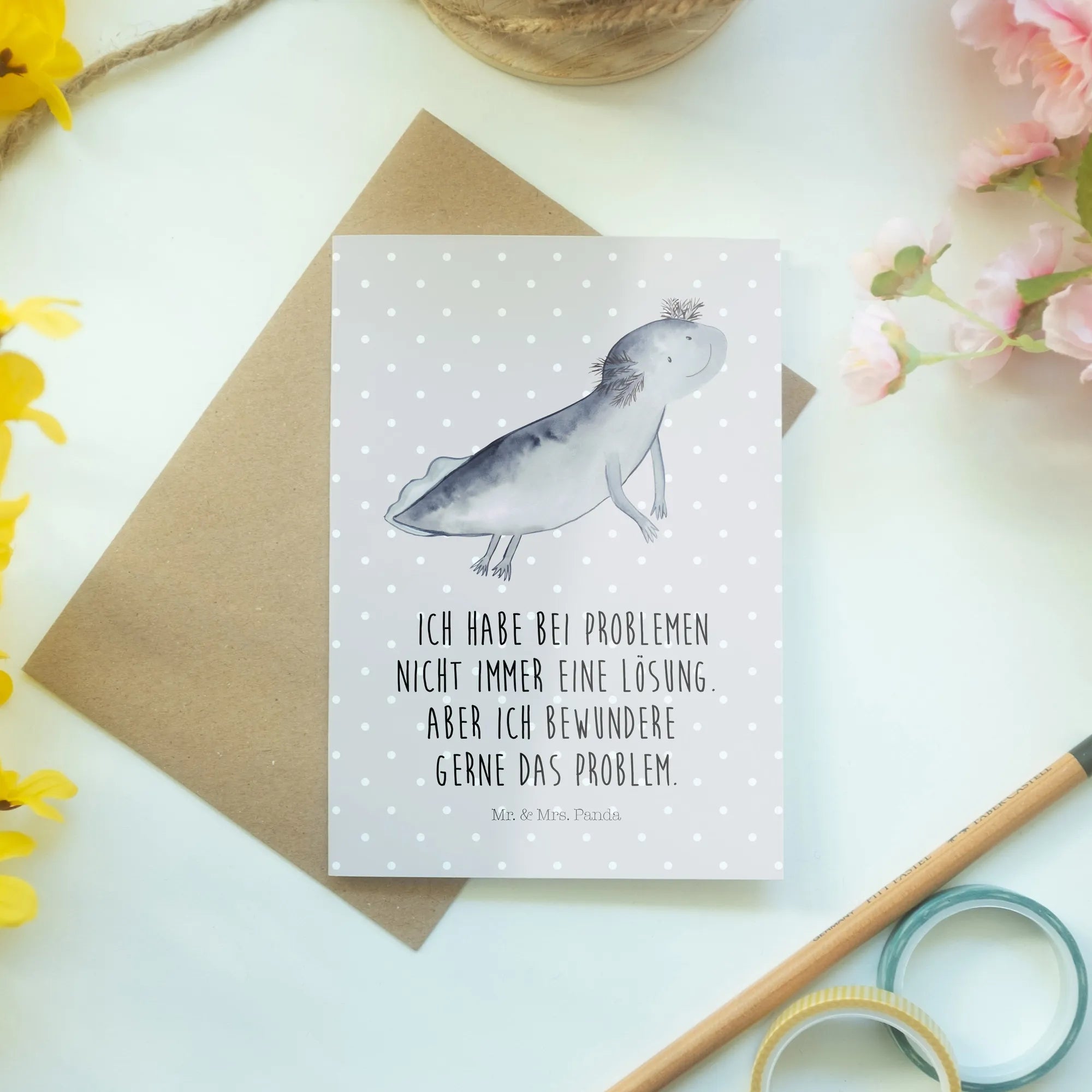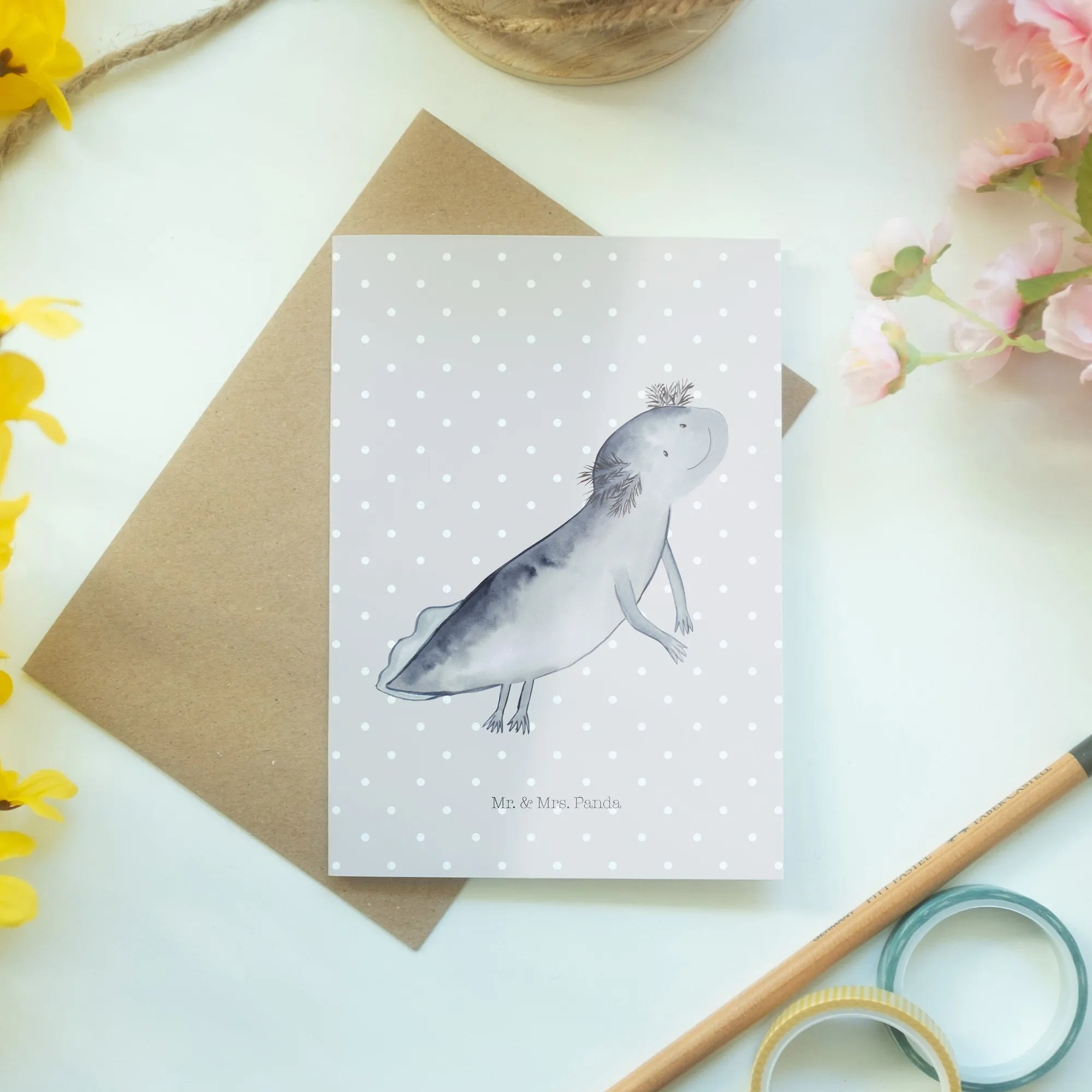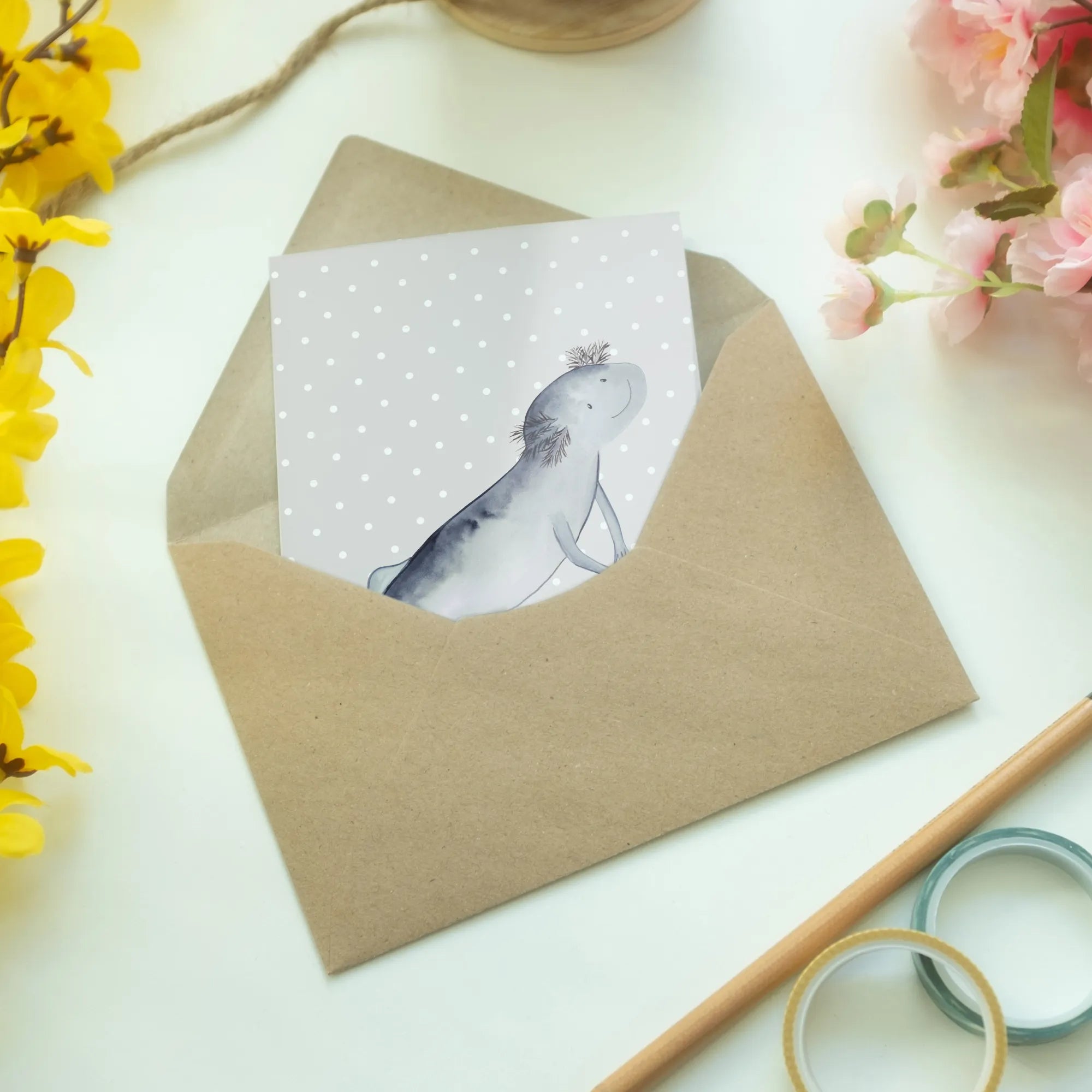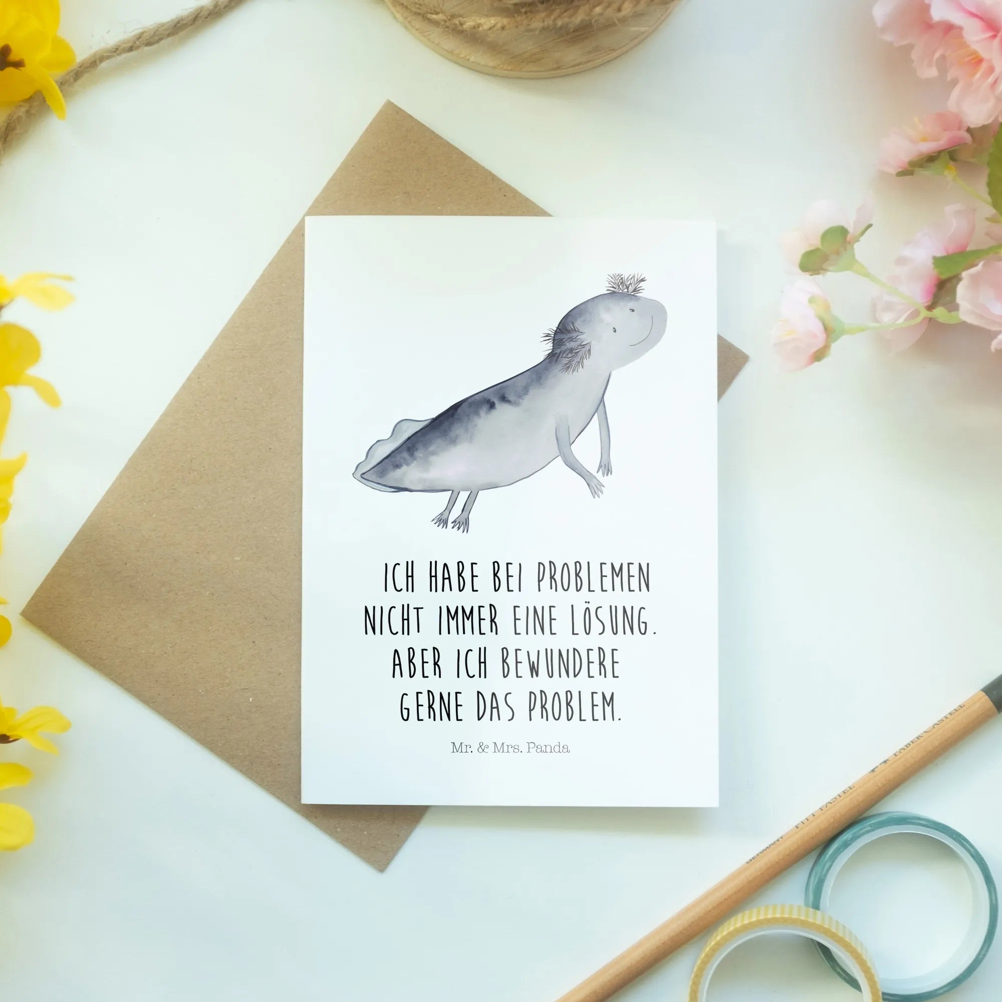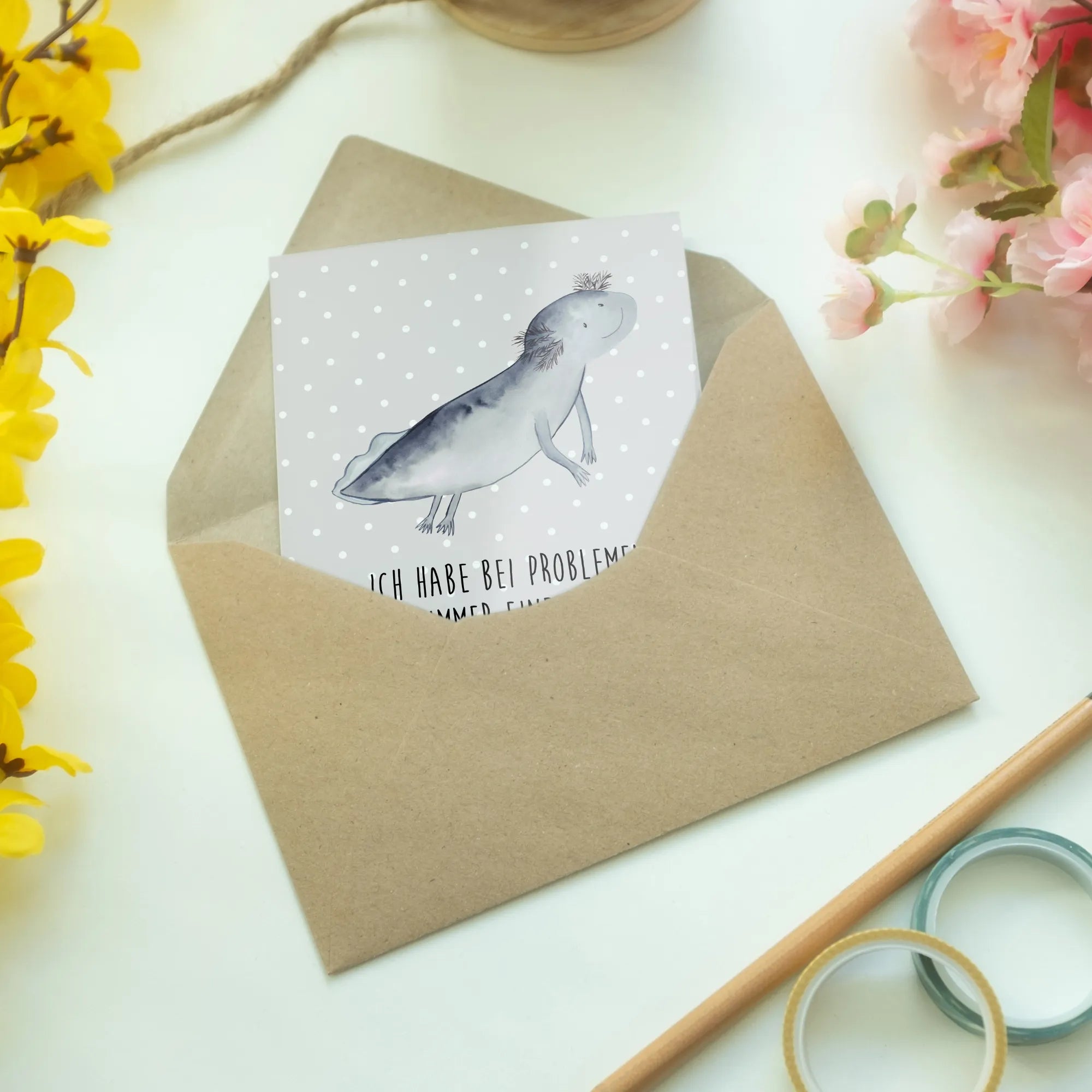 Kartka okolicznościowa ajolotl pływanie - z napisem - biały