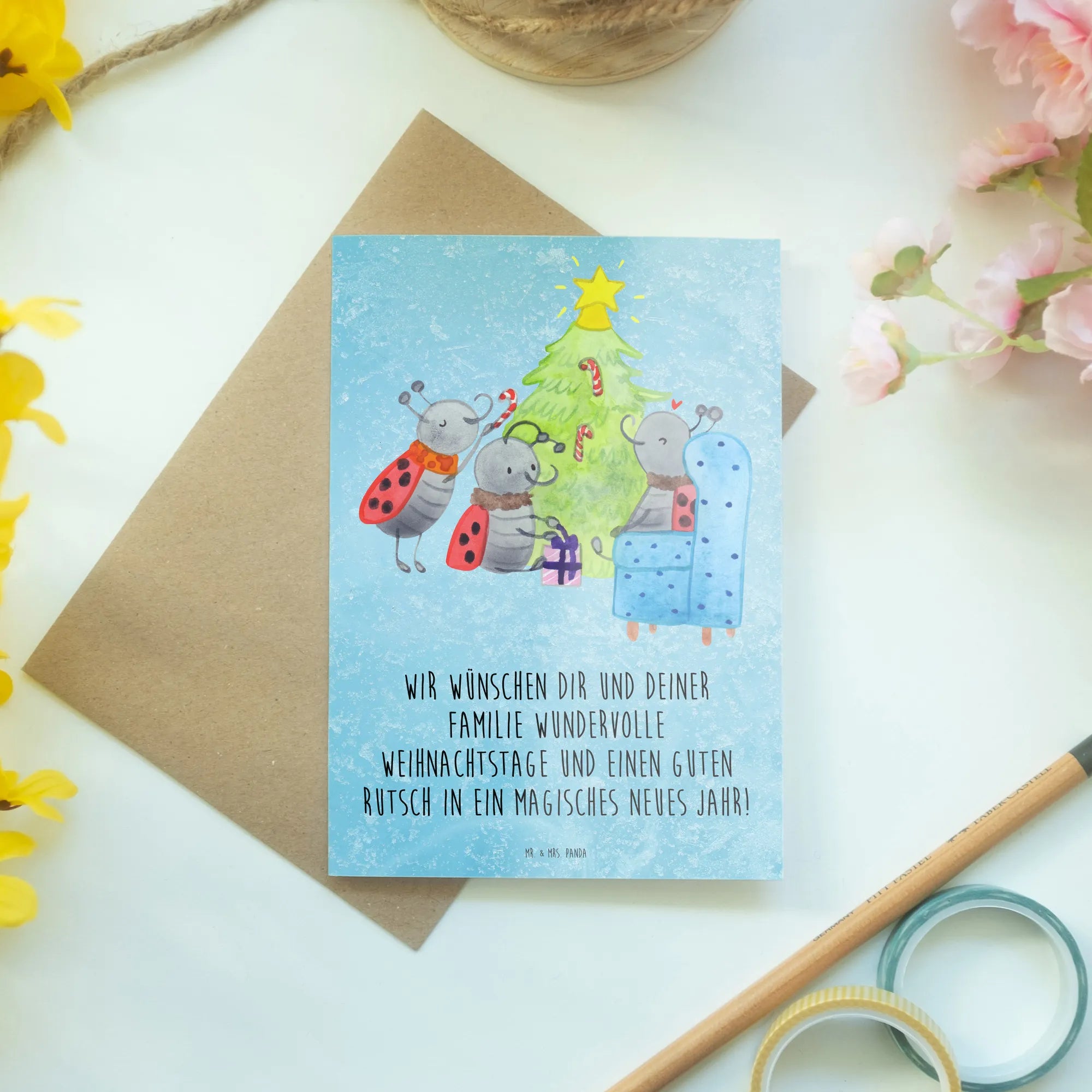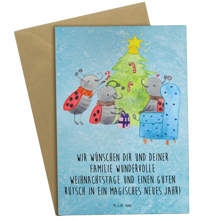 Die Grußkarte Weihnachten Smörle von Mr. & Mrs. Panda ist das perfekte Geschenk für all jene, die die besinnliche Zeit des Jahres lieben. Mit einem zauberhaften Motiv, das drei fröhliche Marienkäfer beim Dekorieren eines Weihnachtsbaums zeigt, versprüht diese Karte puren Winterzauber. Du kannst fast den Duft von frisch gebackenen Keksen und Tannennadeln riechen!