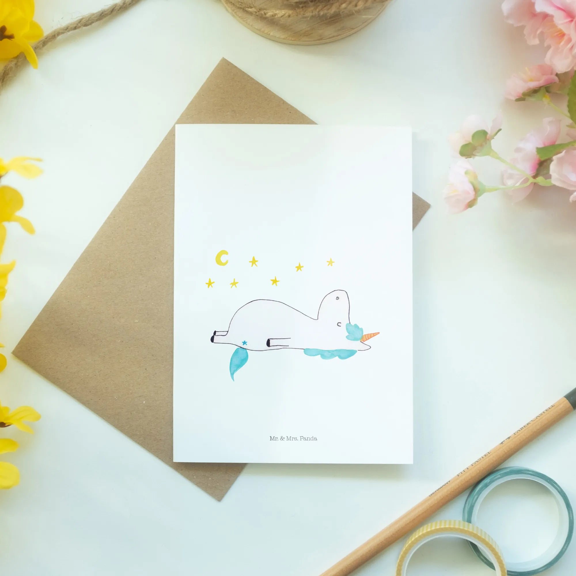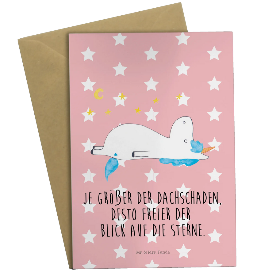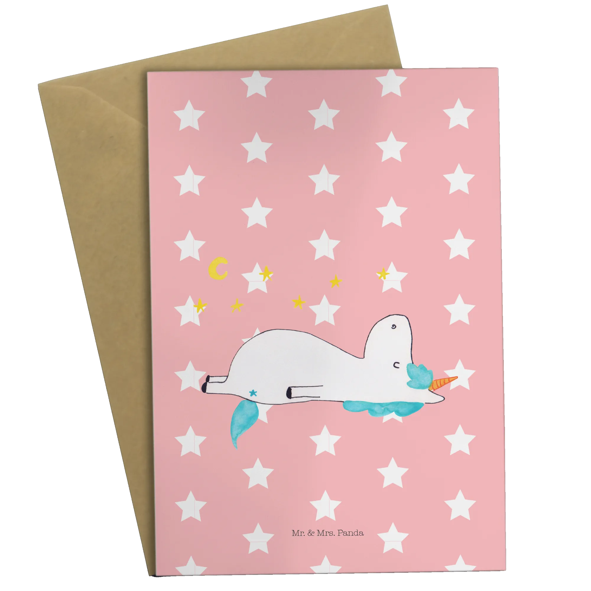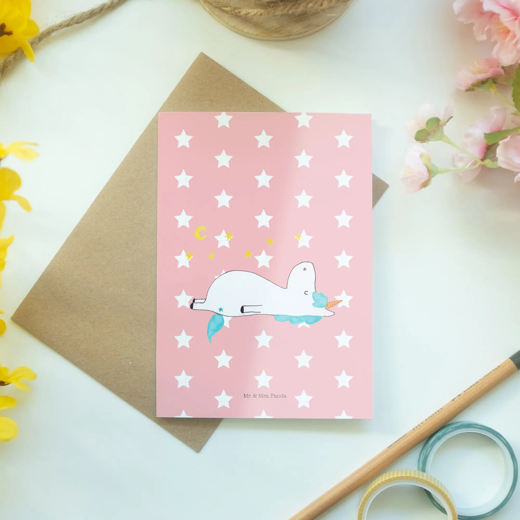 Kartka okolicznościowa Jednorożec gwiaździste niebo - z napisem - Pastelowy czerwony