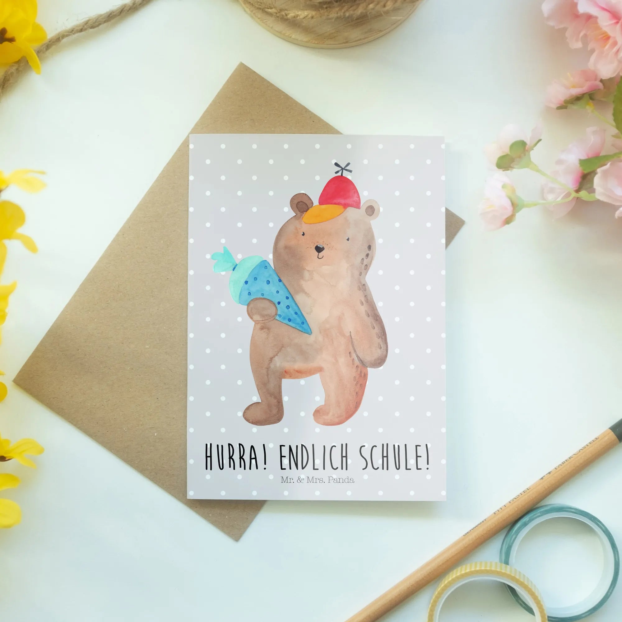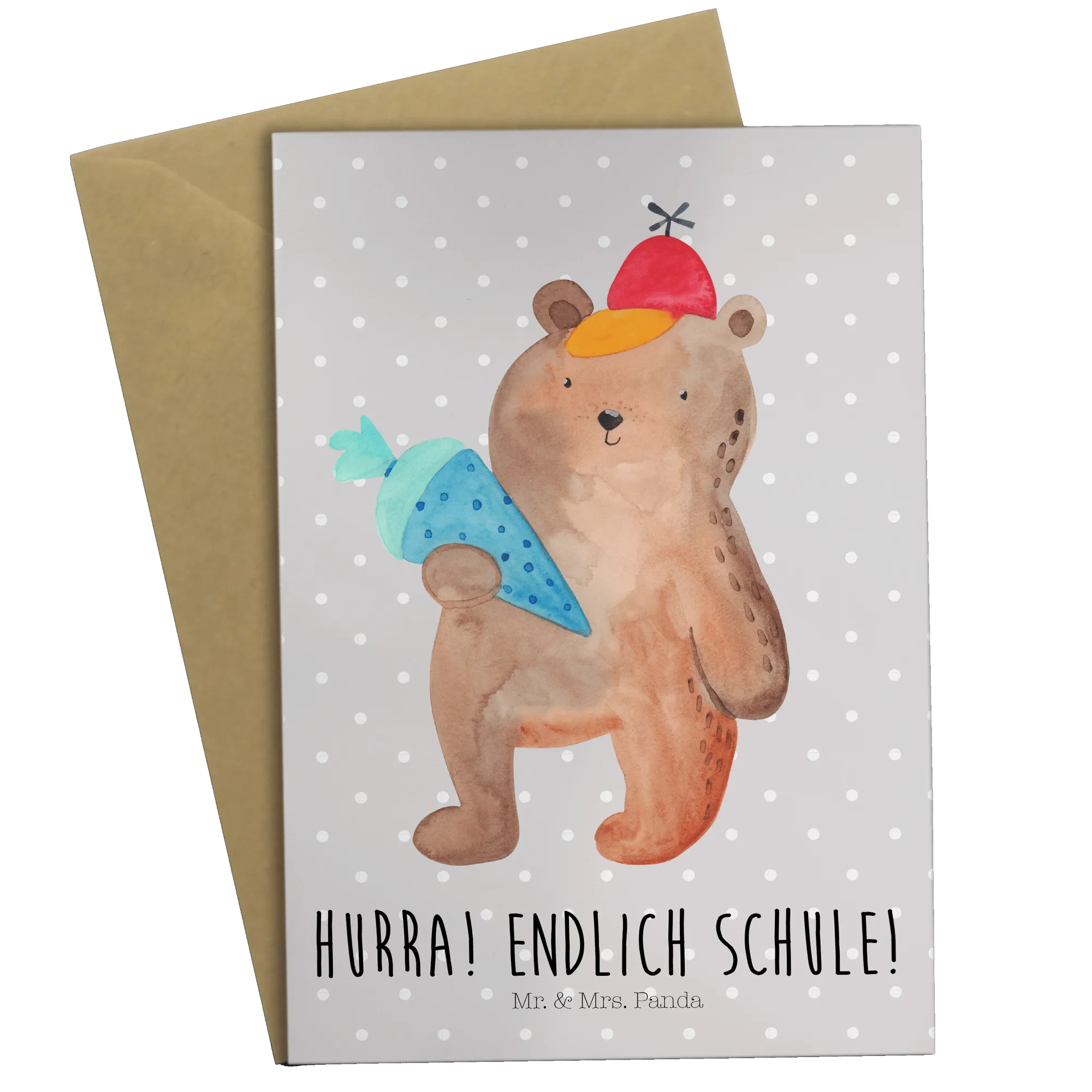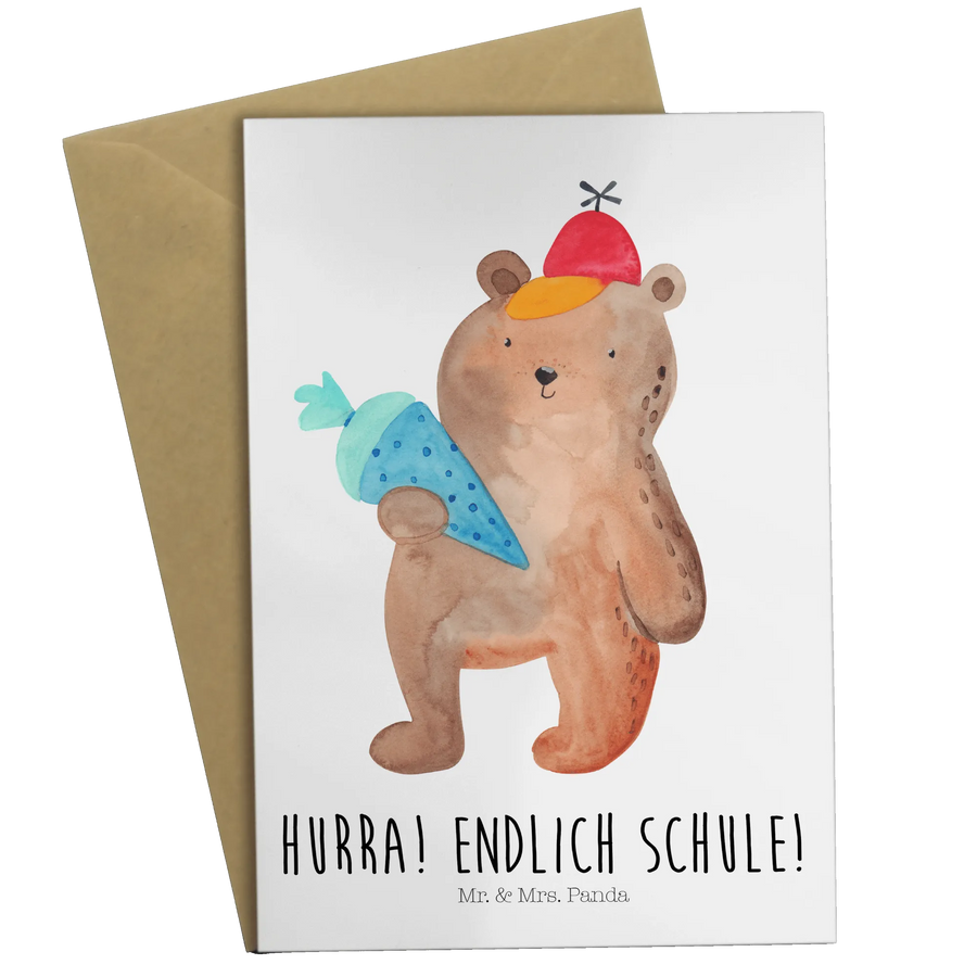 Kartka okolicznościowa Niedźwiedź Torebka szkolna - z napisem - biały