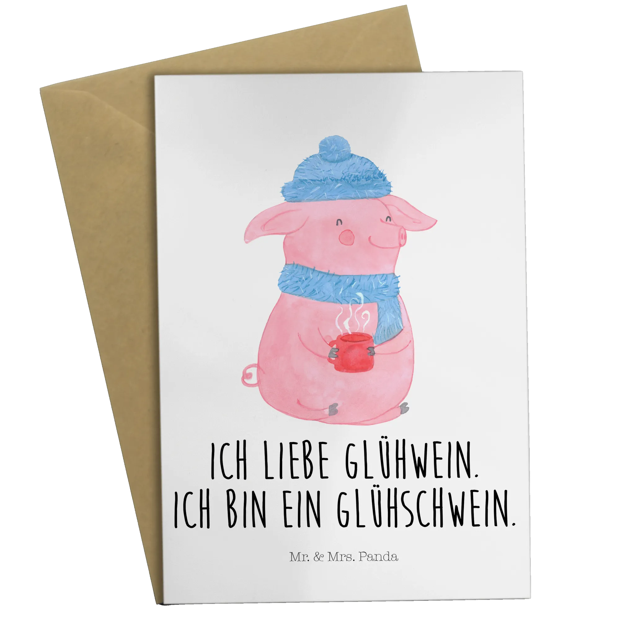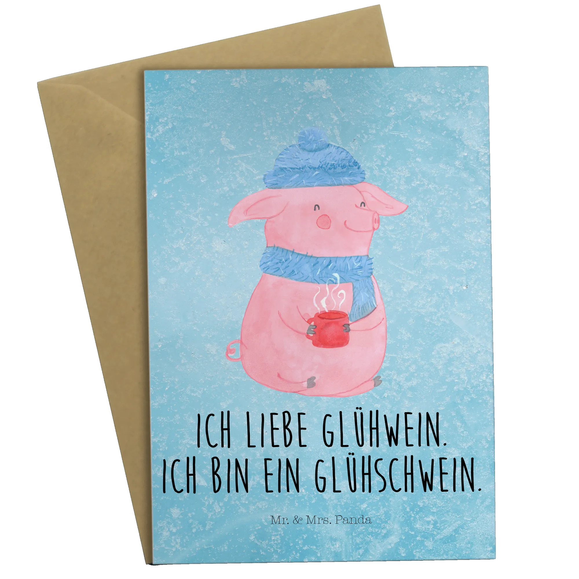 Kartka okolicznościowa świnia grzane wino - z napisem - Eisblau