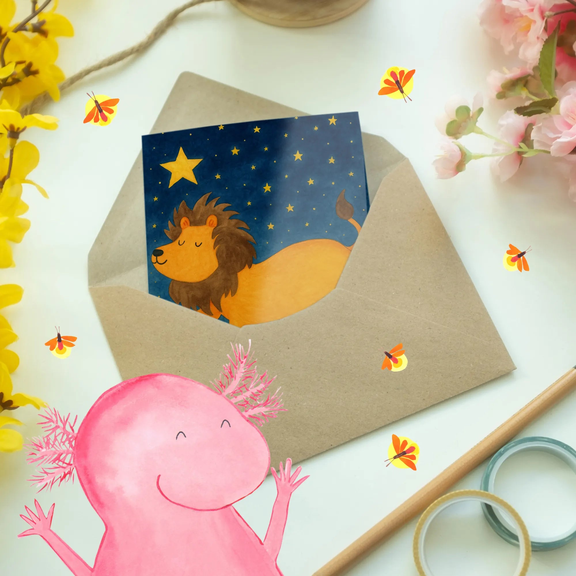 Kartka okolicznościowa znak zodiaku lew Design - z napisem