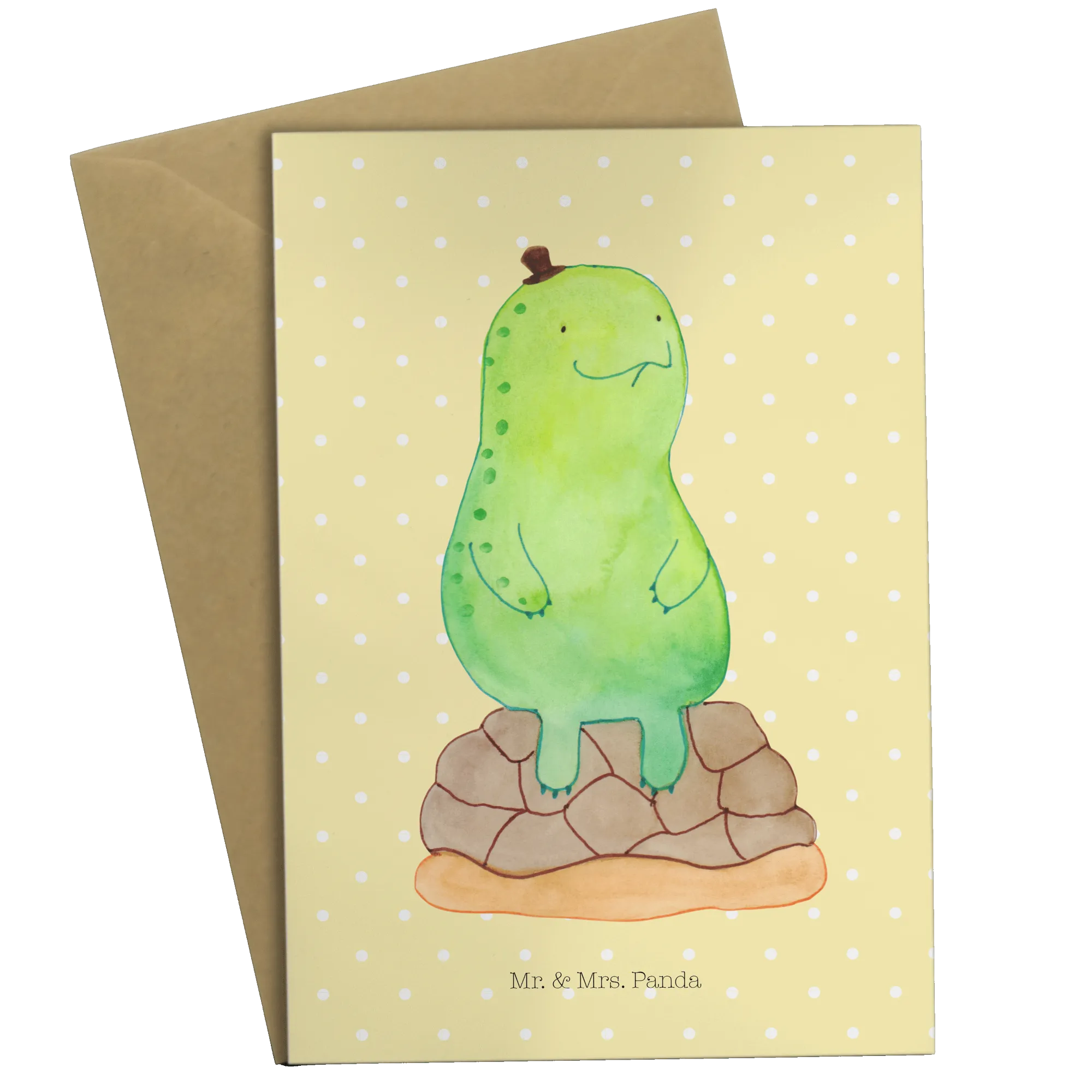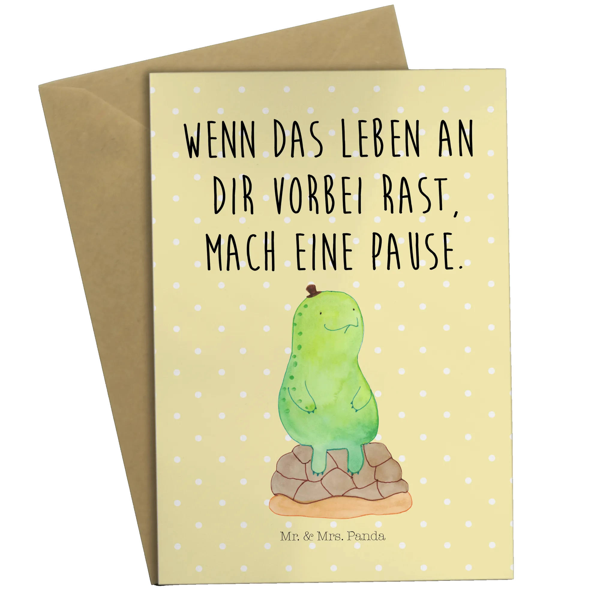 Kartka okolicznościowa żółw Przerwa - z napisem - Żółty Pastel