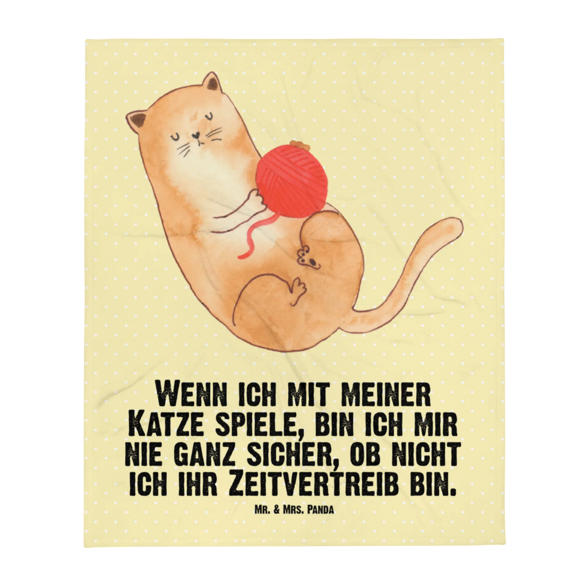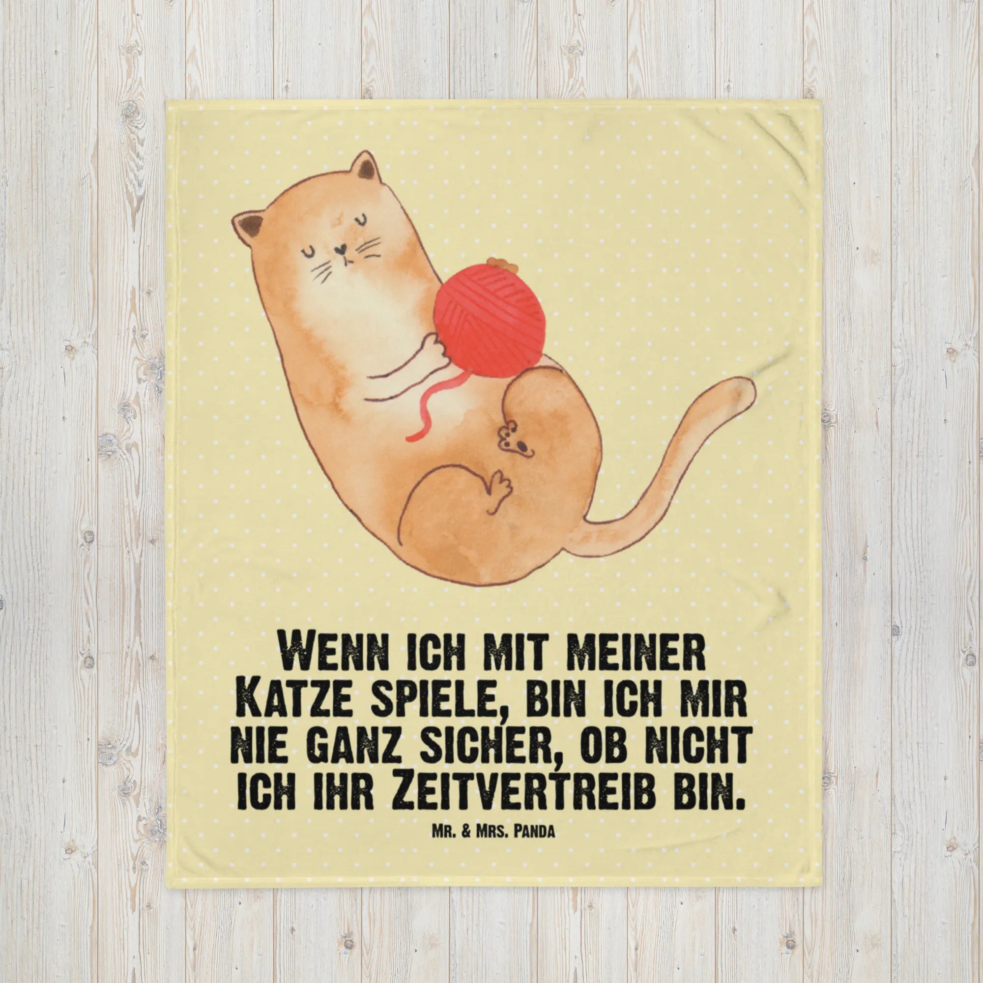 Kocyk dla niemowląt kot wełna - z napisem - Pastelowy żółty