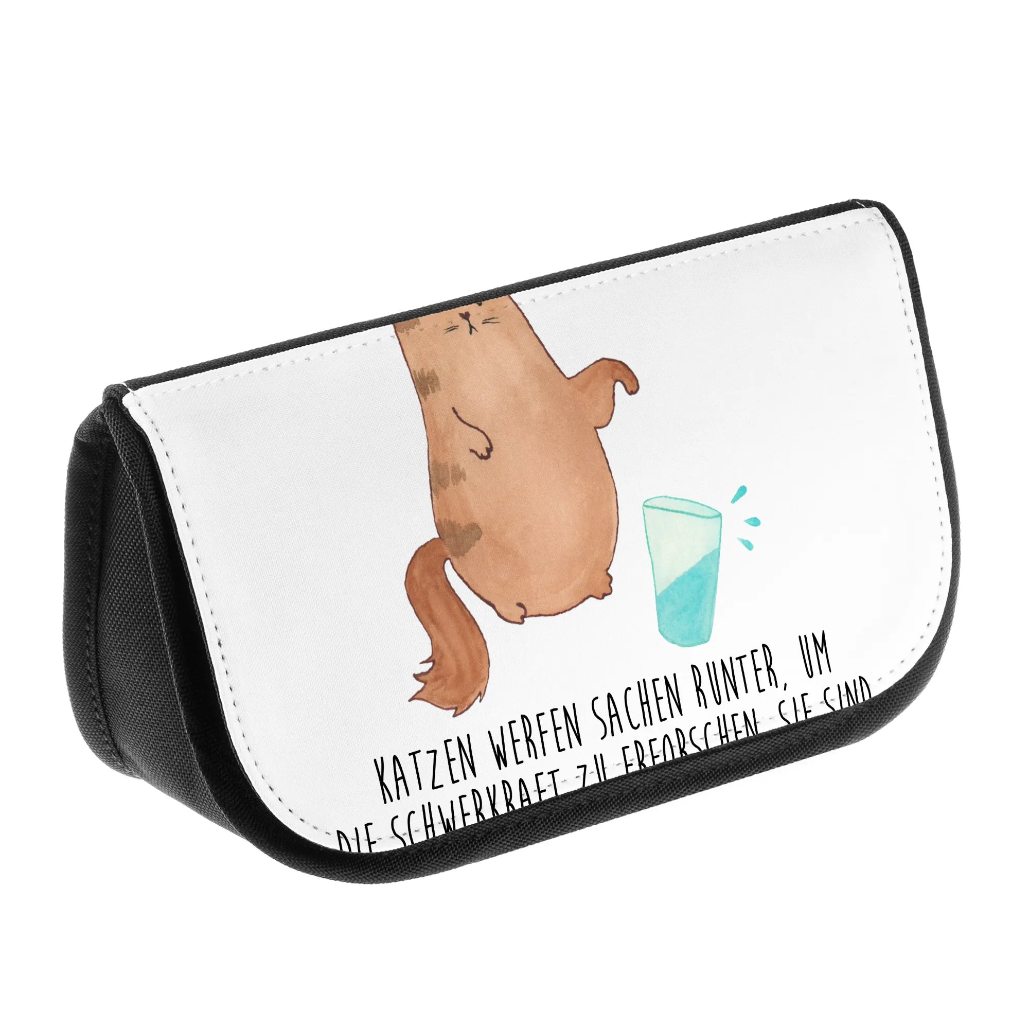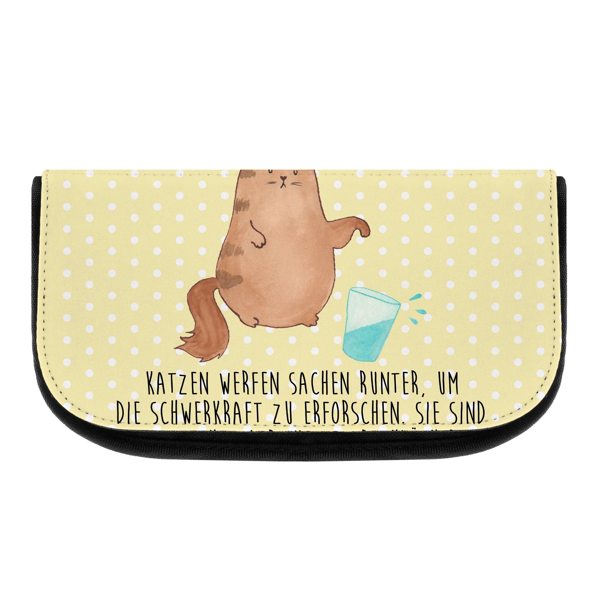 Kosmetyczka kot szklanka wody - z napisem - Pastelowy żółty