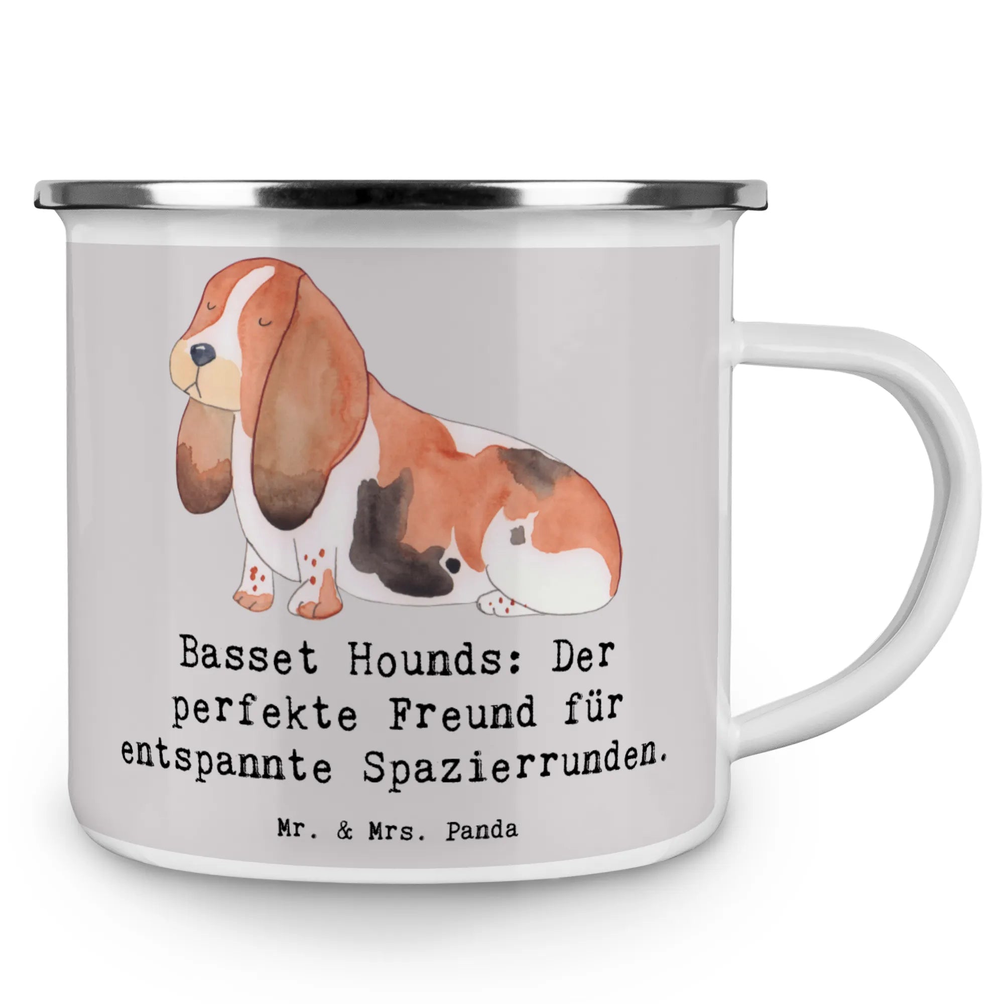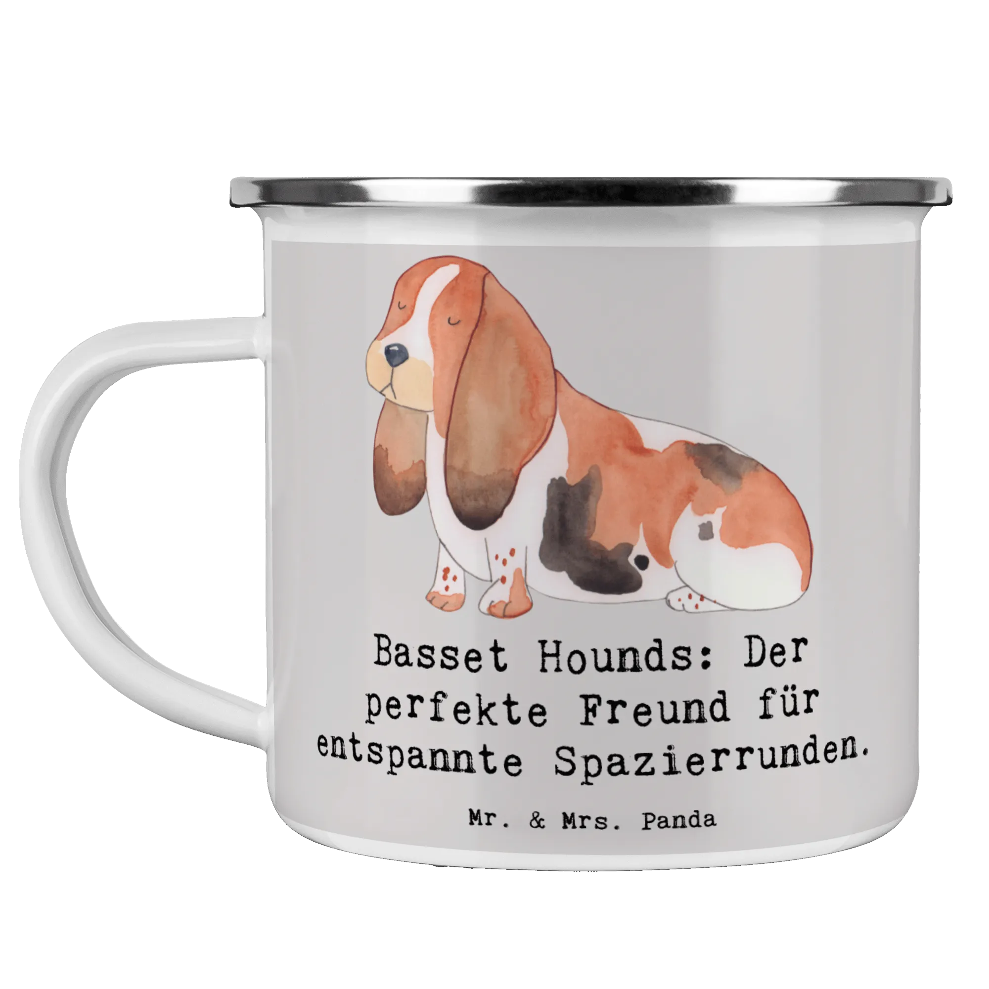 Camping Emaille Tasse Basset Hound Freund - Grau Pastell