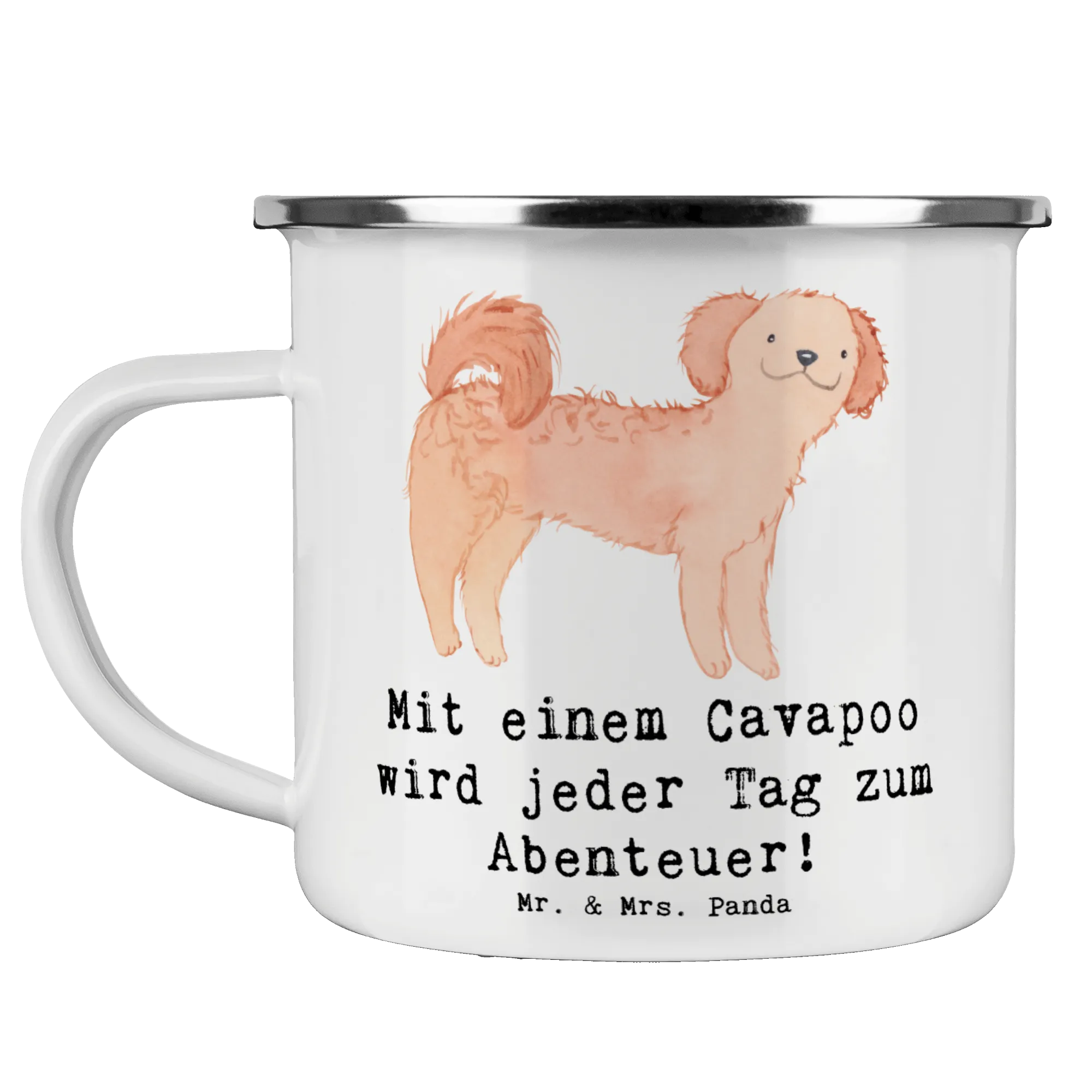 Die Camping Emaille Tasse mit dem niedlichen Cavapoo-Motiv von Mr. & Mrs. Panda ist das perfekte Geschenk für alle Hundefans und Naturliebhaber. Diese wunderschöne und kratzfeste Emaille Tasse ist nicht nur ein echter Blickfang, sondern auch super praktisch für alle Outdoor-Aktivitäten.