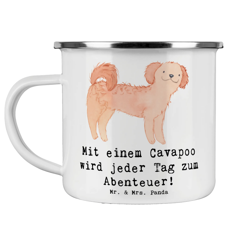 Camping Emaille Tasse Cavapoo Abenteuer - Weiß